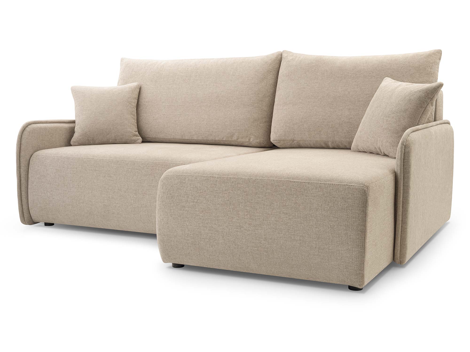 Mechanizm rozkładania typu DL sprawia, że rozłożenie kanapy jest proste i szybkie. W kilka chwil zmienisz ją w przestronne łóżko o powierzchni 188×130 cm. To rozwiązanie idealne, jeśli często odwiedzają Cię goście lub jeśli potrzebujesz dodatkowego miejsca do spania. Wbudowany pojemnik na pościel pozwala na przechowywanie kołder, poduszek i koców, utrzymując porządek i maksymalnie wykorzystując przestrzeń.