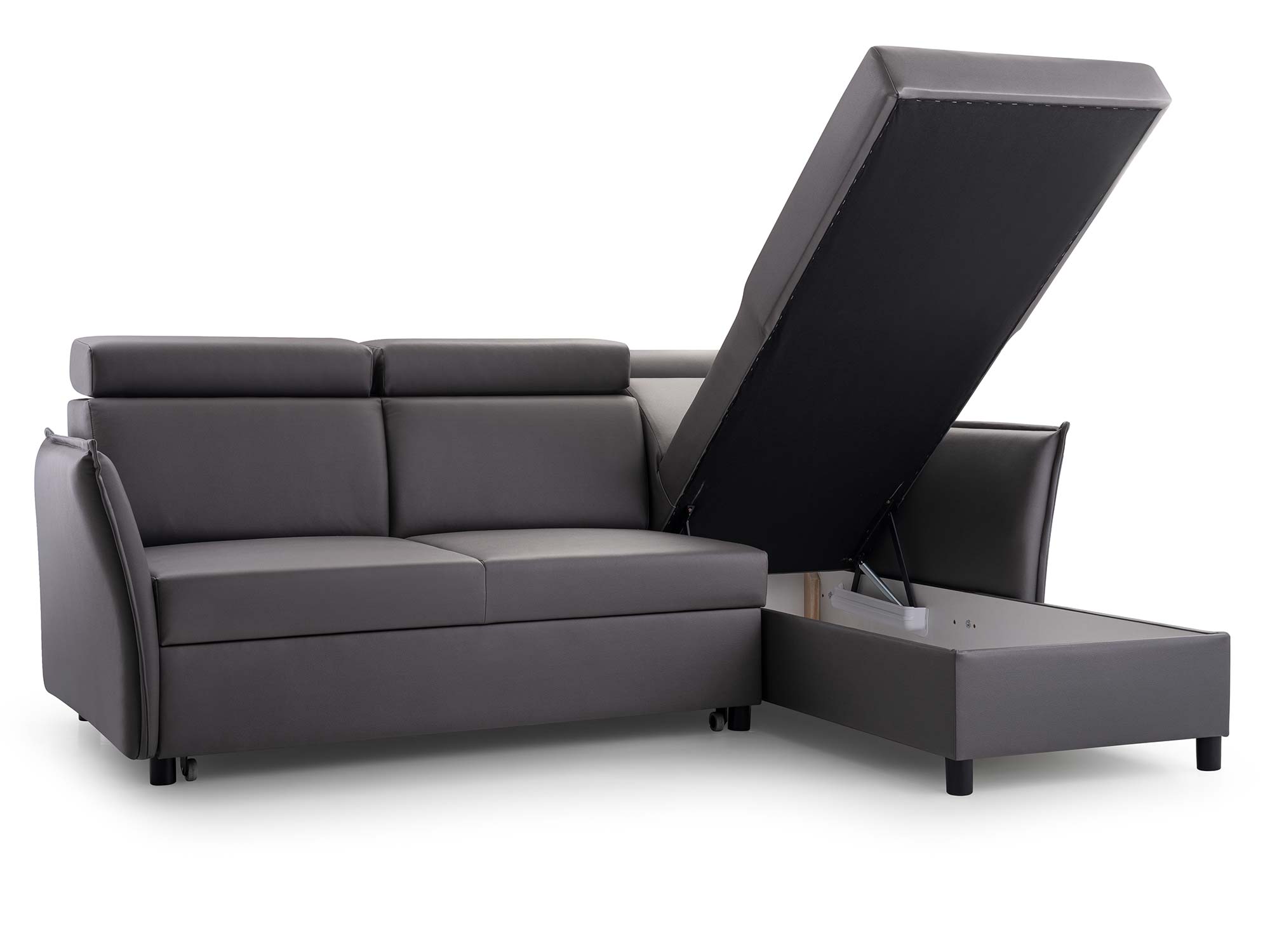 Ta kanapa to idealny kompromis pomiędzy estetyką a praktycznością – możesz na niej komfortowo wypocząć, zyskać dodatkowe miejsce do spania, a także przechowywać pościel w wbudowanym pojemniku. To rozwiązanie, które doceni każda nowoczesna rodzina.