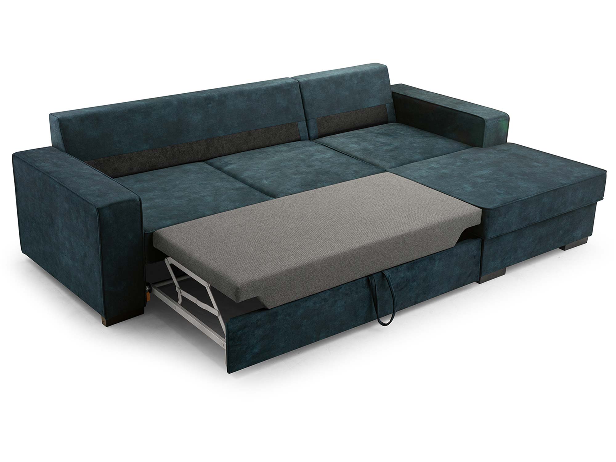 Siedzisko wyposażone w sprężyny faliste oraz piankę o gęstości T30 zapewnia komfort i trwałość, zapobiegając odkształceniom nawet przy intensywnym użytkowaniu. To idealne miejsce do relaksu po pracy, wieczornego oglądania filmów czy spotkań z bliskimi. Automat typu Wózek sprawia, że rozkładanie kanapy jest niezwykle łatwe – jednym ruchem przekształcisz ją w wygodne łóżko.