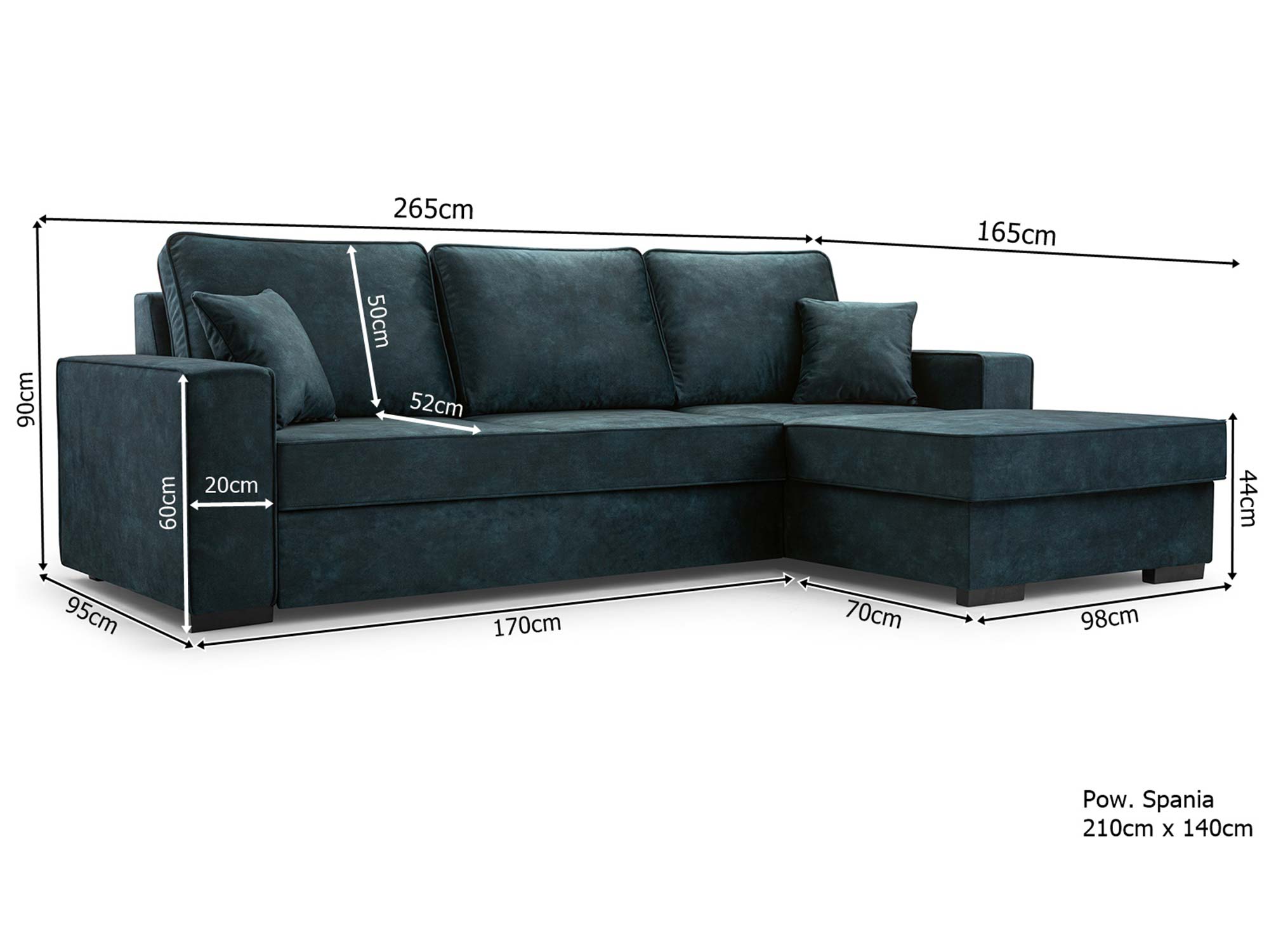 - Funkcja spania – duża powierzchnia 210×140 cm.
