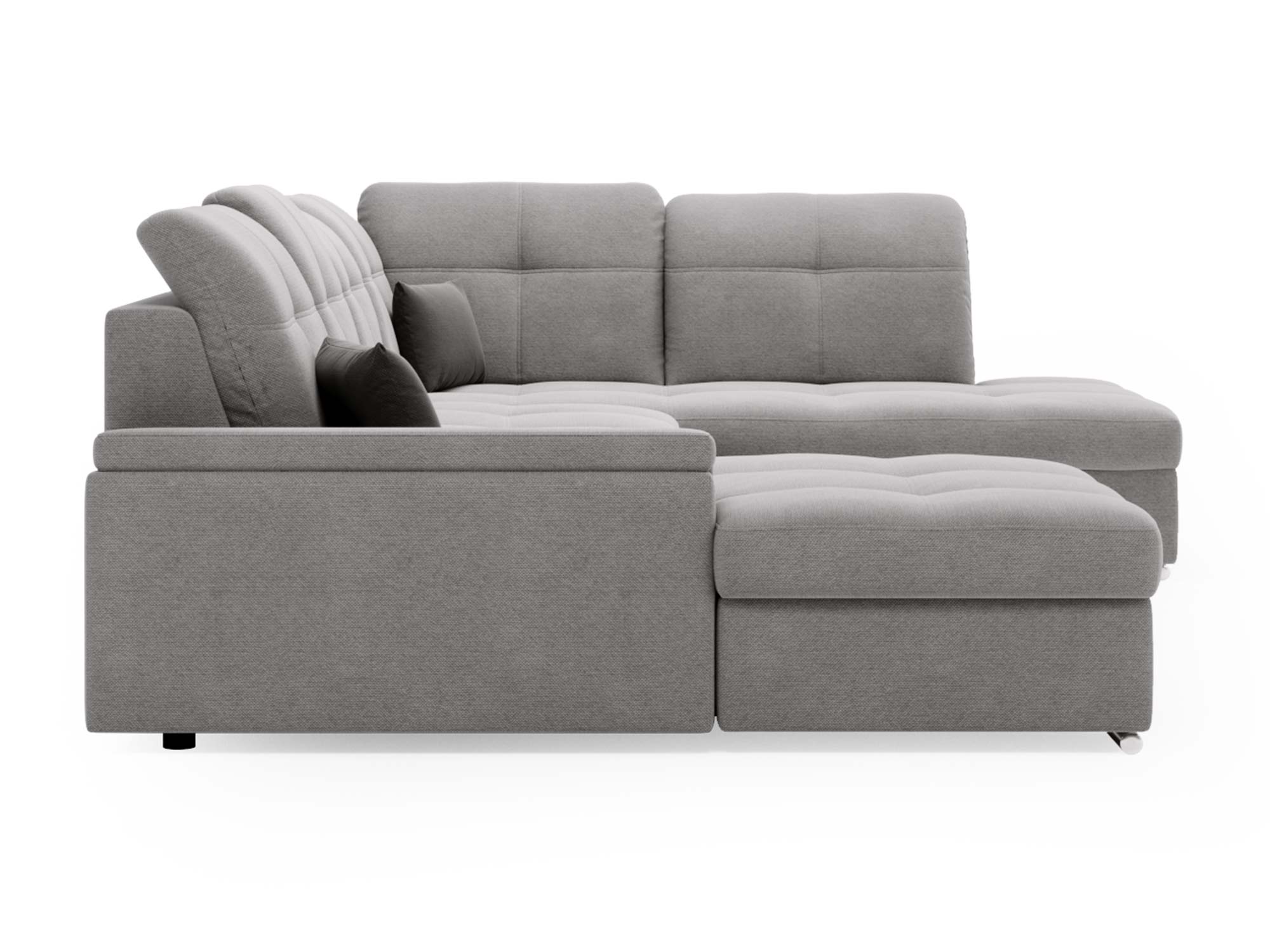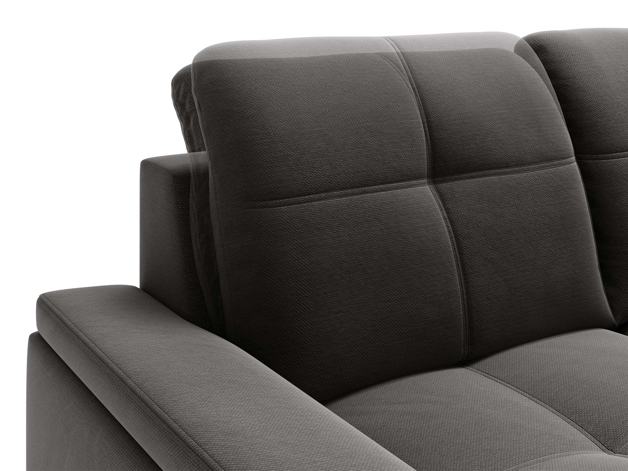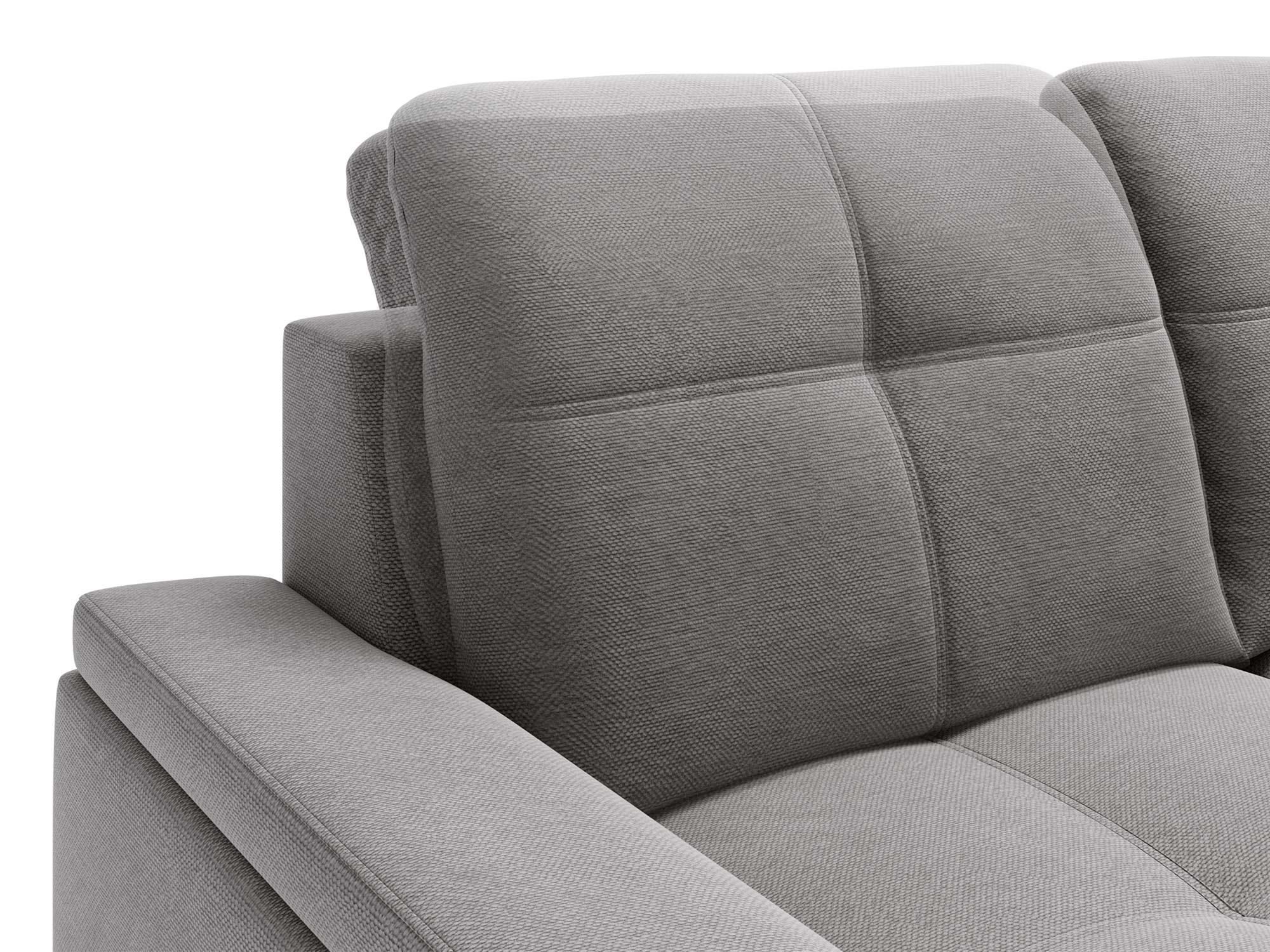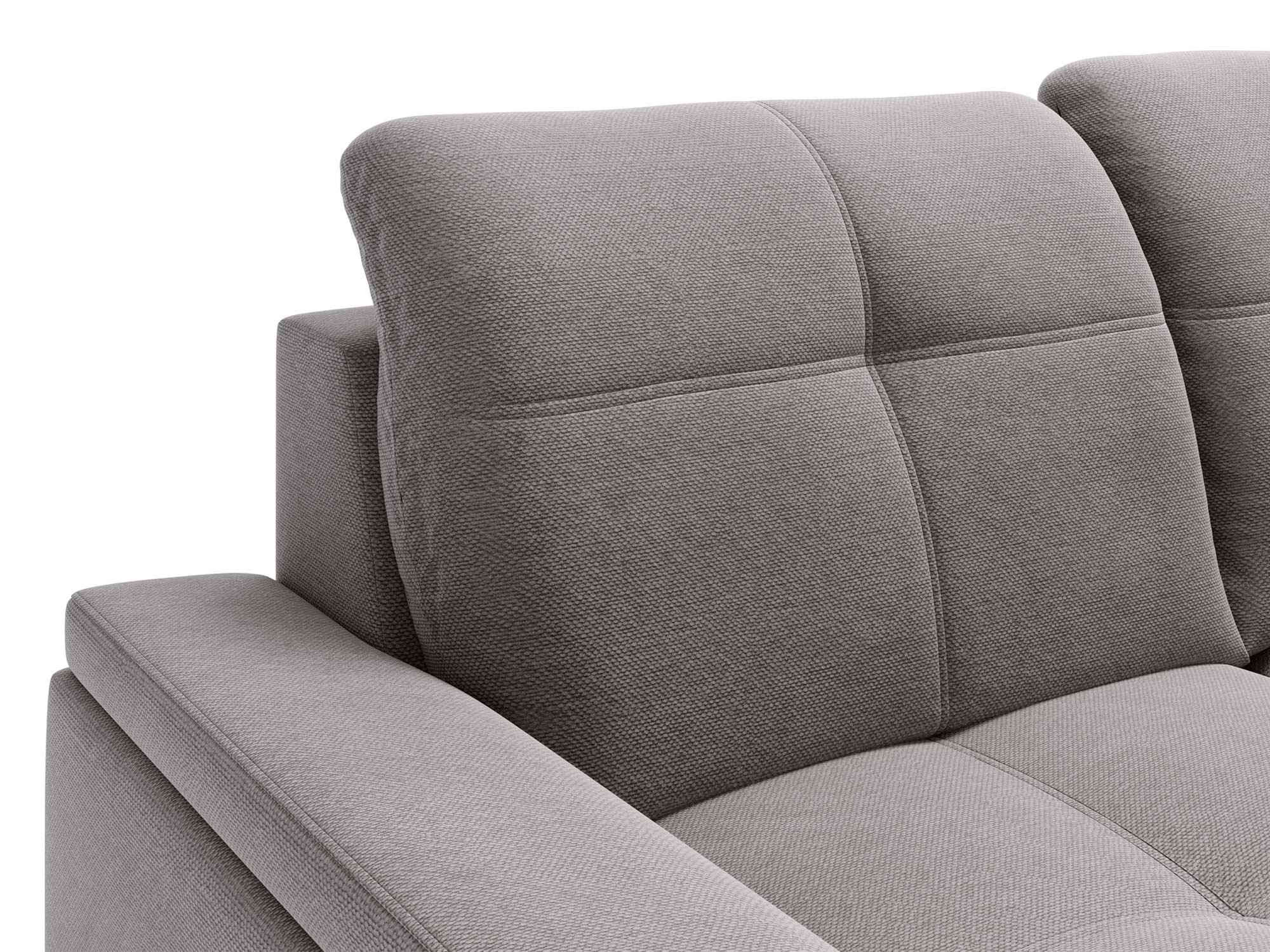 Jasnoszary narożnik z prostą linią i pikowanymi zagłówkami