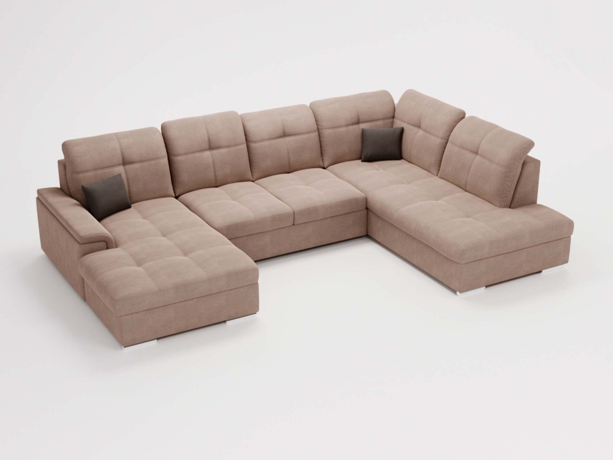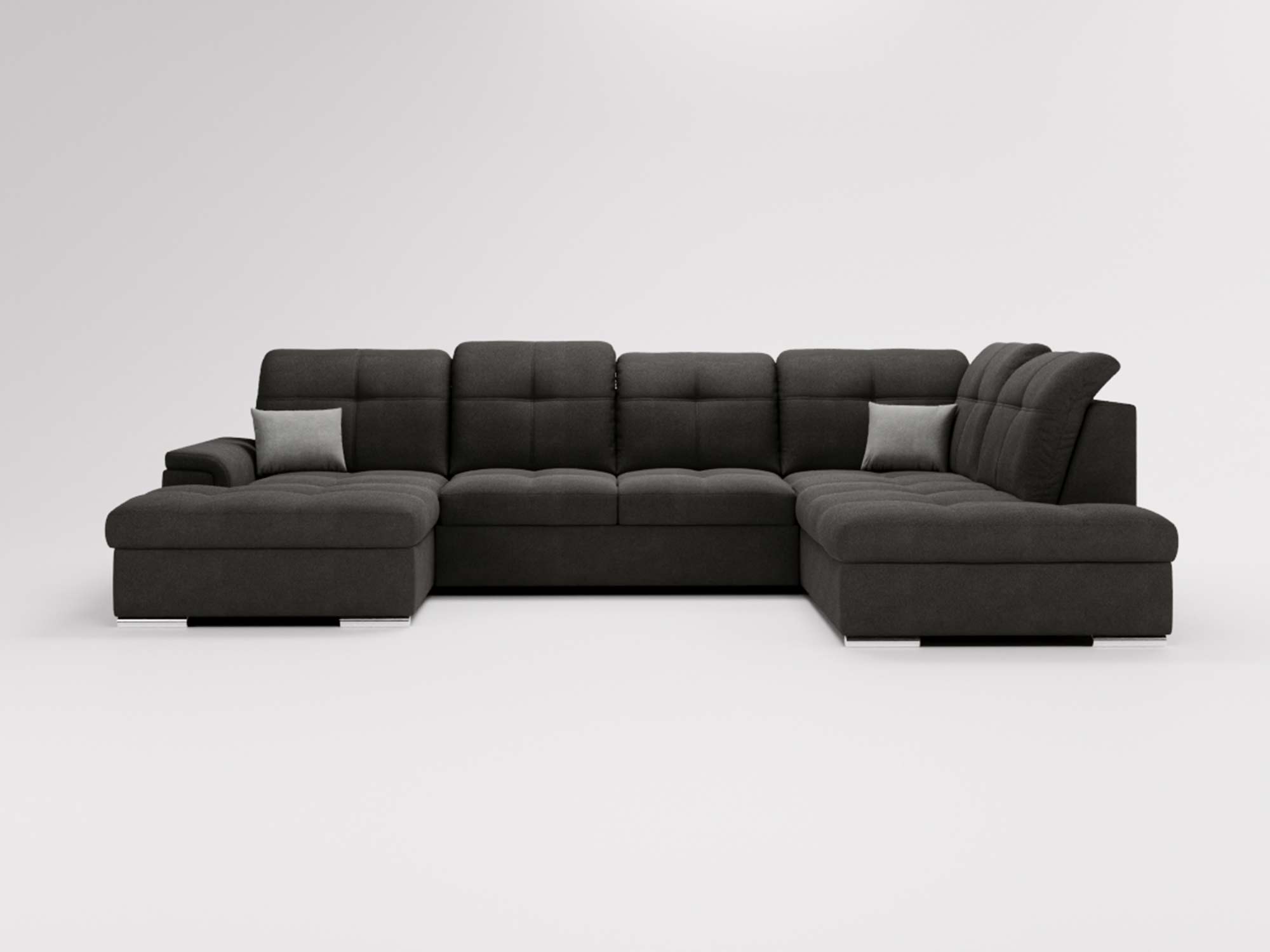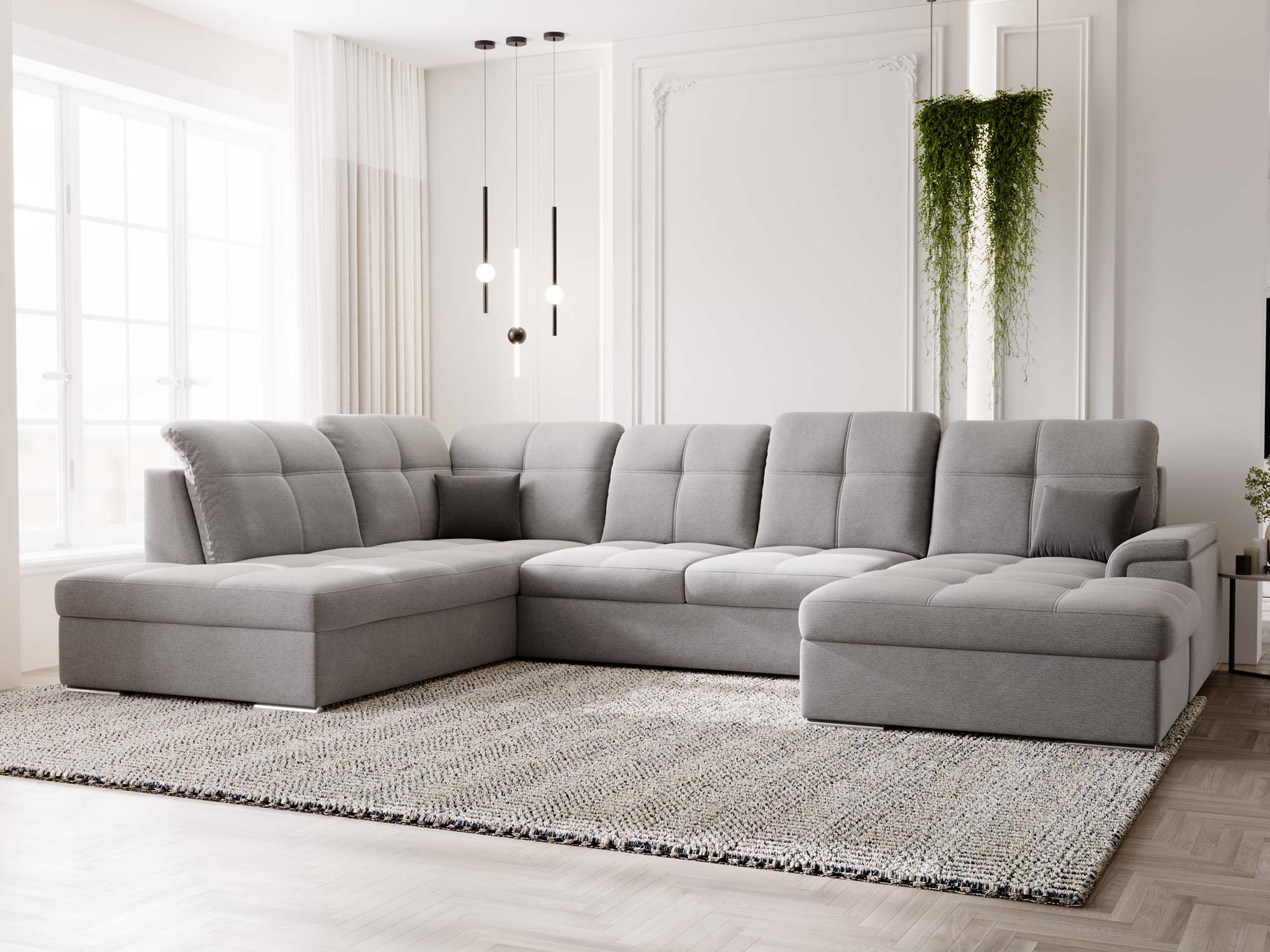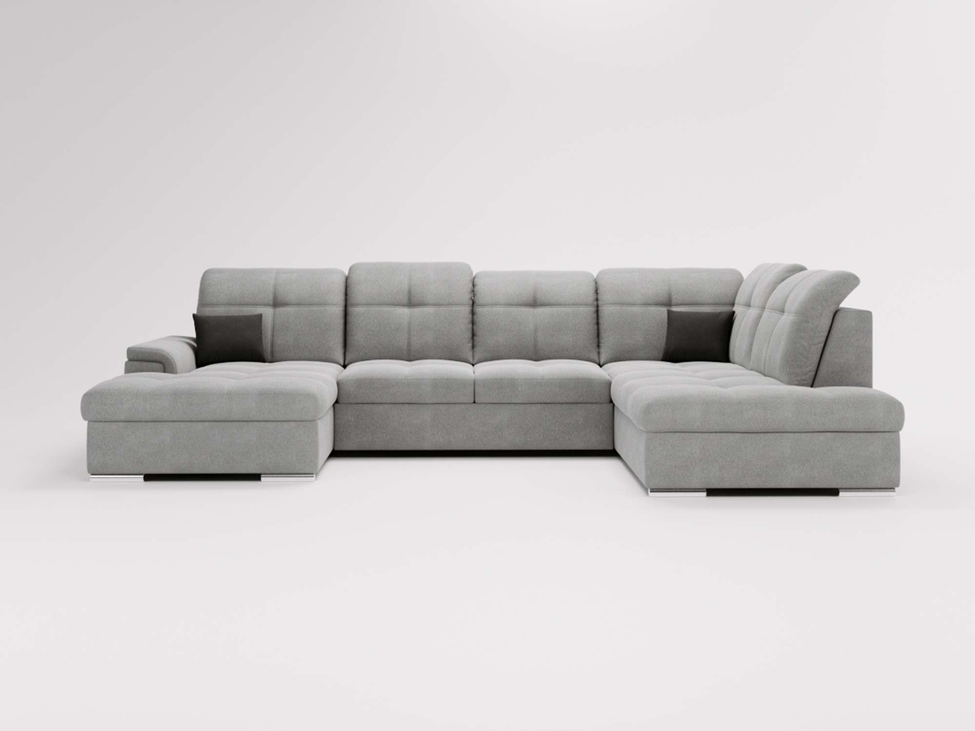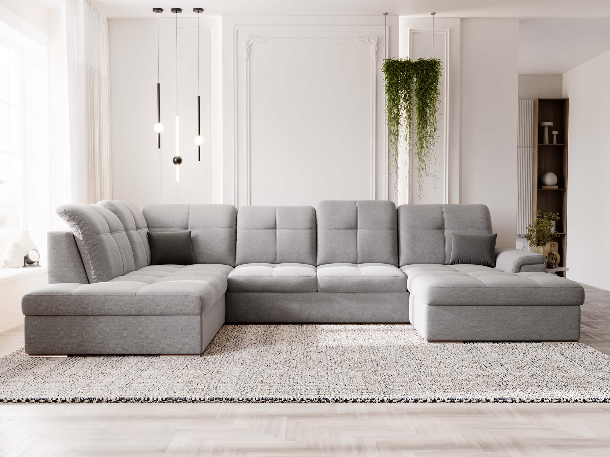 Jasnoszary narożnik z prostą linią i pikowanymi zagłówkami