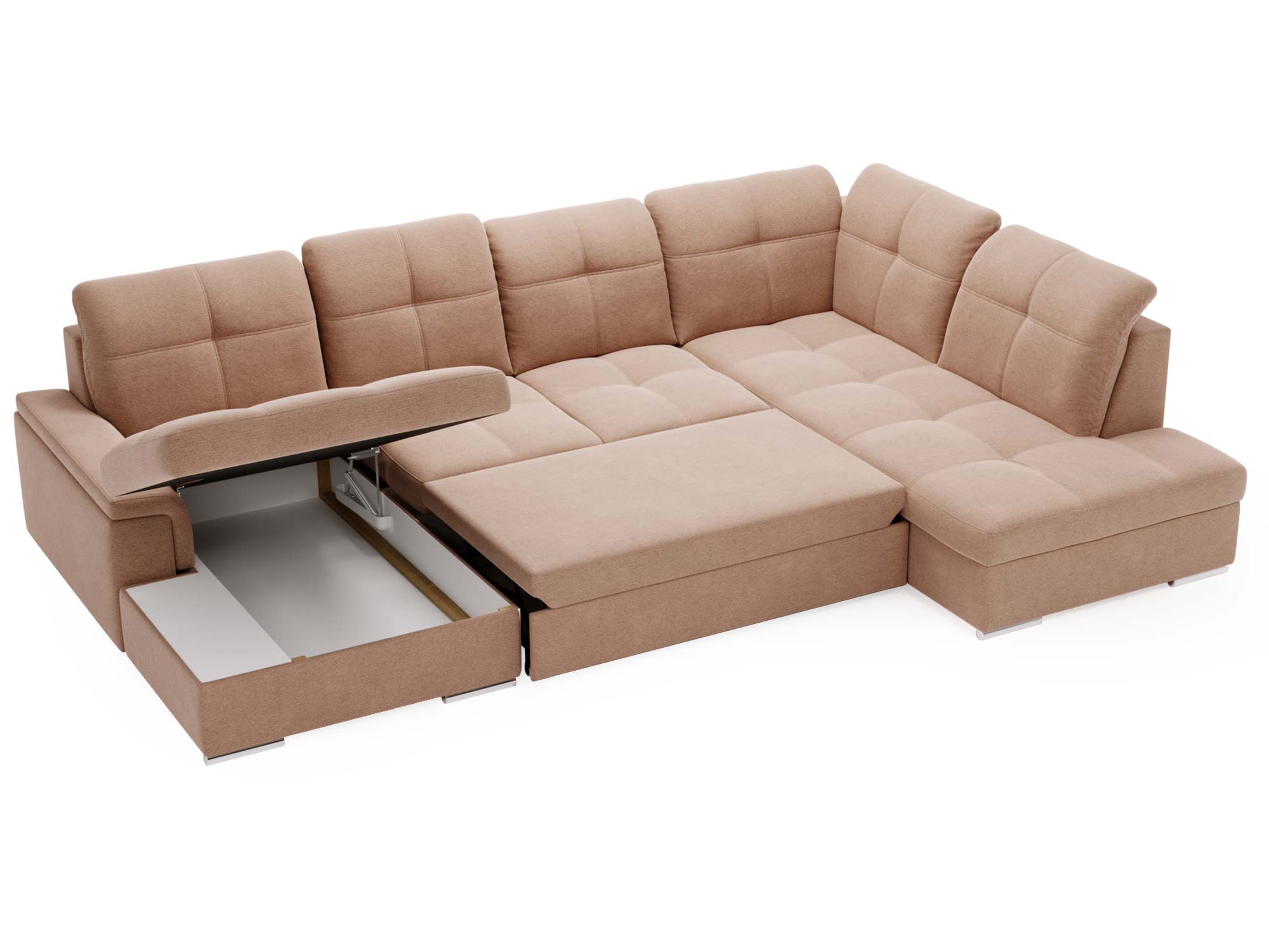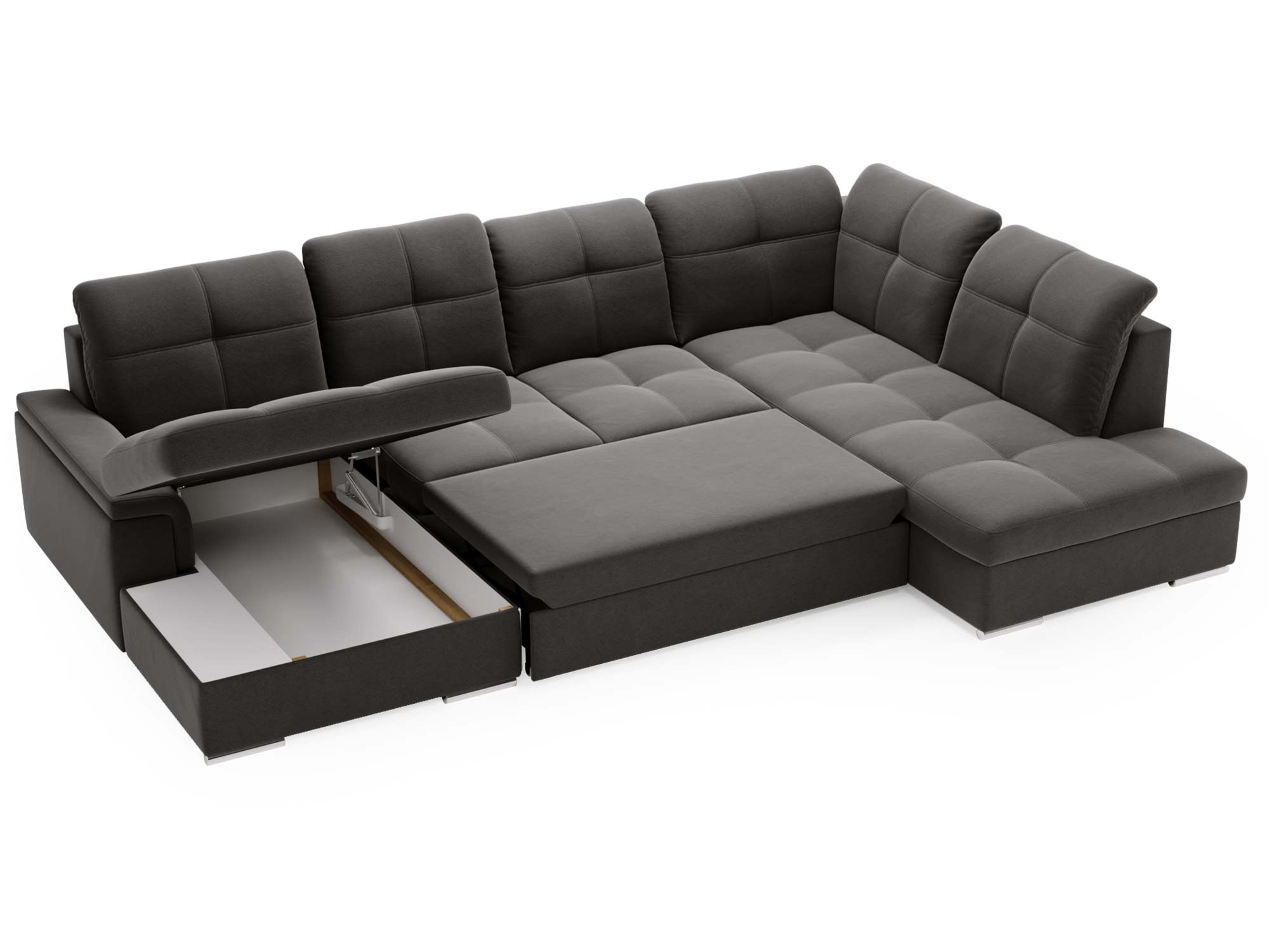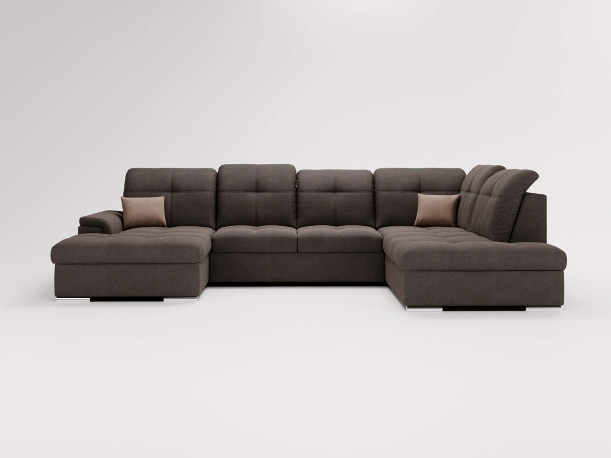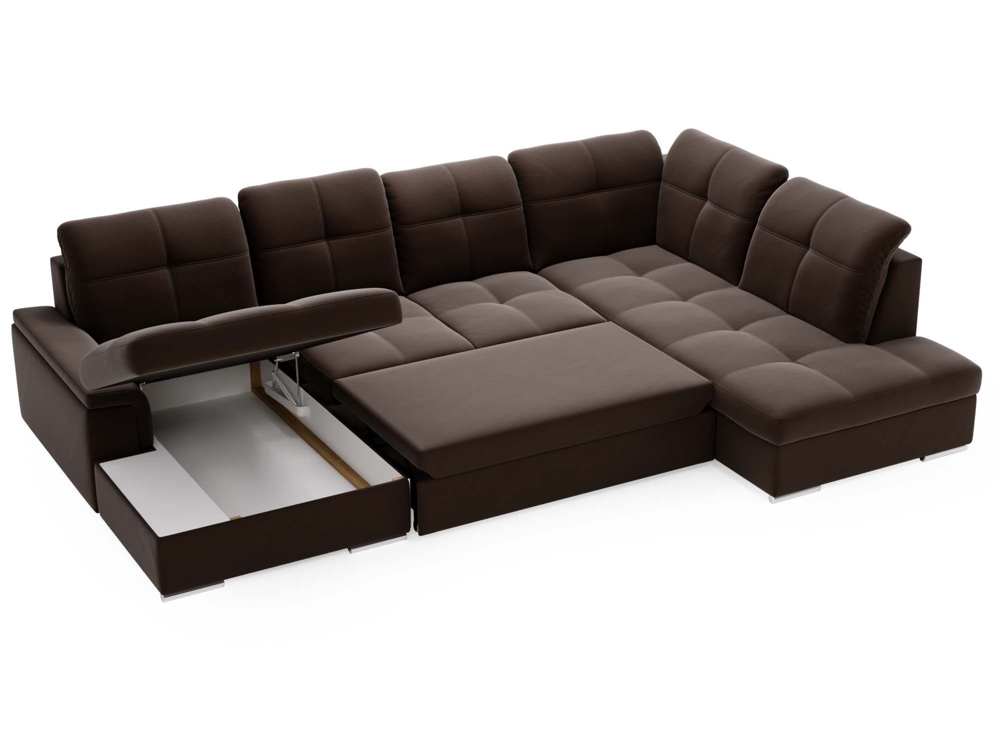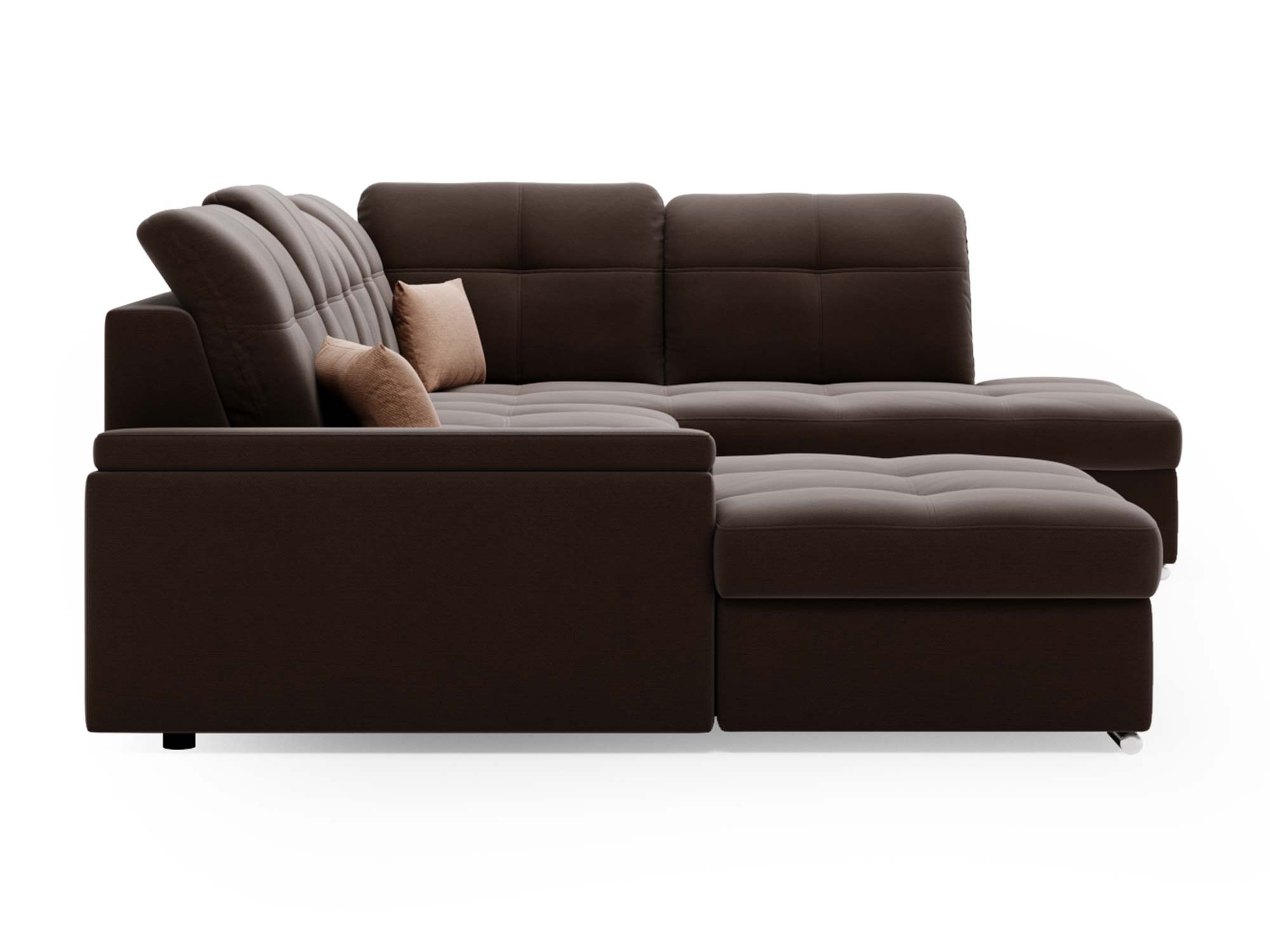 Narożnik brązowy z funkcją spania i otwartym bokiem