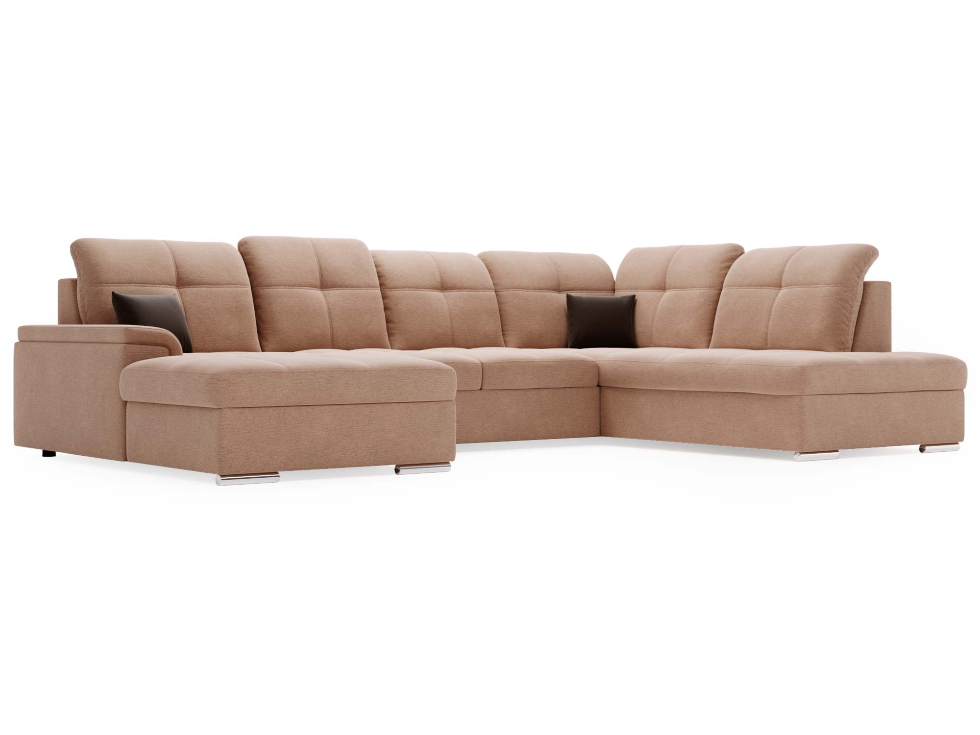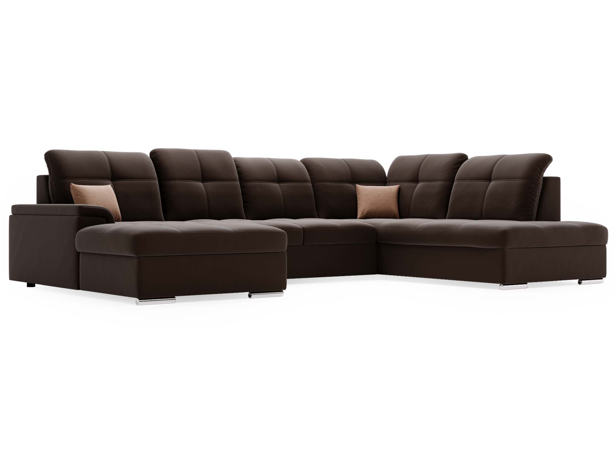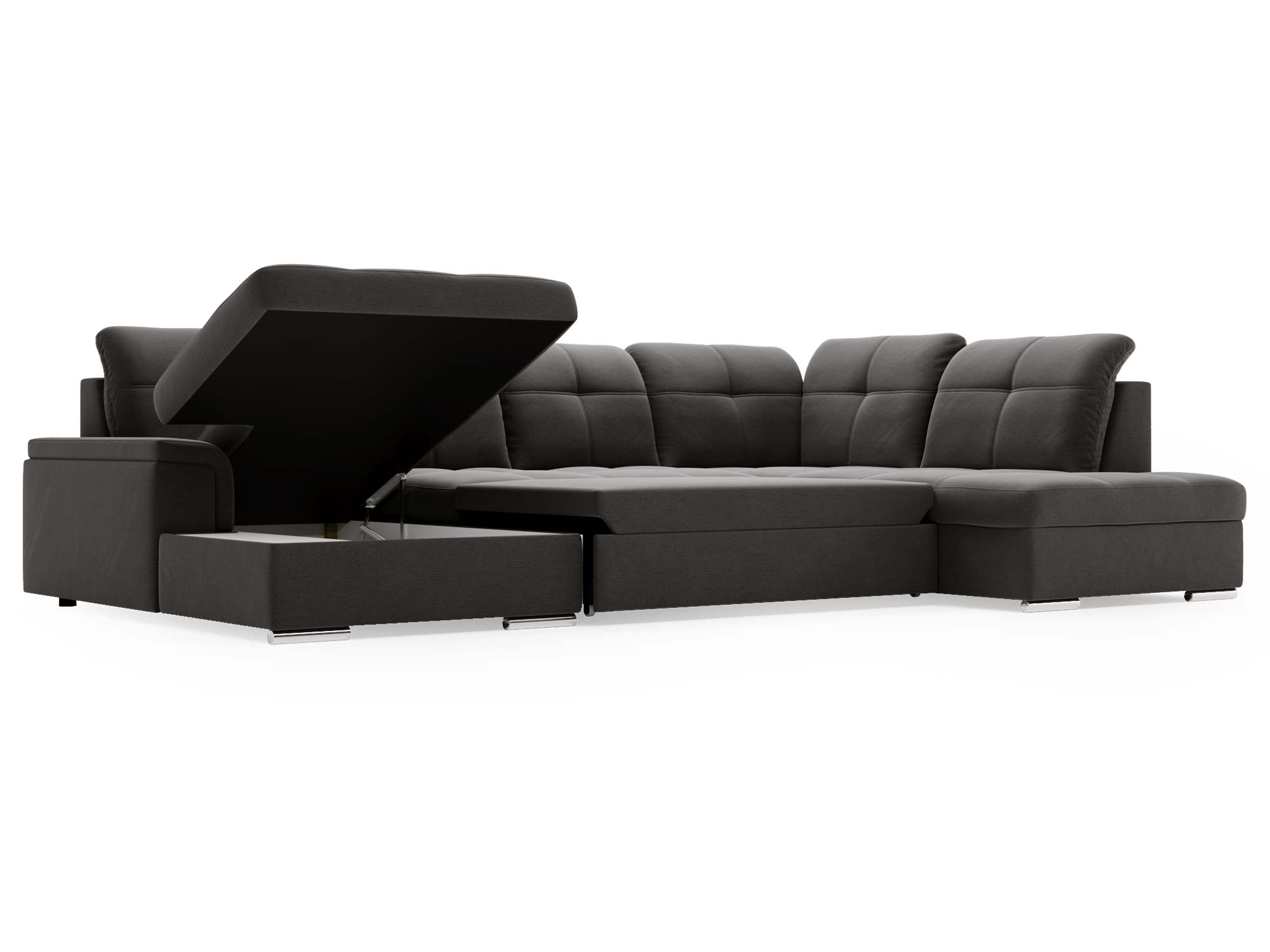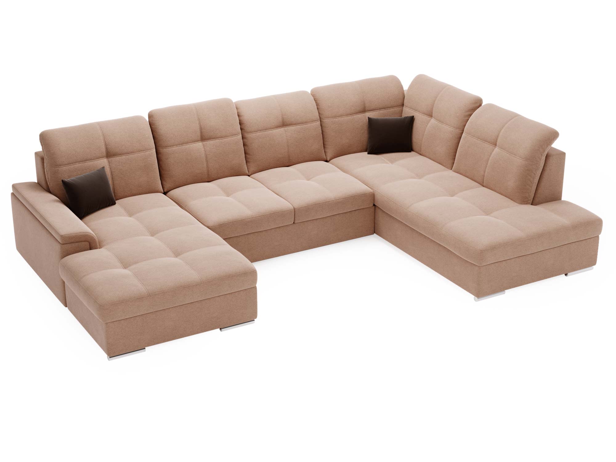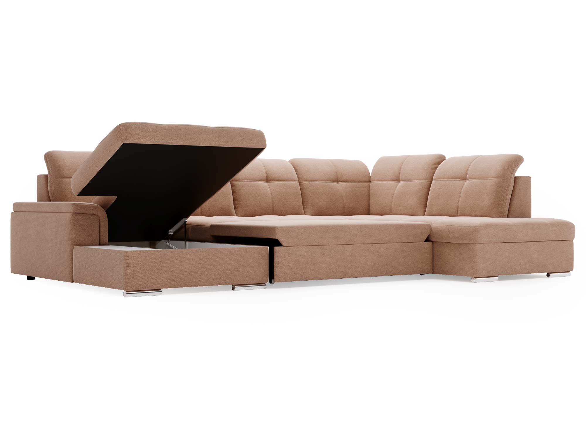 Narożnik brązowy z funkcją spania i otwartym bokiem