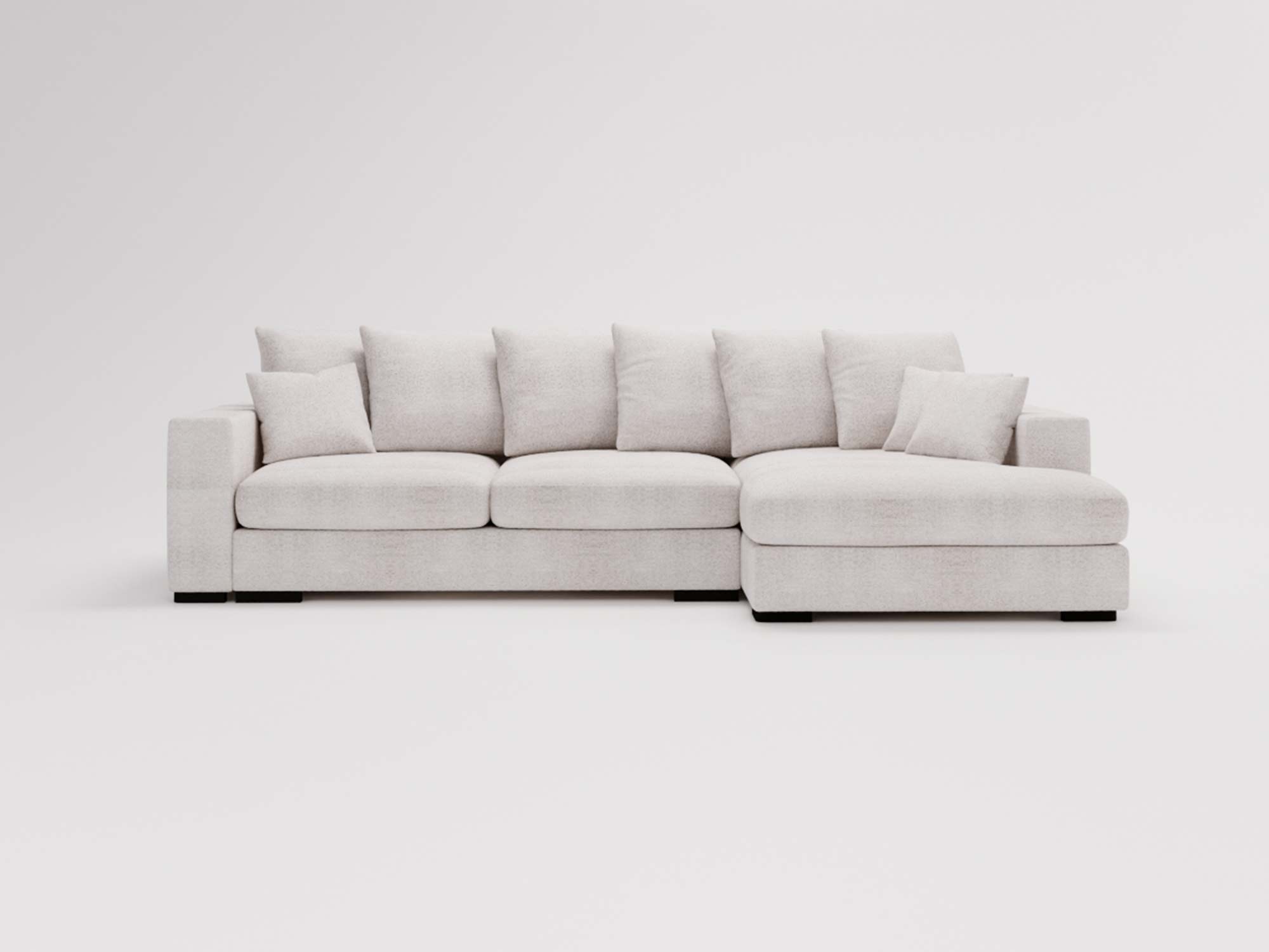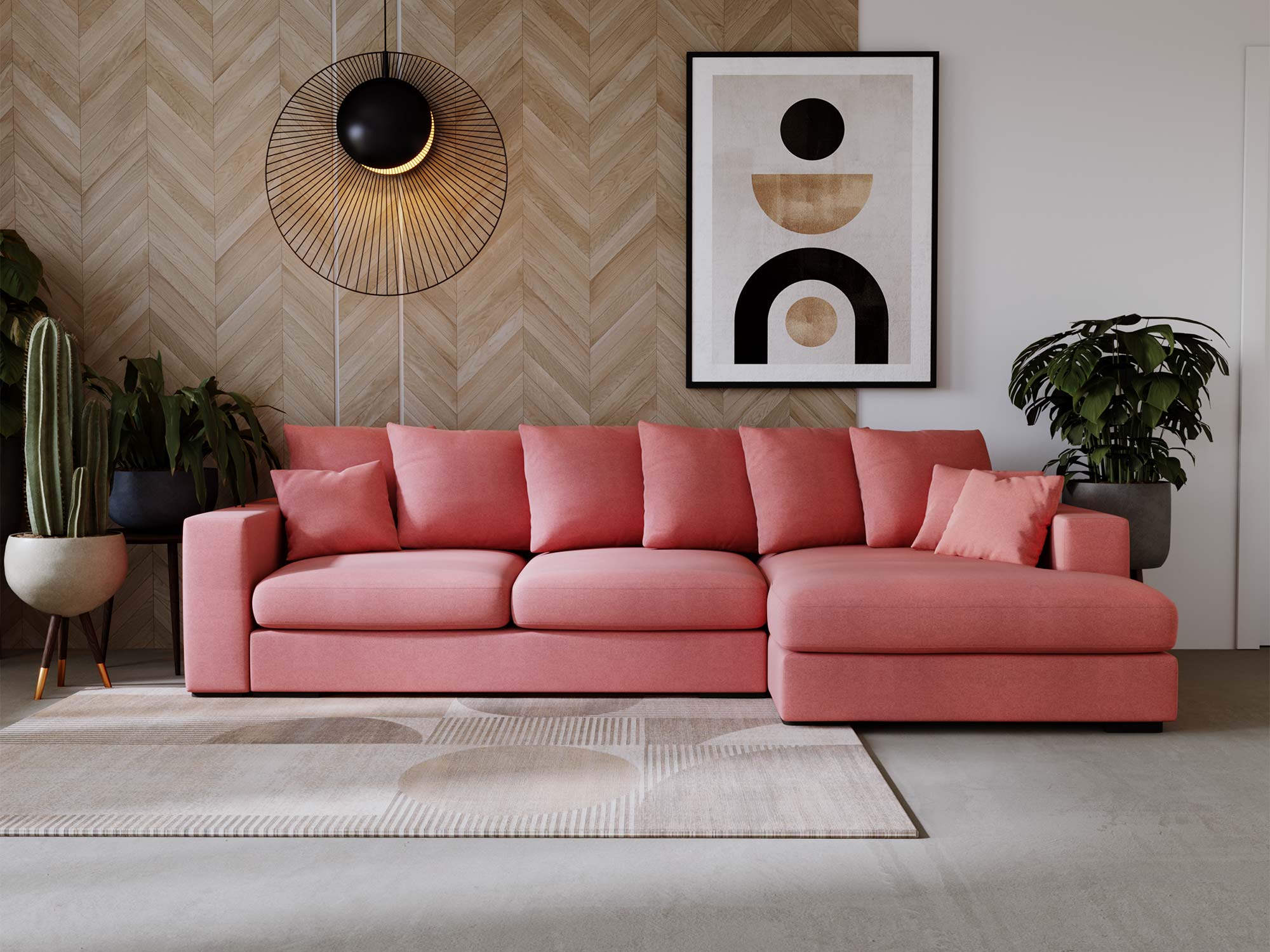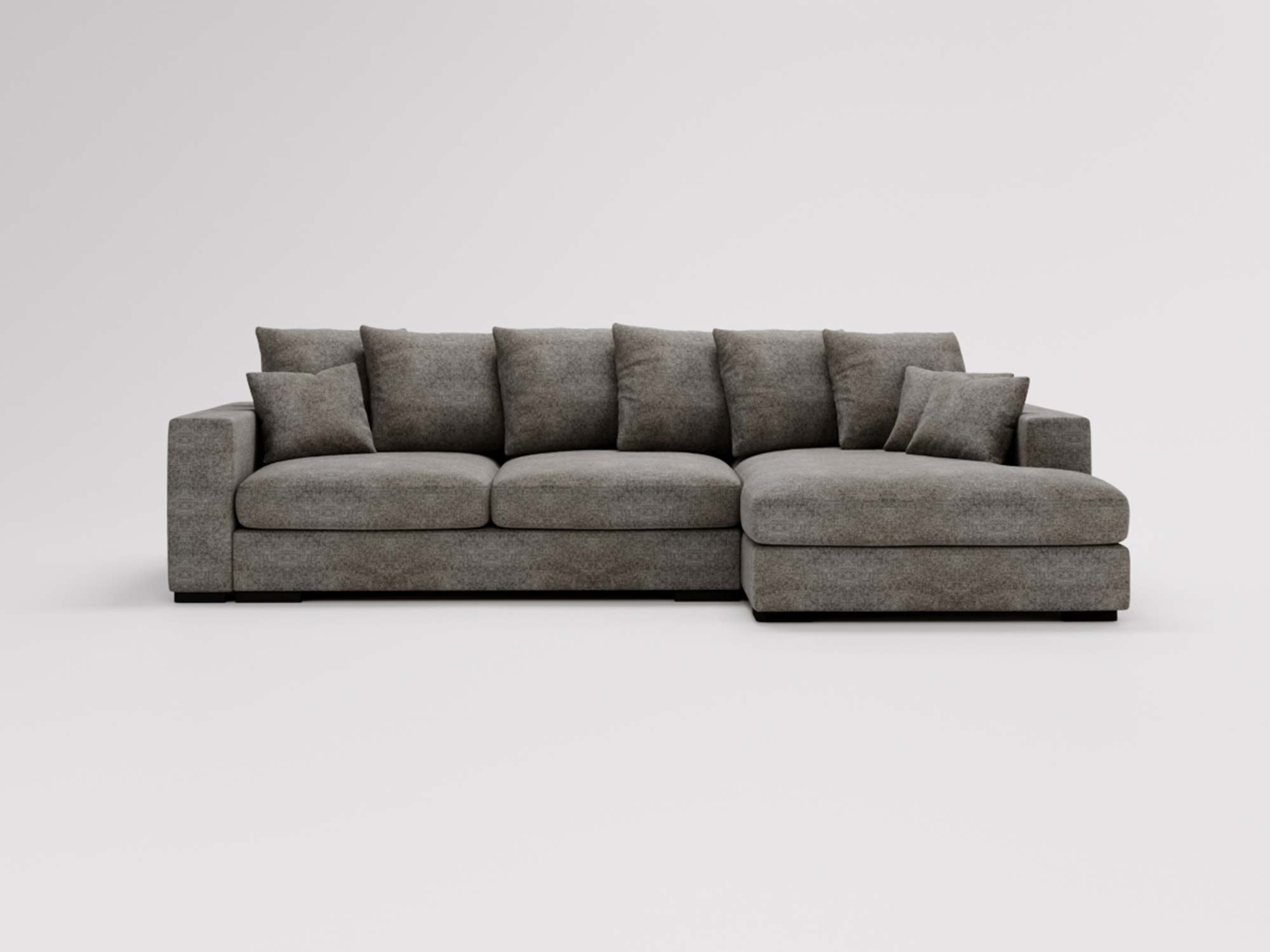 Nowoczesne wnętrza wymagają mebli, które łączą funkcjonalność z estetyką. Narożnik ENOLII wyróżnia się prostym, lecz wyrafinowanym kształtem, który z łatwością wkomponuje się w aranżację każdego salonu. Dodatkowym atutem są 5 dużych i 3 małe poduszki, które nie tylko zwiększają komfort, ale także podkreślają nowoczesny styl mebla, dodając mu przytulności i elegancji.
