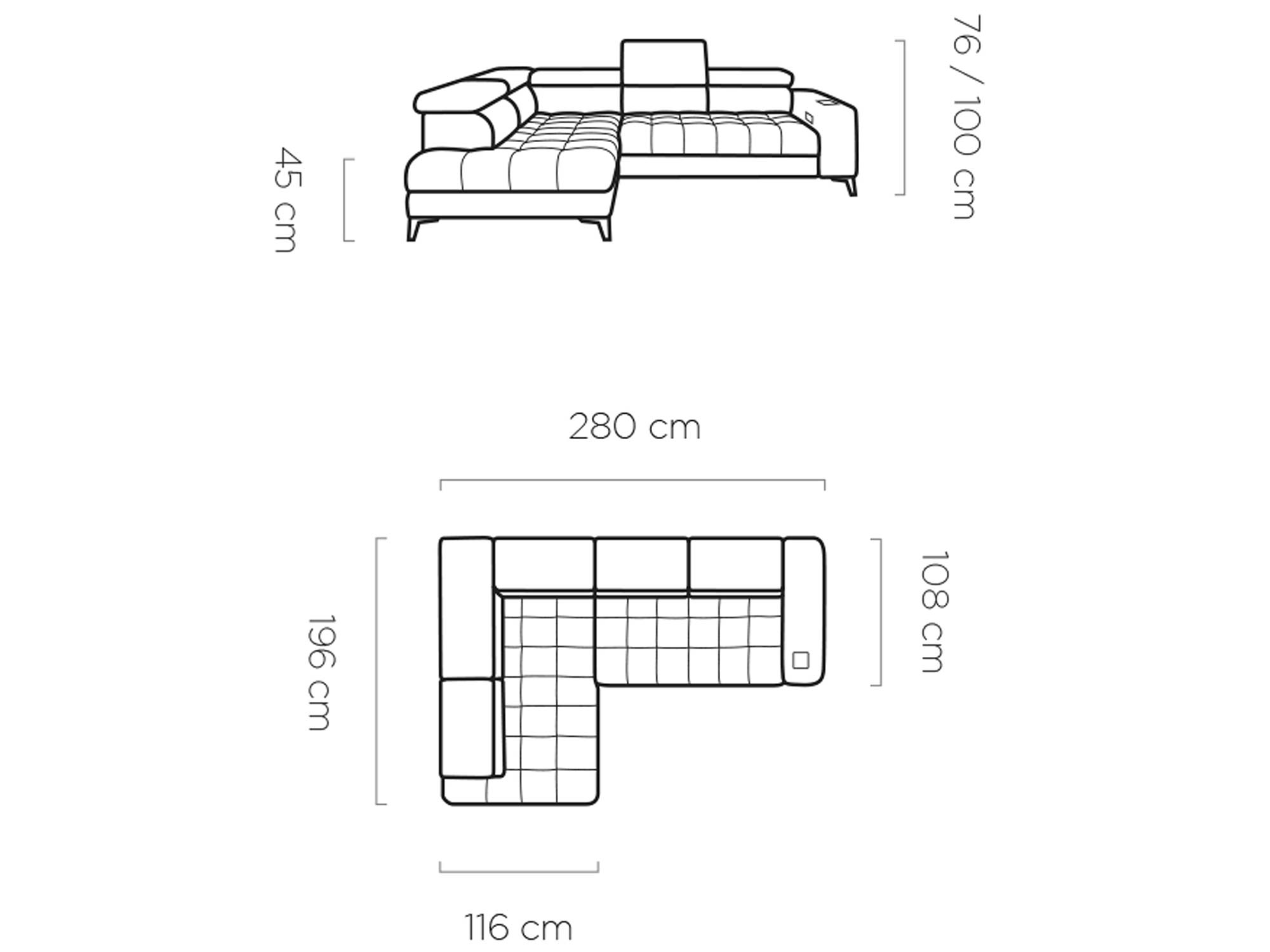 Narożnik z elektrycznym wysuwem Baggio to funkcjonalność i luksus w jednym: elektryczny wysuw zwiększający przestrzeń relaksu, ruchome zagłówki i przesuwane oparcia dla idealnego podparcia oraz praktyczny pojemnik na pościel, który pomaga utrzymać ład. Skórzana tapicerka i dopracowane detale sprawiają, że Baggio natychmiast dodaje wnętrzu klasy. Zamów już dziś i poczuj różnicę, jaką daje inteligentnie zaprojektowany mebel premium.