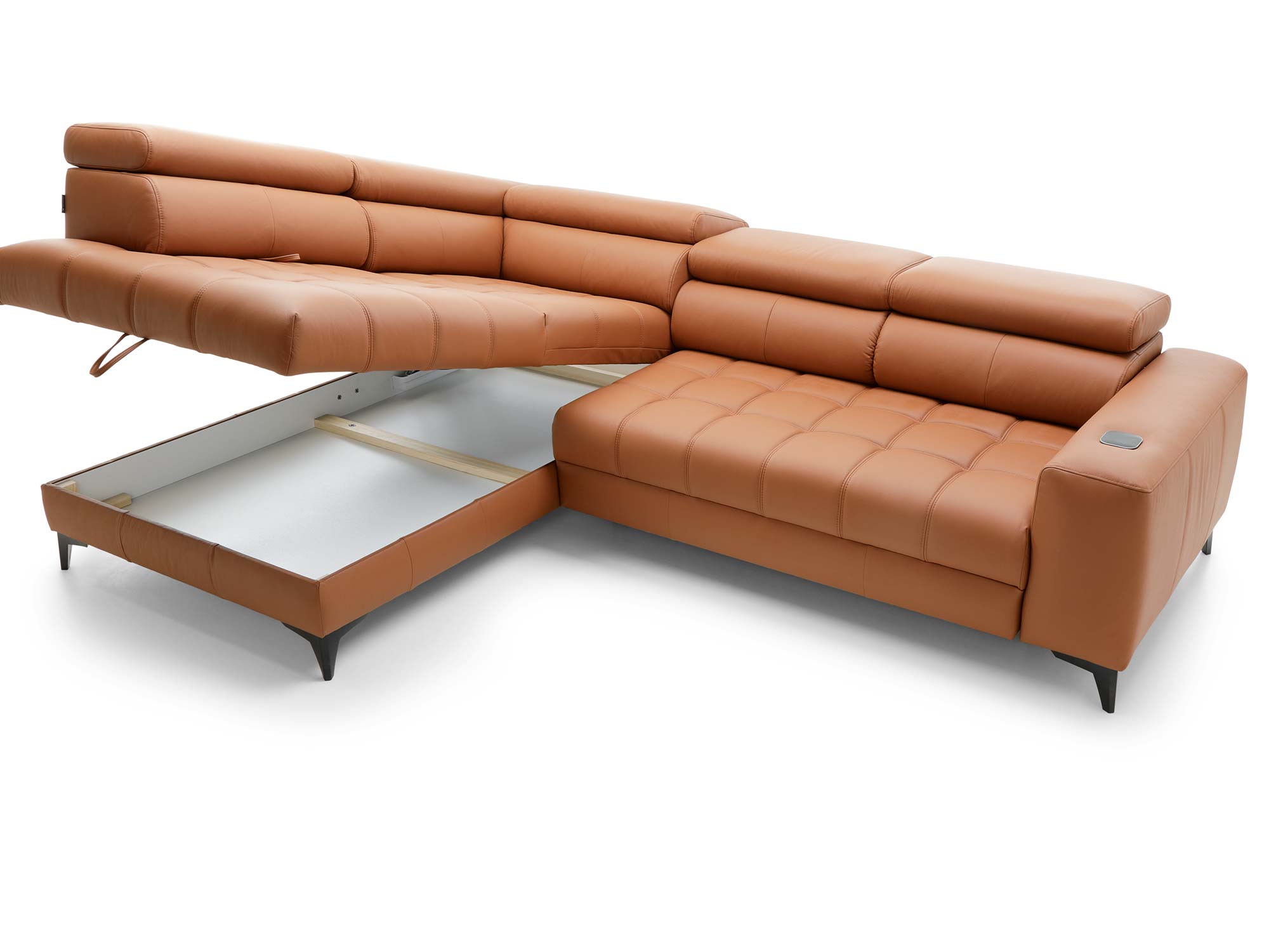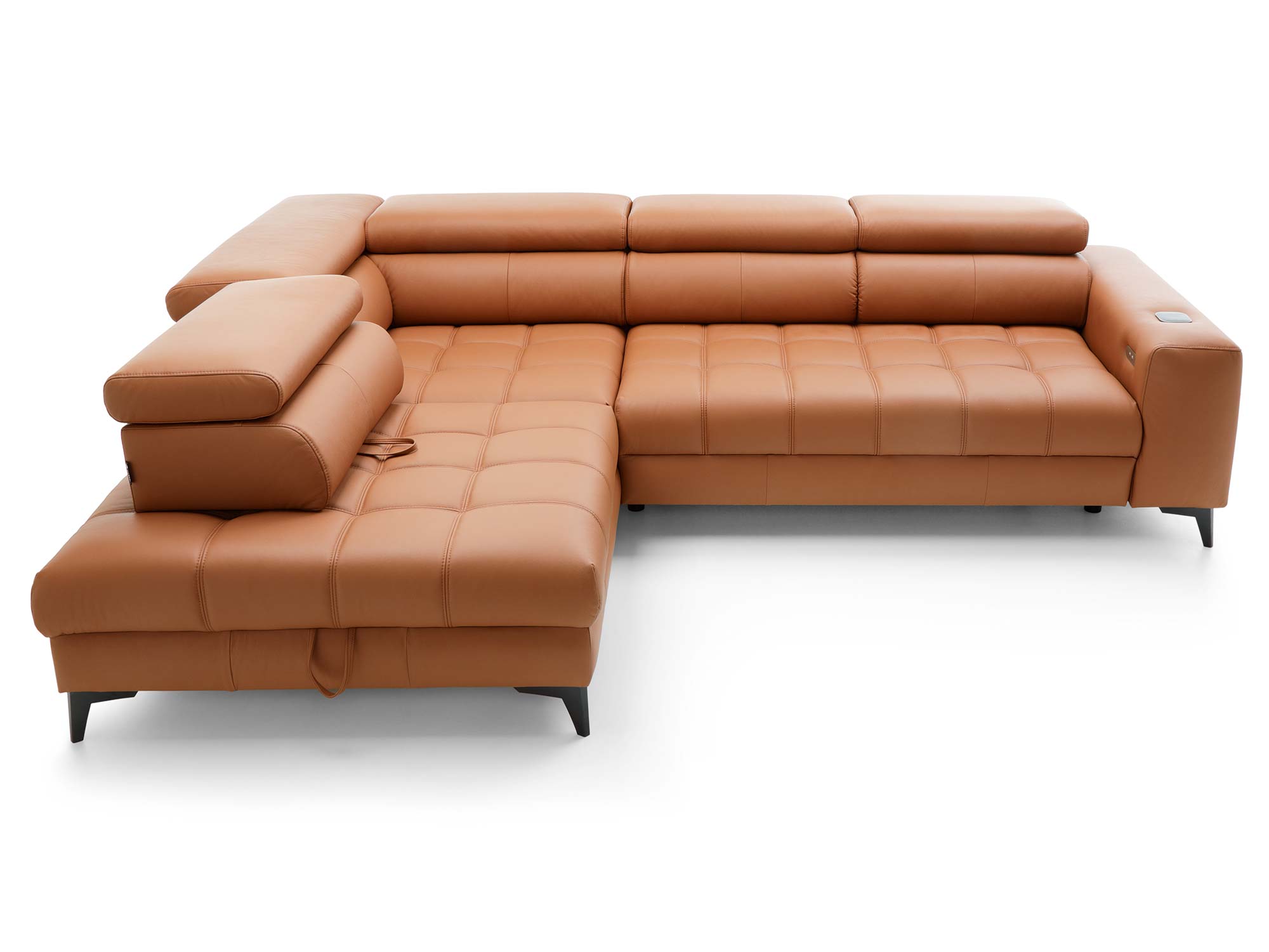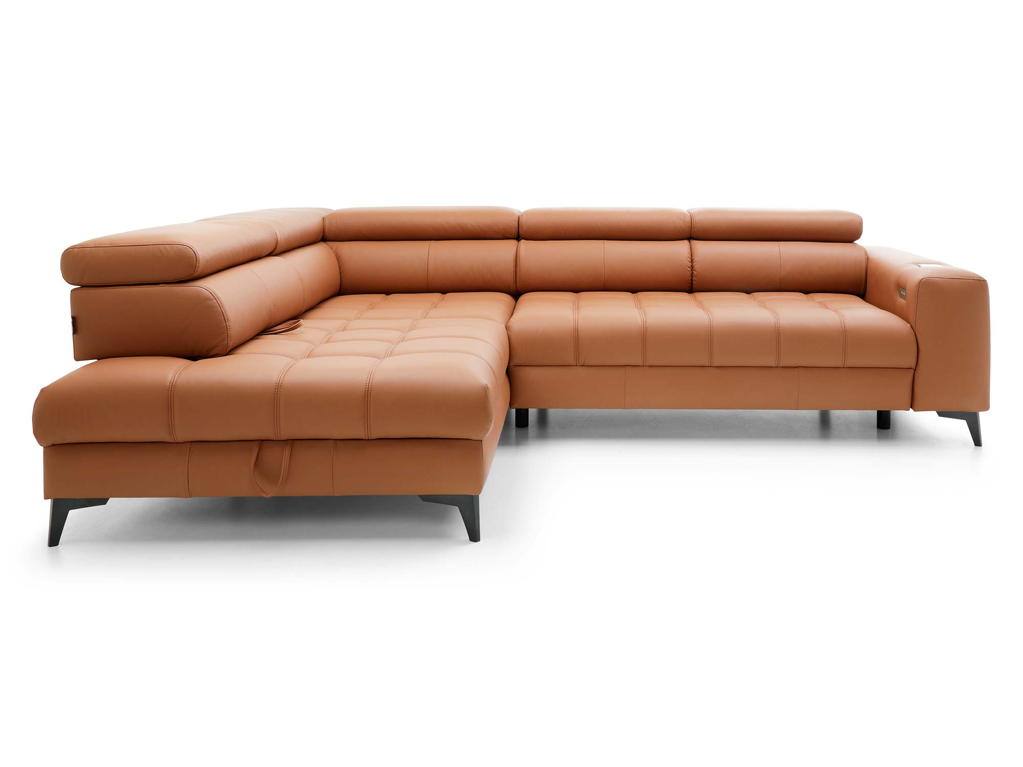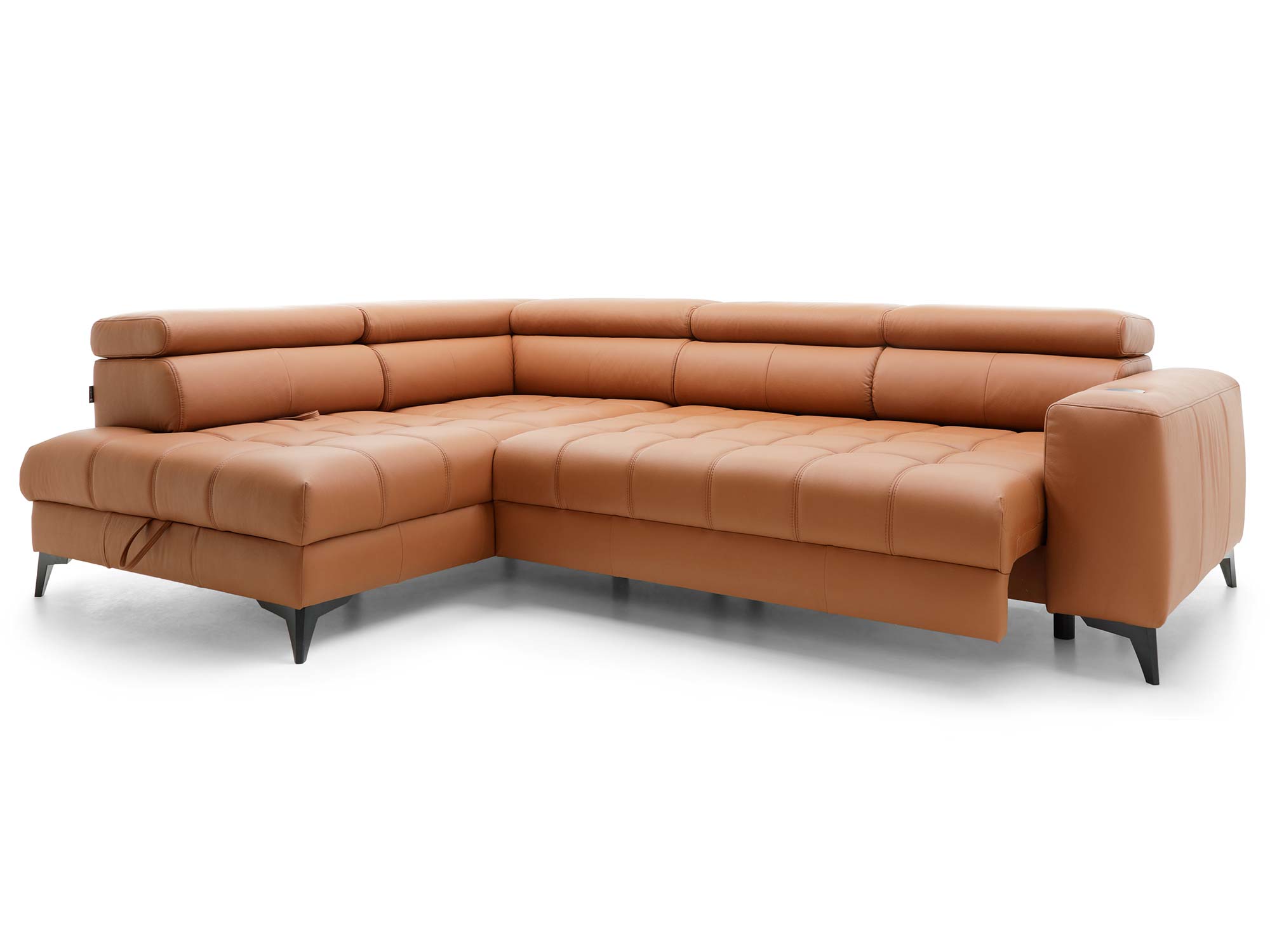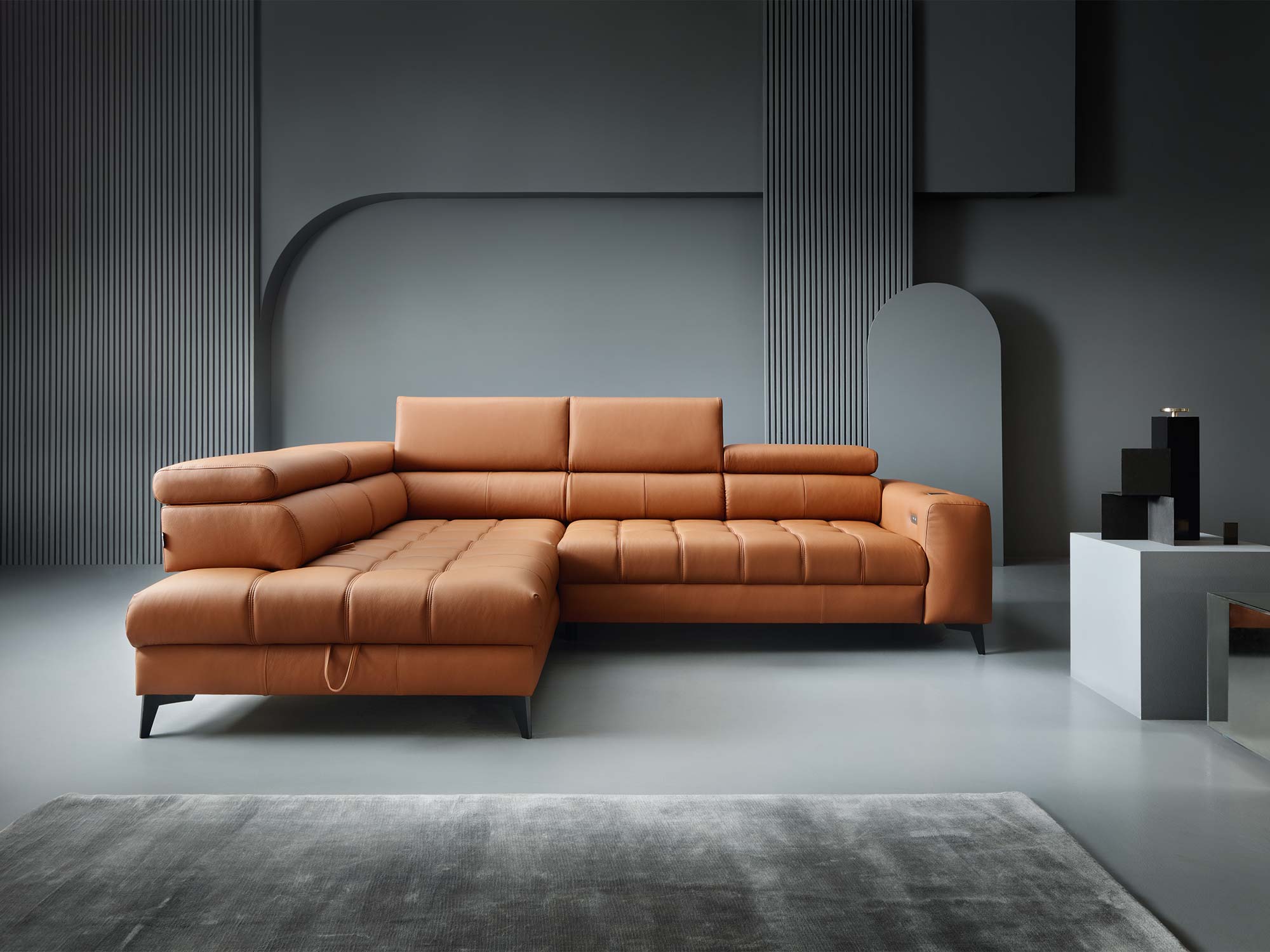 Narożnik Baggio – skóra naturalna, elektryczny wysuw i technologia, którą pokochasz