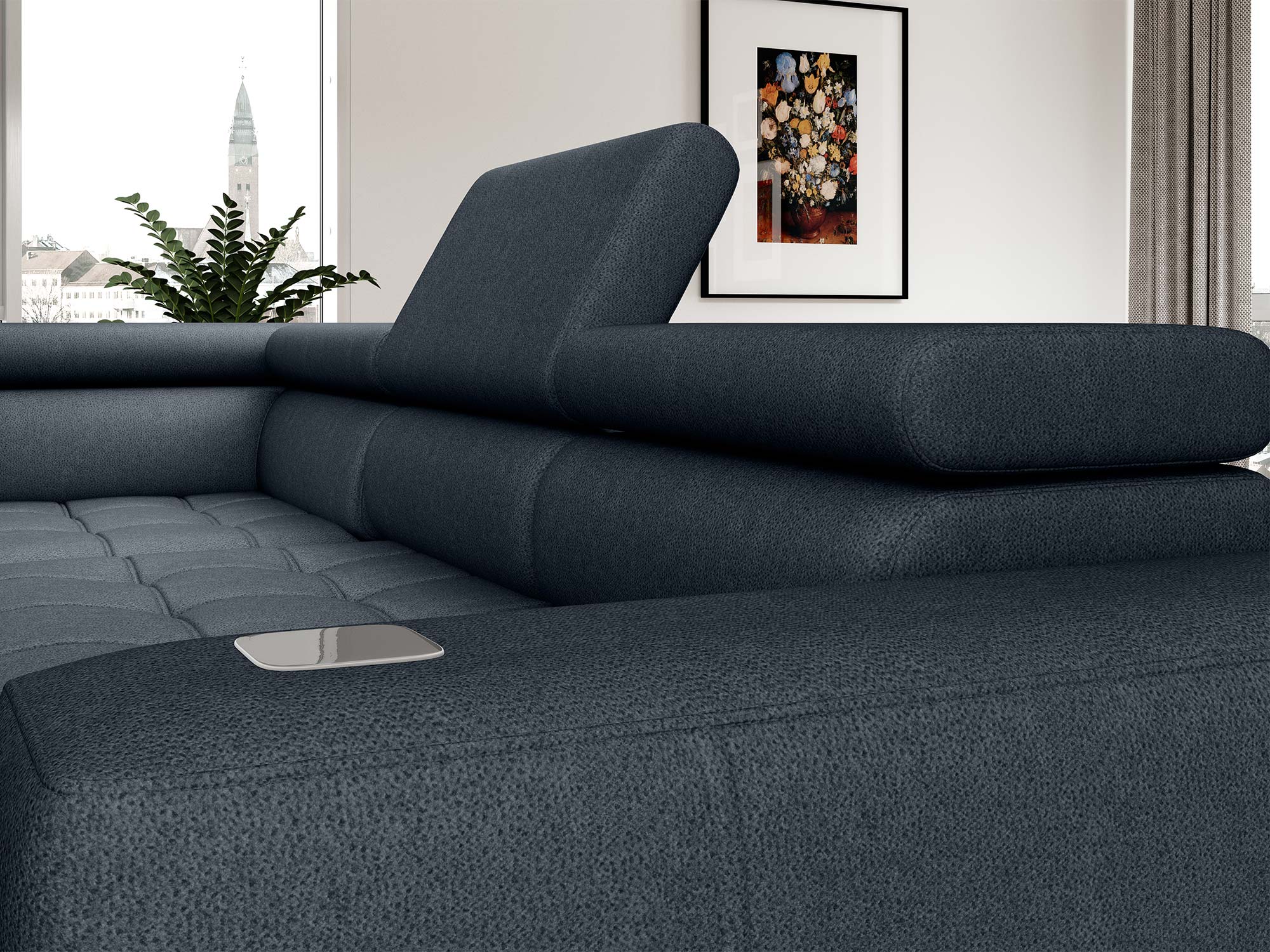 Wyobraź sobie, że siadasz i jednym dotknięciem zamieniasz elegancką sofę w strefę totalnego relaksu. Baggio to narożnik prawo/lewostronny, który łączy komfort klasy premium z ponadczasową estetyką. Elektrycznie regulowana głębokość siedziska, ruchome zagłówki (funkcja relax) i przesuwane oparcia pozwalają dopasować mebel do Twojego ciała i nastroju. A wisienką na torcie jest wbudowana ładowarka indukcyjna – odkładasz telefon i… ładujesz energię podwójnie: swoją i baterii.