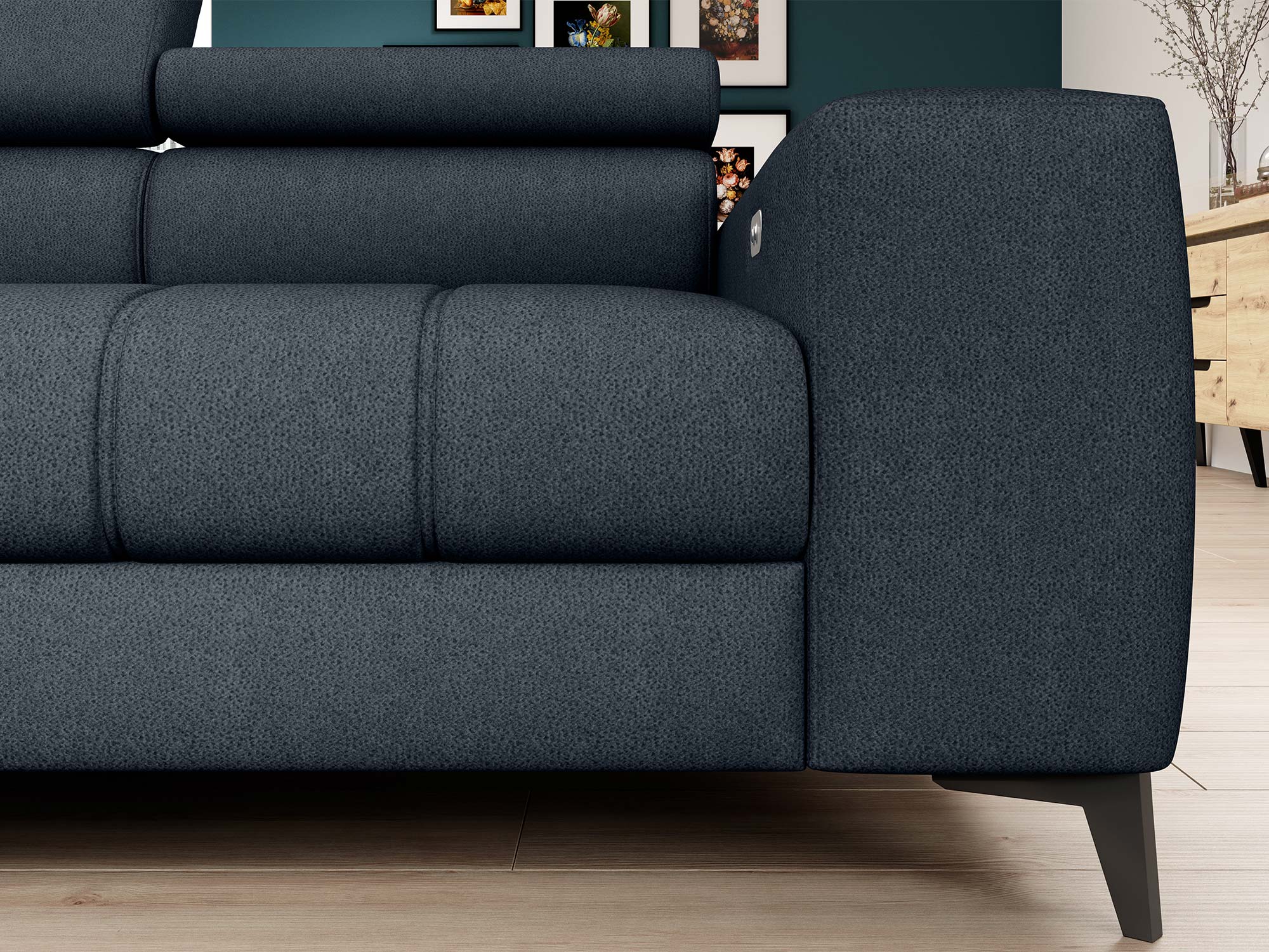 - Komfort „na klik” – elektryczny wysuw siedziska, regulowane zagłówki i przesuwane oparcia dopasują mebel do Ciebie.