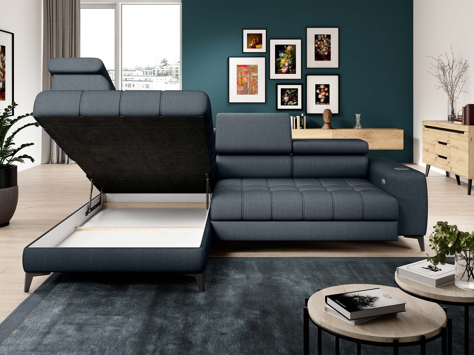 To narożnik zaprojektowany dla nowoczesnych, funkcjonalnych salonów: elegancki, dopracowany w detalach i pełen sprytnych rozwiązań, które naprawdę ułatwiają życie.