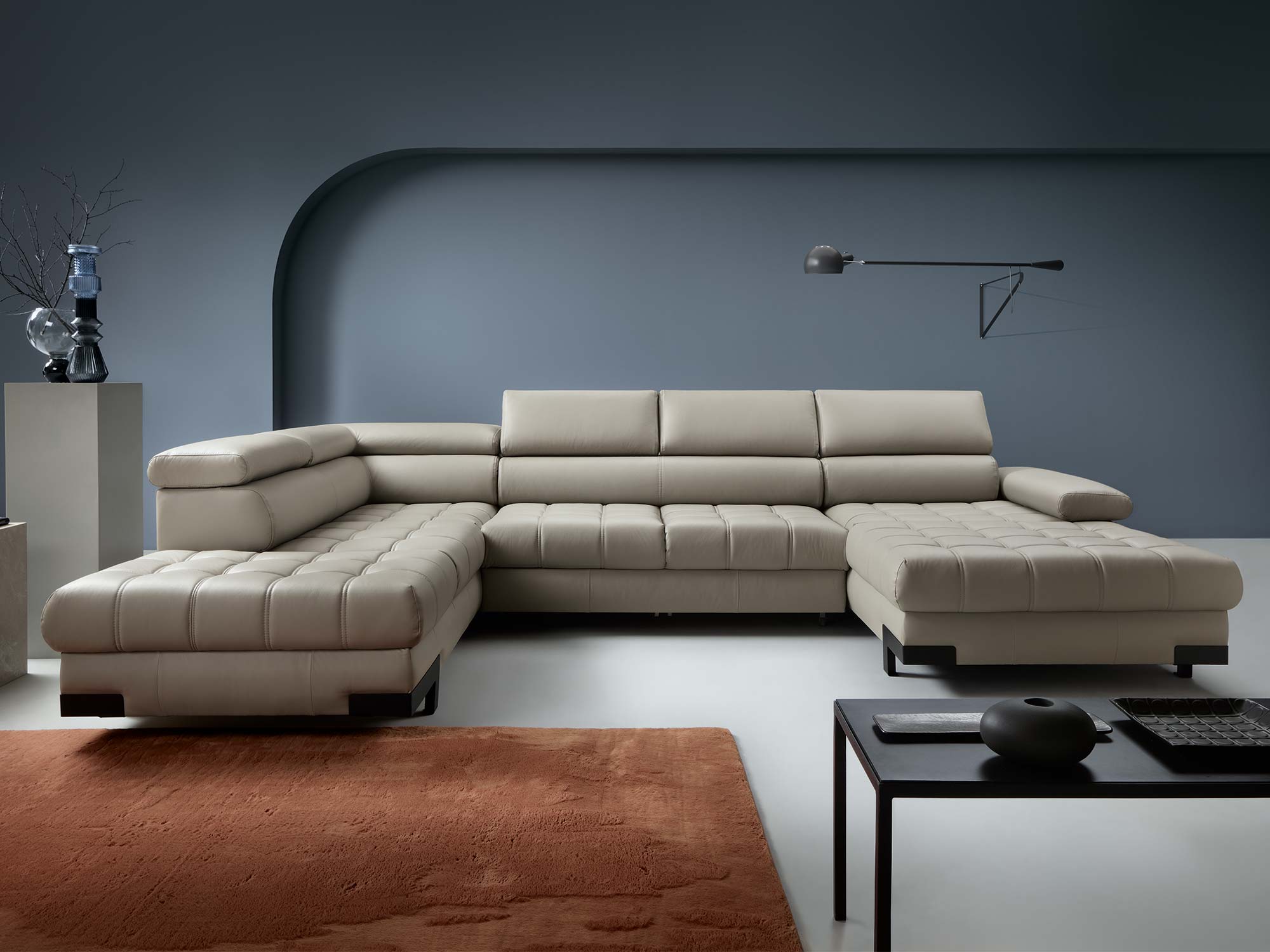 Selva XL zachwyca równowagą formy: nowoczesna, wyważona bryła z delikatnymi pikowaniami siedzisk i dopracowanymi detalami dekoracyjnymi nadaje wnętrzu prestiżowy charakter. Smukle zarysowane linie, podkreślone geometrycznym podziałem siedzisk, porządkują optycznie przestrzeń i wprowadzają poczucie ładu. Dzięki powiększonej skali i kształtowi litery U Selva XL naturalnie staje się centralnym punktem salonu – sprzyja rozmowom, integruje rodzinę i zaprasza do wspólnego odpoczynku.