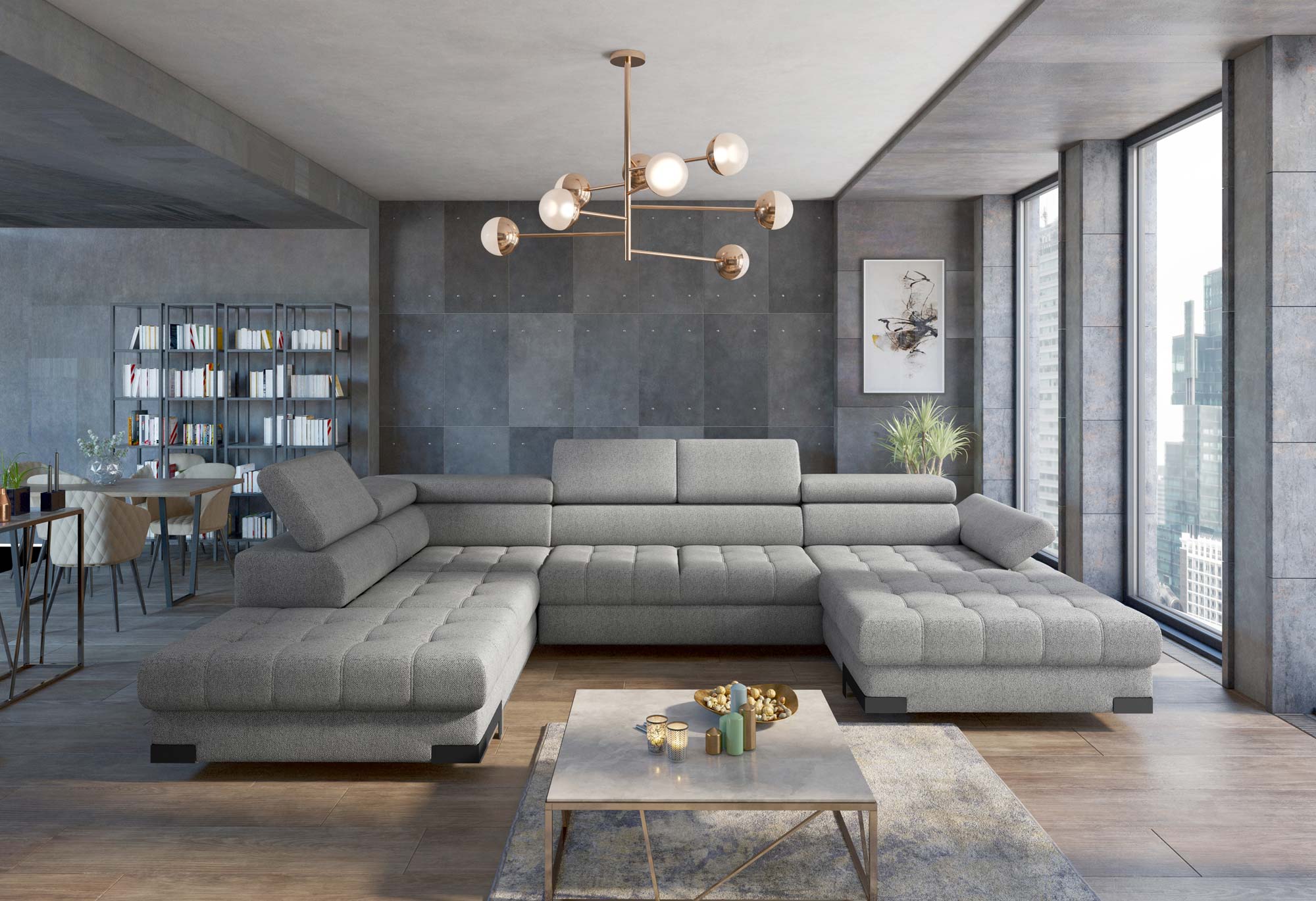 Wyobraź sobie salon, w którym każdy znajdzie ulubione miejsce: jedni na rozmowę przy kawie, inni na filmowy maraton, a jeszcze inni… na wygodną drzemkę. Selva XL to narożnik w układzie U, który łączy nowoczesną estetykę z komfortem i praktycznością dnia codziennego. Przestronne siedziska, odpowiednio wyprofilowane oparcia oraz ruchome zagłówki (funkcja relax) tworzą prywatną strefę SPA w sercu domu. A gdy przyjadą goście – w kilka chwil zamieniasz sofę w wygodne łóżko dzięki sprawdzonemu mechanizmowi DELFIN.