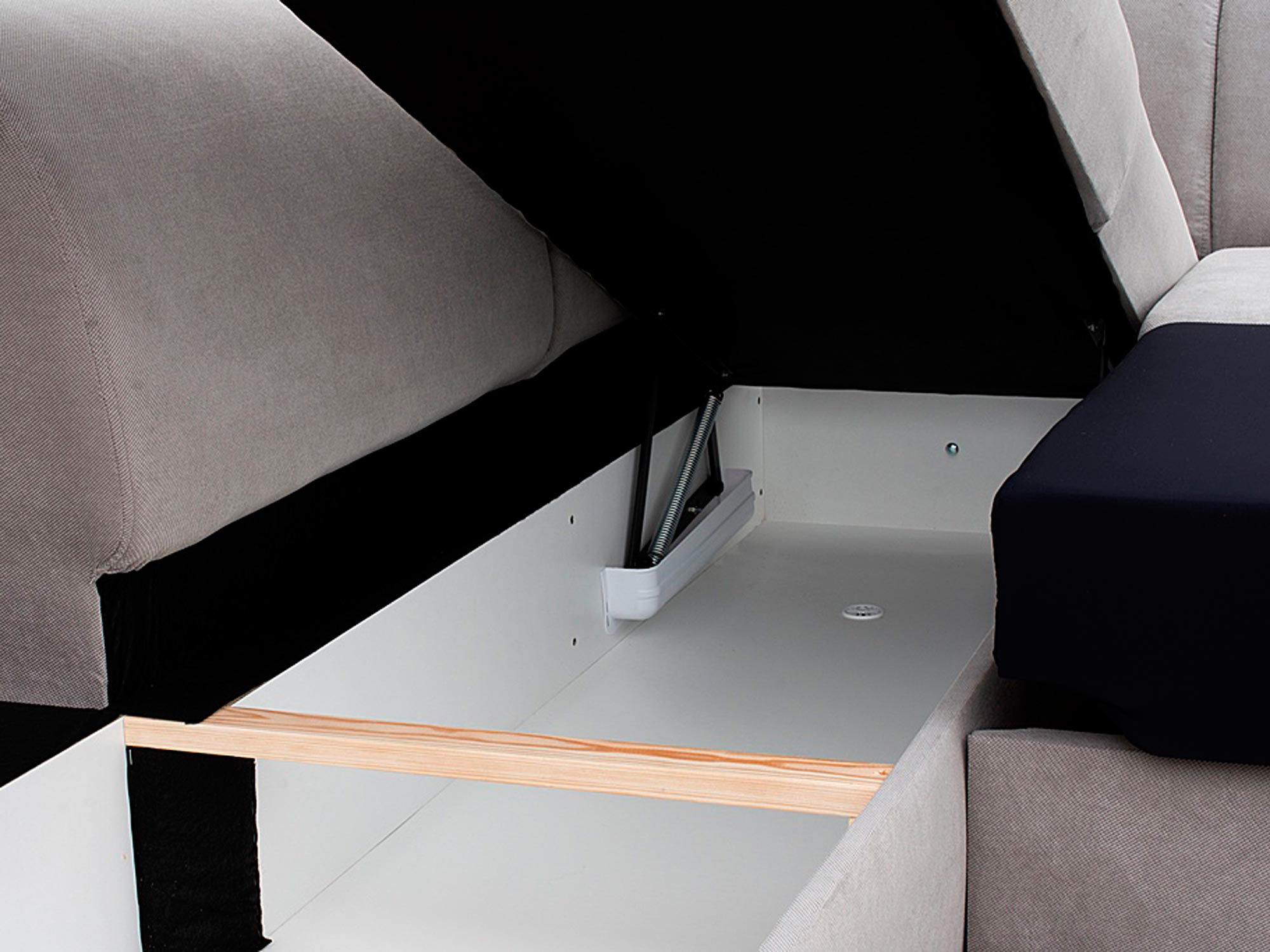 Co najważniejsze duży narożnik z pojemnikiem tapicerowany jest tkaniną dostępną w szerokiej gamie kolorystycznej do wyboru. Ponadto model ten posiada drewniany stelaż wypełniony pianką tapicerską T-30 i sprężyną falistą na siedzisku. Przede wszystkim zapewnią one odpowiednią twardość, a przy tym przeciwdziałają tworzenie się nieestetycznych odkształceń. Dodatkowo narożnik ten dostępny jest w wersji prawo- i lewostronnej do wyboru, dzięki czemu łatwo można dopasować go do aranżowanego pomieszczenia. Co więcej mebel ten nie tylko zapewni komfortowy wypoczynku, ale także doskonale zaprezentuje się we wnętrzu.