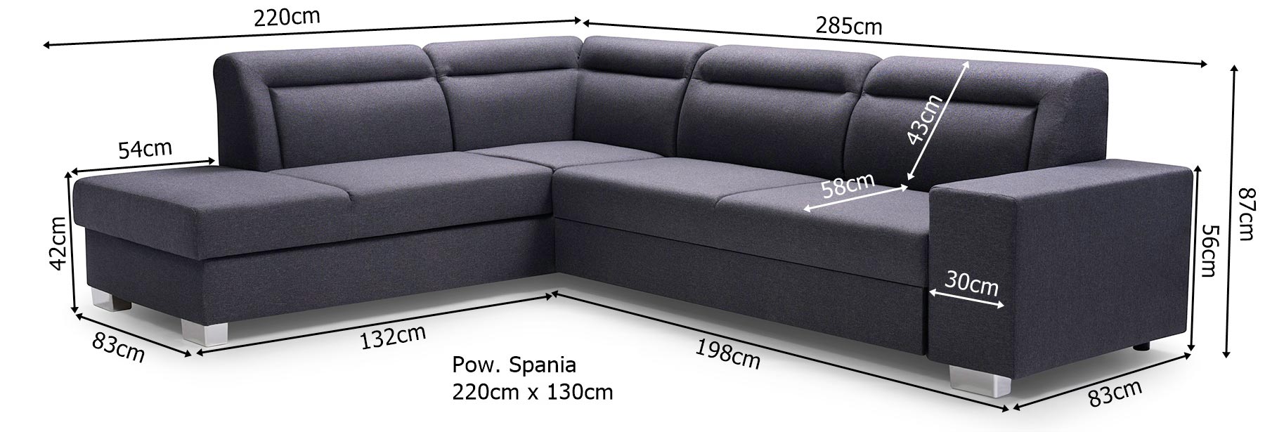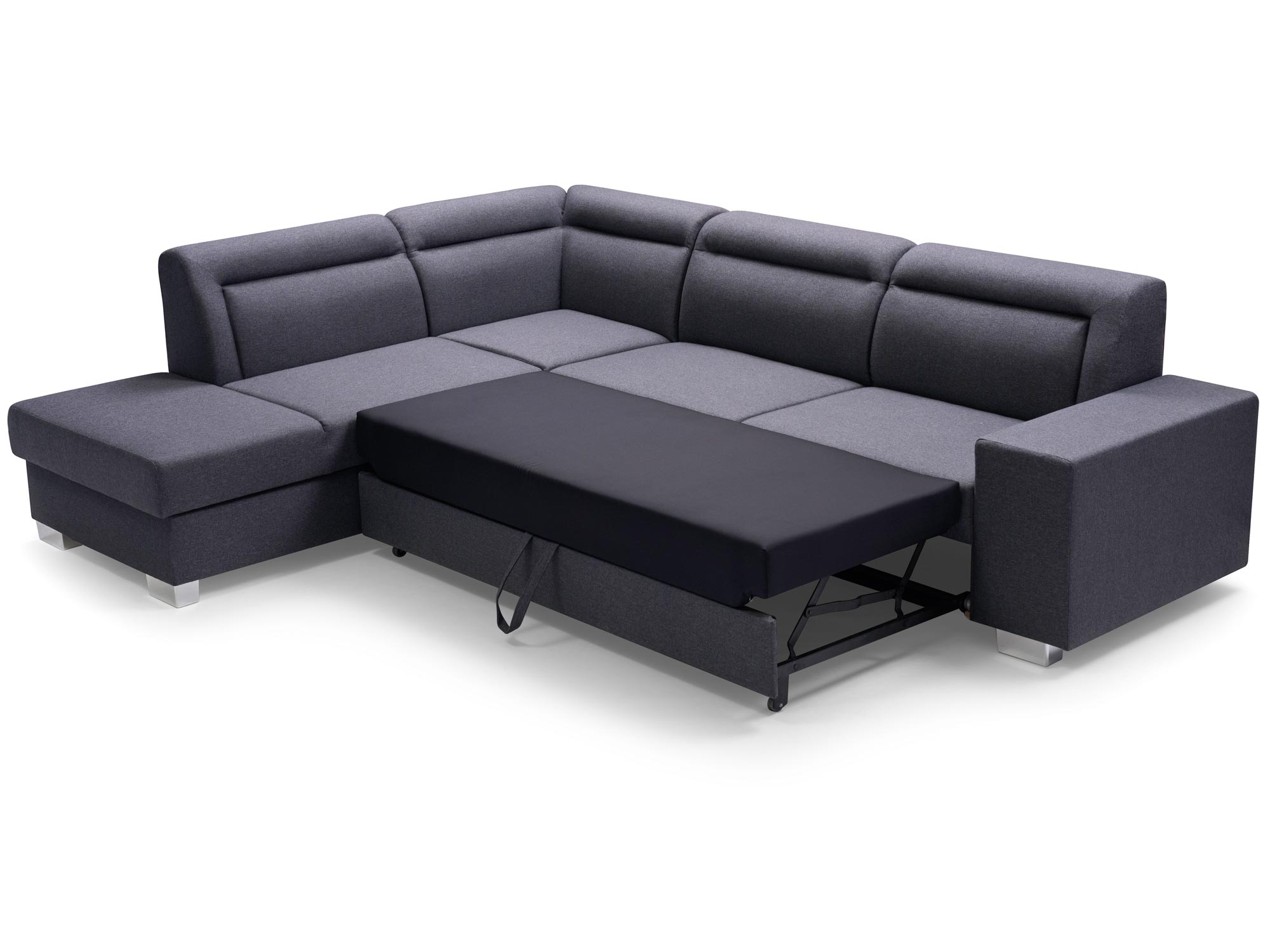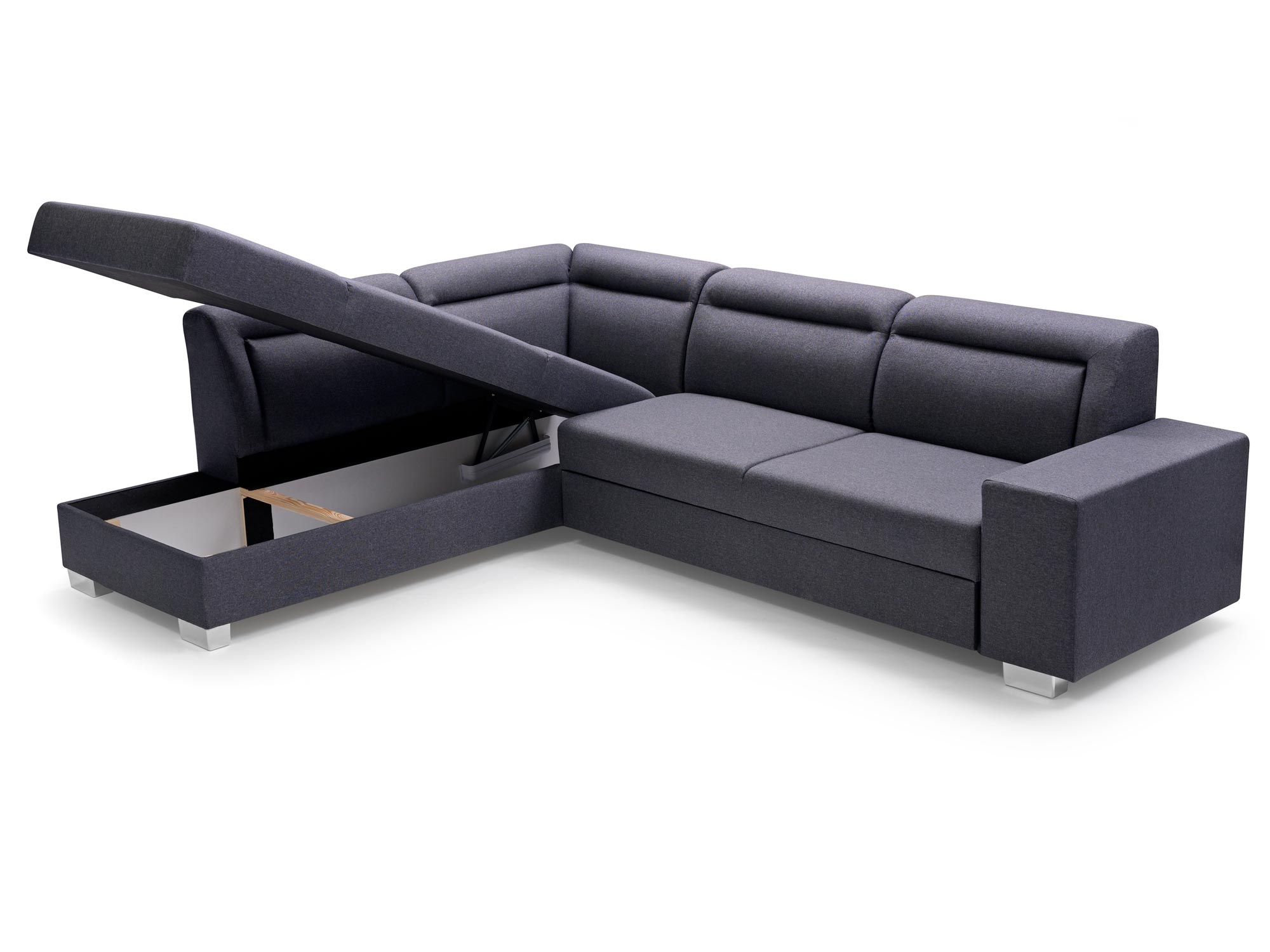 Co najważniejsze narożnik 285×220 cm na nóżkach BRUNO to model dostępny jest w wersji prawo- lub lewostronnej do wyboru. Dzięki temu można go z łatwością dopasować do aranżowanego pomieszczenia. Ponadto narożnik z funkcją spania to praktyczny element wyposażenia salonu, gdyż za dnia będzie pełnił doskonałe miejsce do wypoczynku, natomiast w nocy będzie komfortowym i wygodnym łóżkiem. Co więcej ten funkcjonalny narożnik oprócz oprócz funkcji spania posiada także przestronny pojemnik na pościel. Dodatkowo mebel wyposażony został w automat typu delfin wspomagający rozkładanie, dzięki czemu w prosty sposób można zamienić narożnik w komfortowe miejsce do snu. Sprawdź dostępną ofertę narożników, które posiadamy w naszym sklepie.