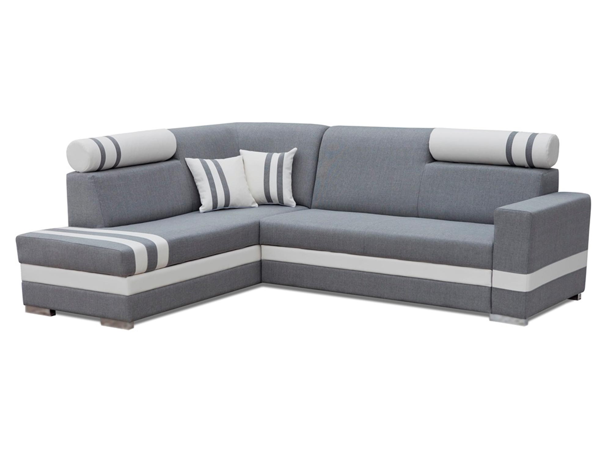 Co najważniejsze narożnik posiada solidny drewniany stelażu i nóżki w kolorze chromu dzięki czemu konstrukcja jest trwała i stabilna. Ponadto mebel w zestawie posiada ozdobne poduszki i dwa zagłówki o zaokrąglonym kształcie. Gwarantują one przede wszystkim maksymalny komfort wypoczynku. Dodatkowo model STEVEN wyposażono w przestronny pojemnik, w którym z powodzeniem można przechowywać koce, kołdry oraz poduszki.