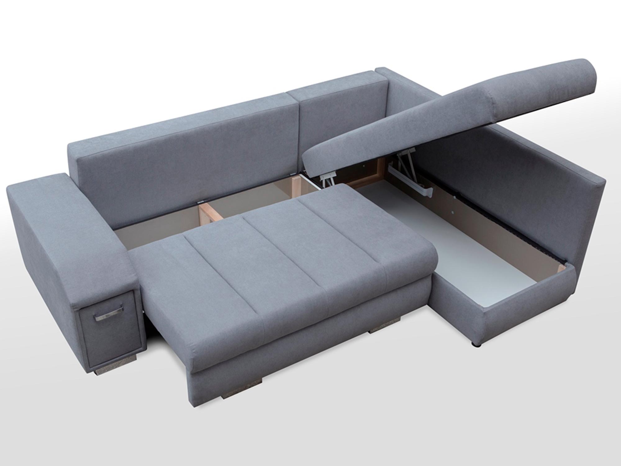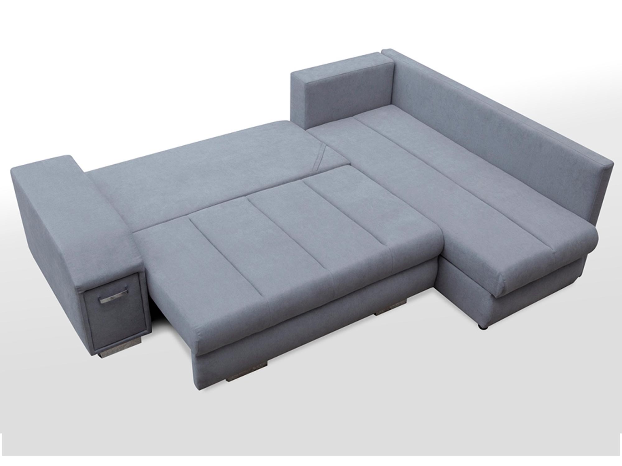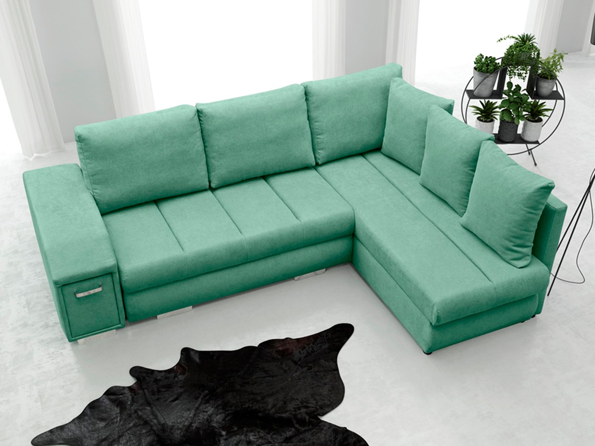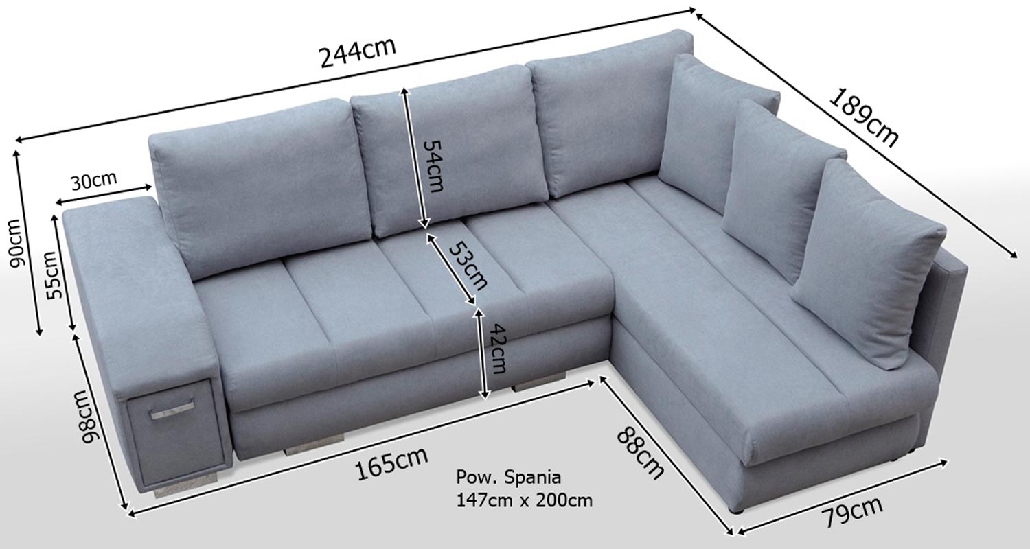 Co najważniejsze model ten wyposażono w drewniany stelaż który jest solidny i trwały. Ponadto model jest tapicerowany tkaniną, dostępną w szerokiej gamie kolorystycznej do wyboru. Co więcej stylowy narożnik AGNES posiada dwa przestronne pojemniki na pościel, a także praktyczną wysuwaną szufladę z dwoma przegródkami umieszczoną z boku. Z powodzeniem można przechowywać w niej różne przedmioty potrzebne pod ręką podczas wypoczynku. Dodatkowo narożnik wypełniono w sprężyny faliste oraz piankę tapicerską, co pozwoli na dłuższe zachowanie elastyczności siedziska i przeciwdziała odkształceniom. Dopełnienie całości mebla stanowią nóżki w kolorze chromu, nadające modernistycznego charakteru całości.