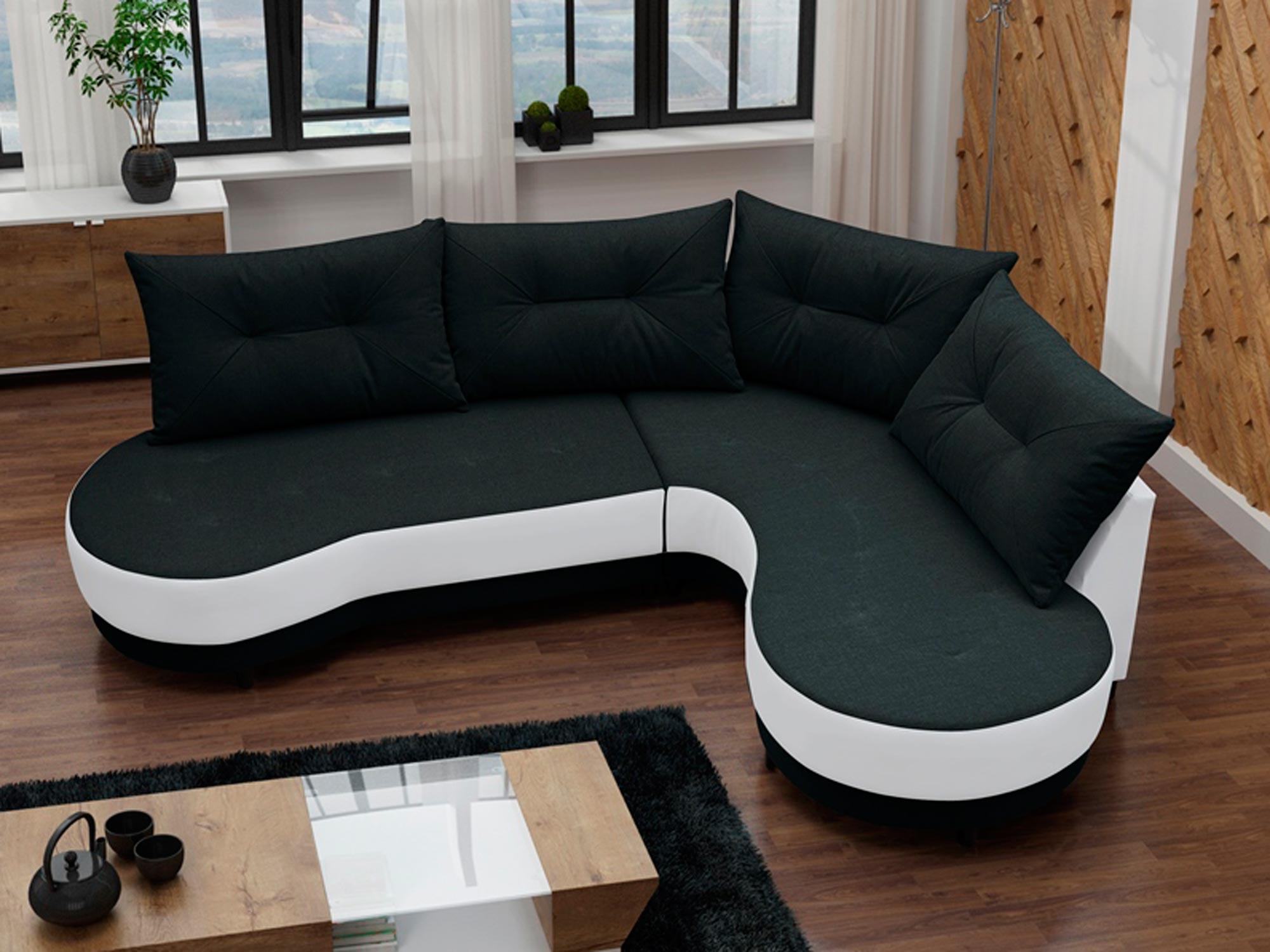 Przede wszystkim półokrągły narożnik MELANIE to model wyróżniający się na tle innych propozycji swoim unikalnym kształtem. Ponadto narożnik dostępny jest w wersji prawo- oraz lewostronnej do wyboru. Dzięki temu można go z łatwością dopasować do aranżowanego wnętrza. Co więcej model ten wyposażono w w drewniany stelaż i plastikowe nóżki w czarnym kolorze nadające meblowi charakteru. Sprawdź dostępne w naszej ofercie inne modele narożników.