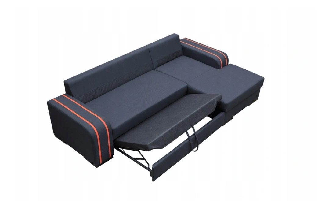 Co najważniejsze rozkładany narożnik z poduszkami GRACE to nowoczesna propozycja z efektownymi wstawkami. Z pewnością przypadnie on do gustu miłośnikom modernistycznych, a przy tym funkcjonalnych rozwiązań. Rozkładany narożnik dostępny jest zarówno w wersji prawo- jak i lewostronnej do wyboru. Dzięki temu z łatwością można dopasować go do indywidulanych preferencji i swojego pomieszczenia. Model ten wyposażony został w drewniany stelaż, a także drewniane nóżki, które zapewniają trwałość i stabilność narożnika. Ponadto posiada także pojemnik na pościel. Sprawdź również dostępne w naszym sklepie inne modele narożników.