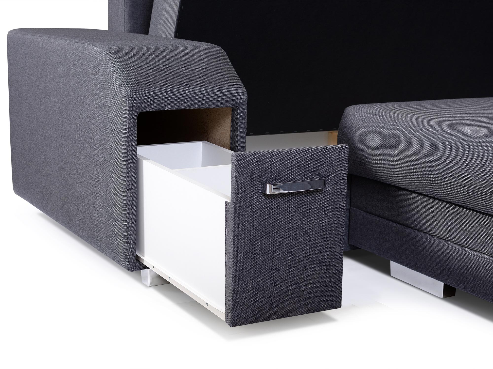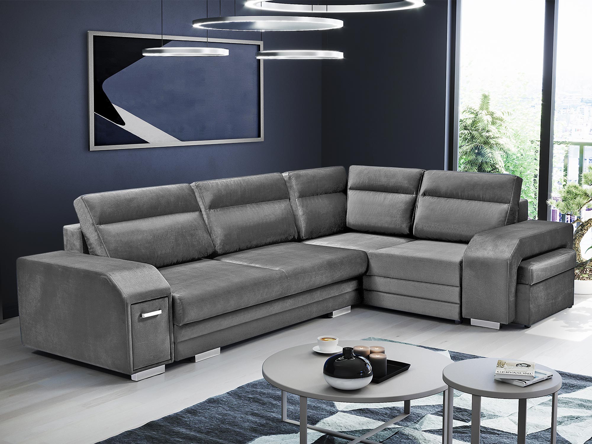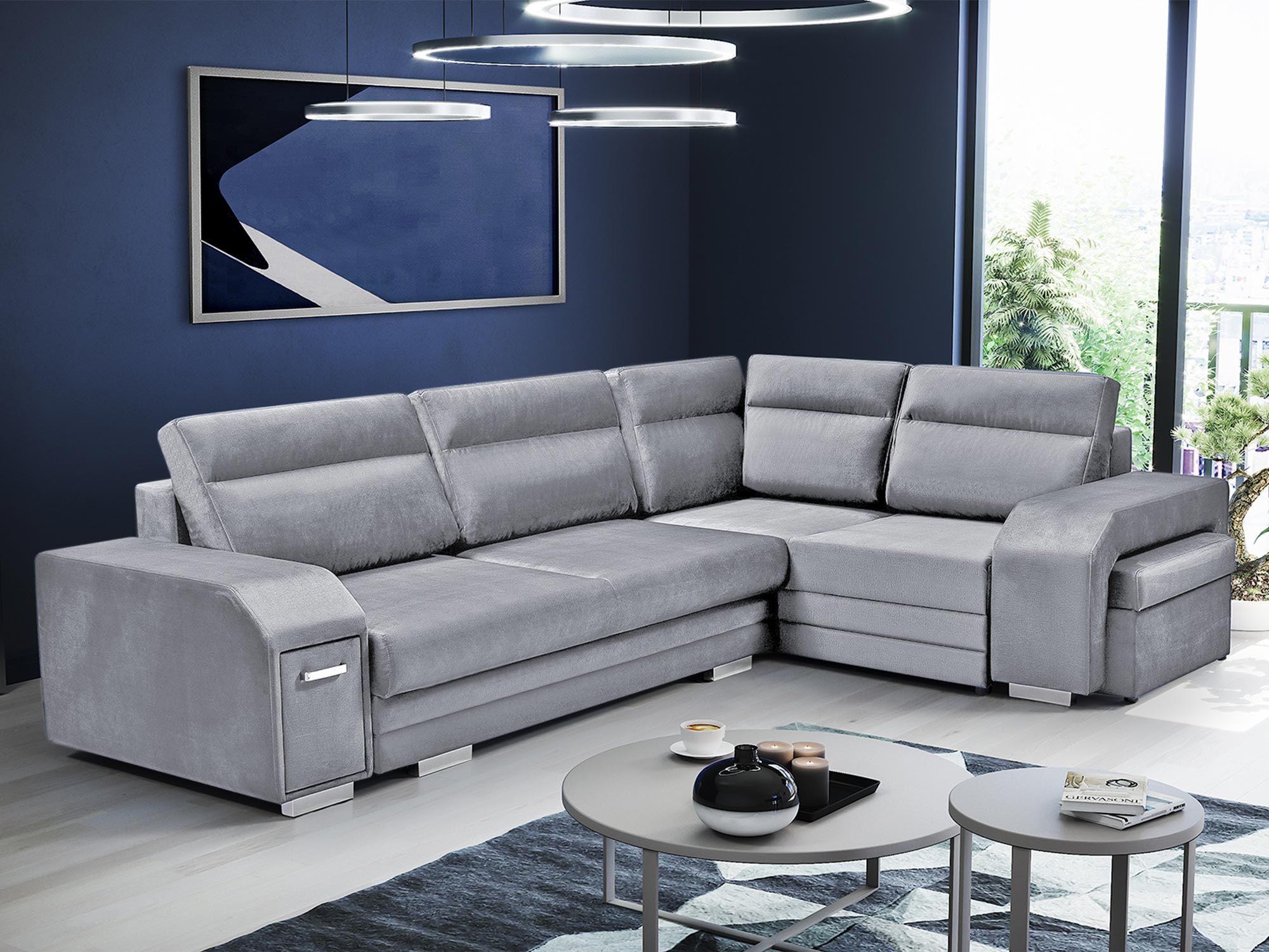 Co najważniejsze rozkładany narożnik posiada automat ułatwiający rozkładanie, pozwoli on na łatwy dostęp do 2 pojemników na pościel w które został wyposażony narożnik oraz szybkie rozłożenie narożnika do nocnego wypoczynku. Ponadto narożnik posiada dekoracyjne poduszki, które zapewniają idealny komfort użytkowania. Dodatkowo narożnik FELICIA posiada wypełnienie ze sprężyn falistych oraz pianki tapicerskiej T-30. Co więcej zapewnią one zarówno odpowiednią trwałość jak i elastyczność zarówno siedziska jak i oparcia. Prezentowany narożnik jest w całości tapicerowany  tkaniną dostępną w szerokiej gamie kolorystycznej.