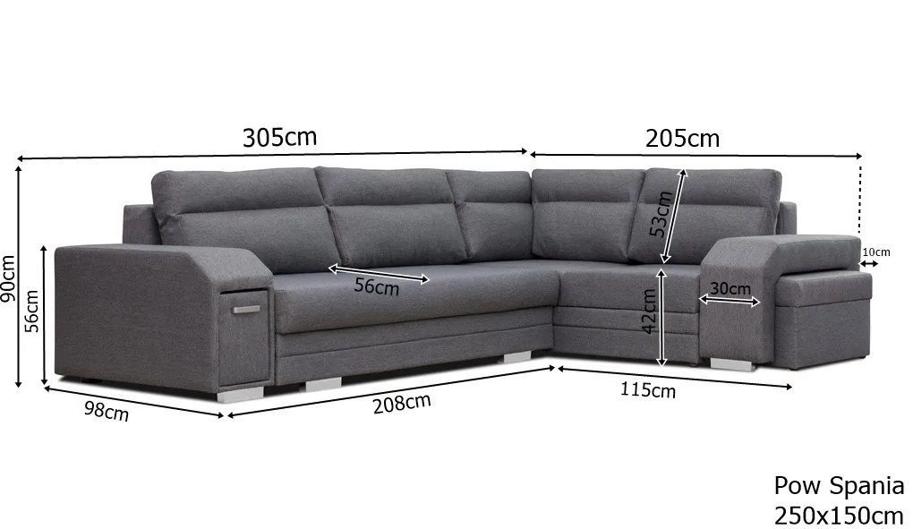 Narożnik z Pufą i Schowkiem wymiary FELICIA