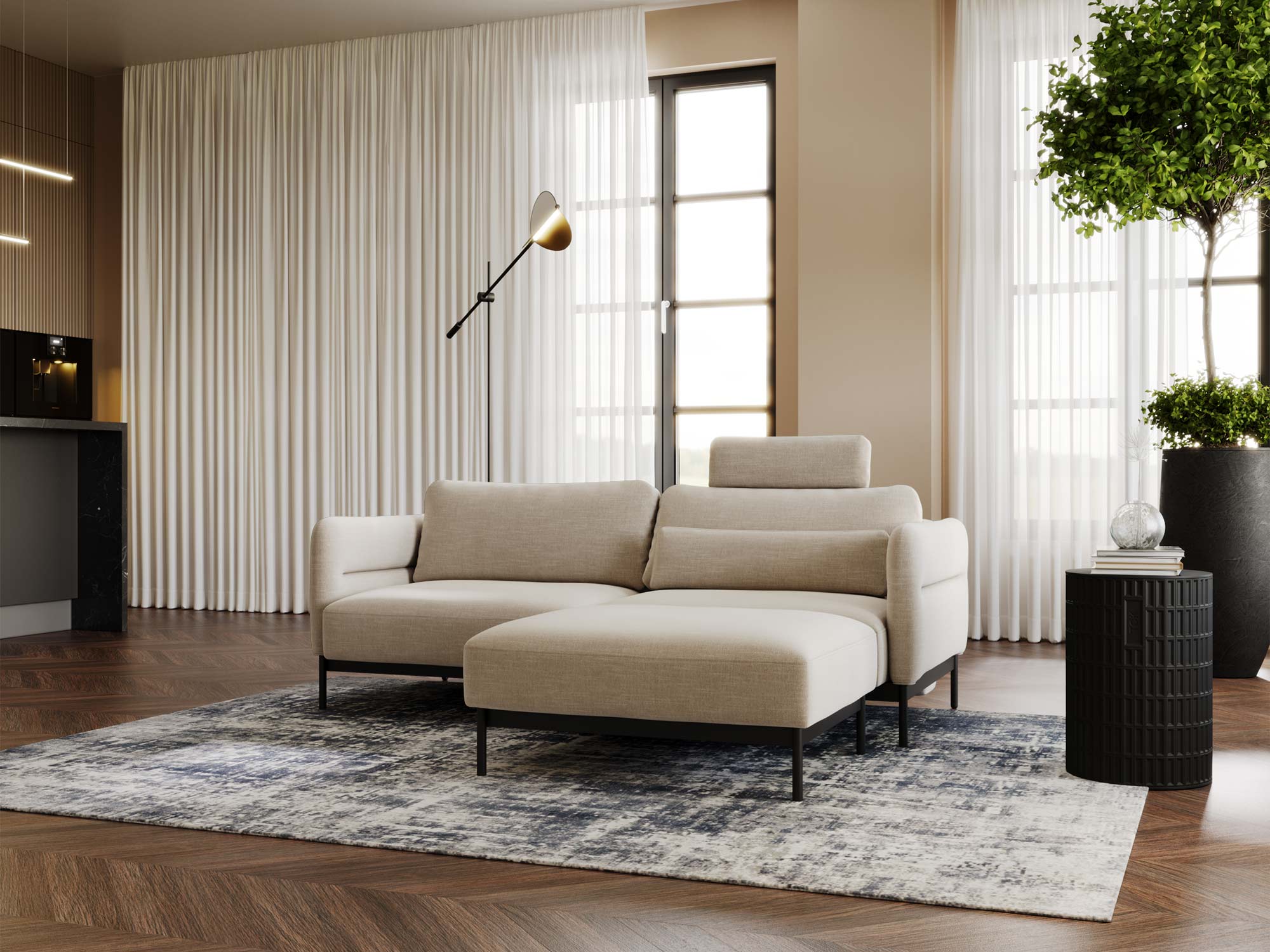 Narożnik beżowy z nowoczesnym siedziskiem i stabilną ramą