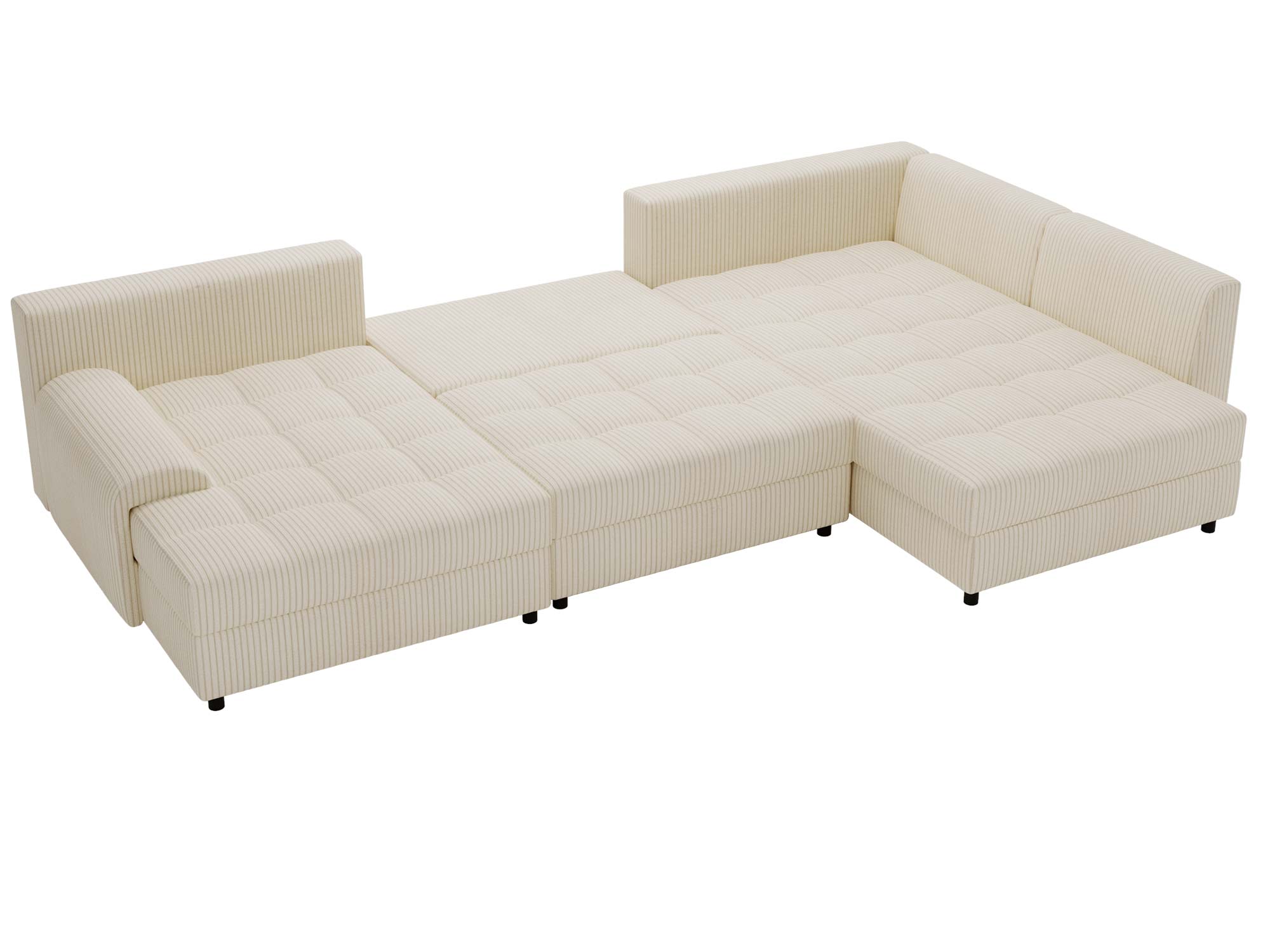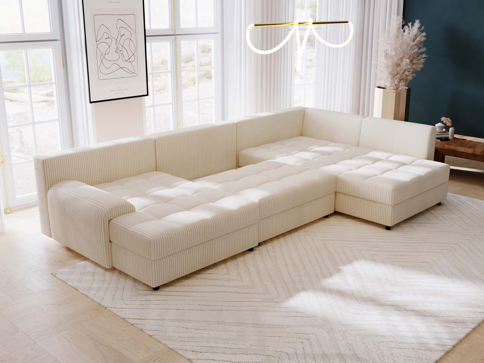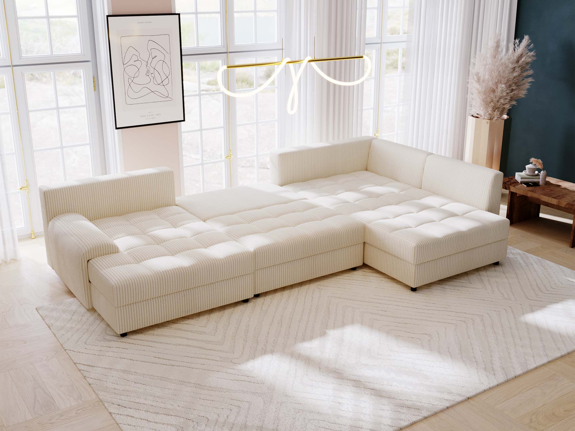 Kremowy narożnik narożny z fakturą sztruksową i grubym oparciem