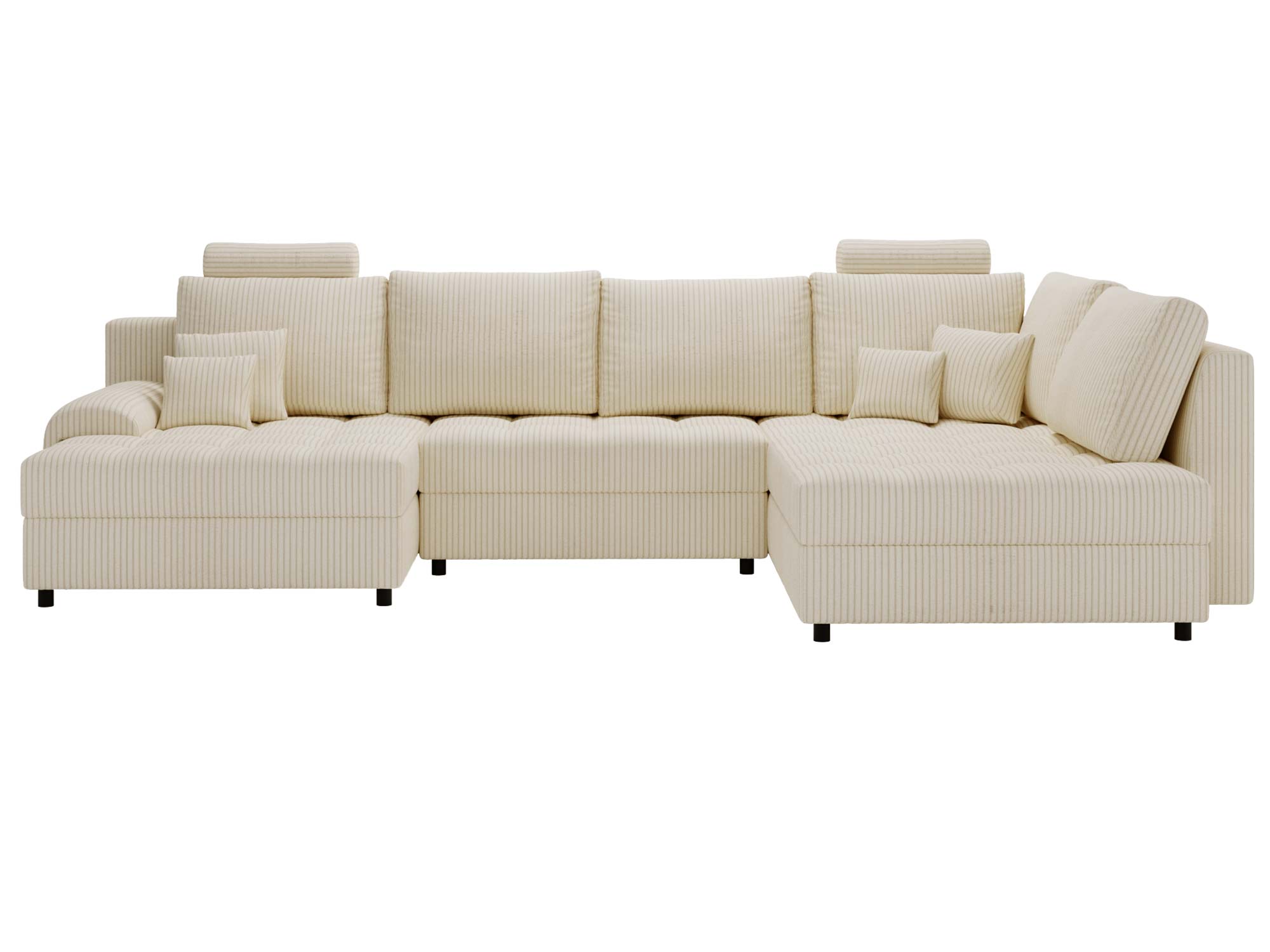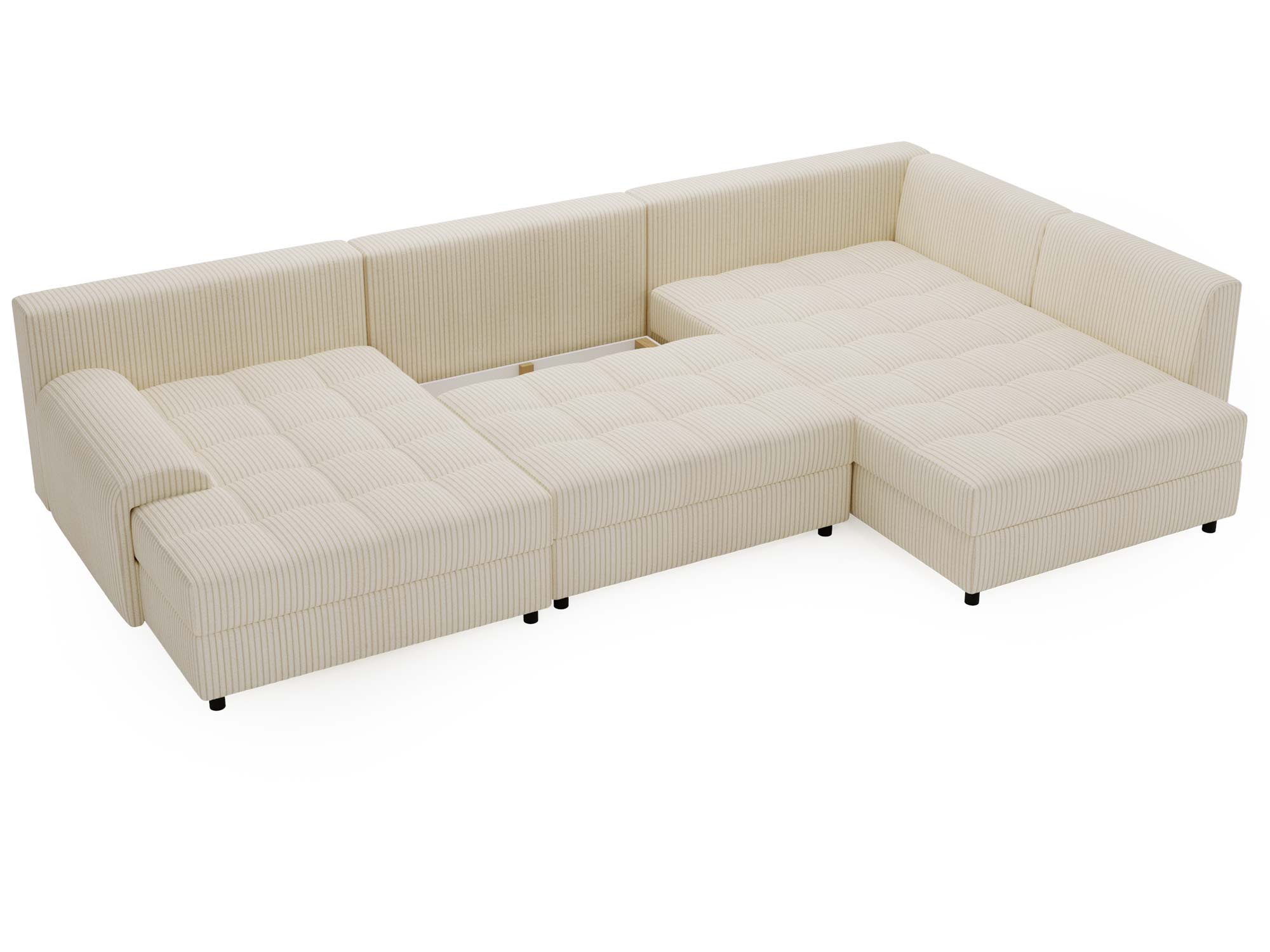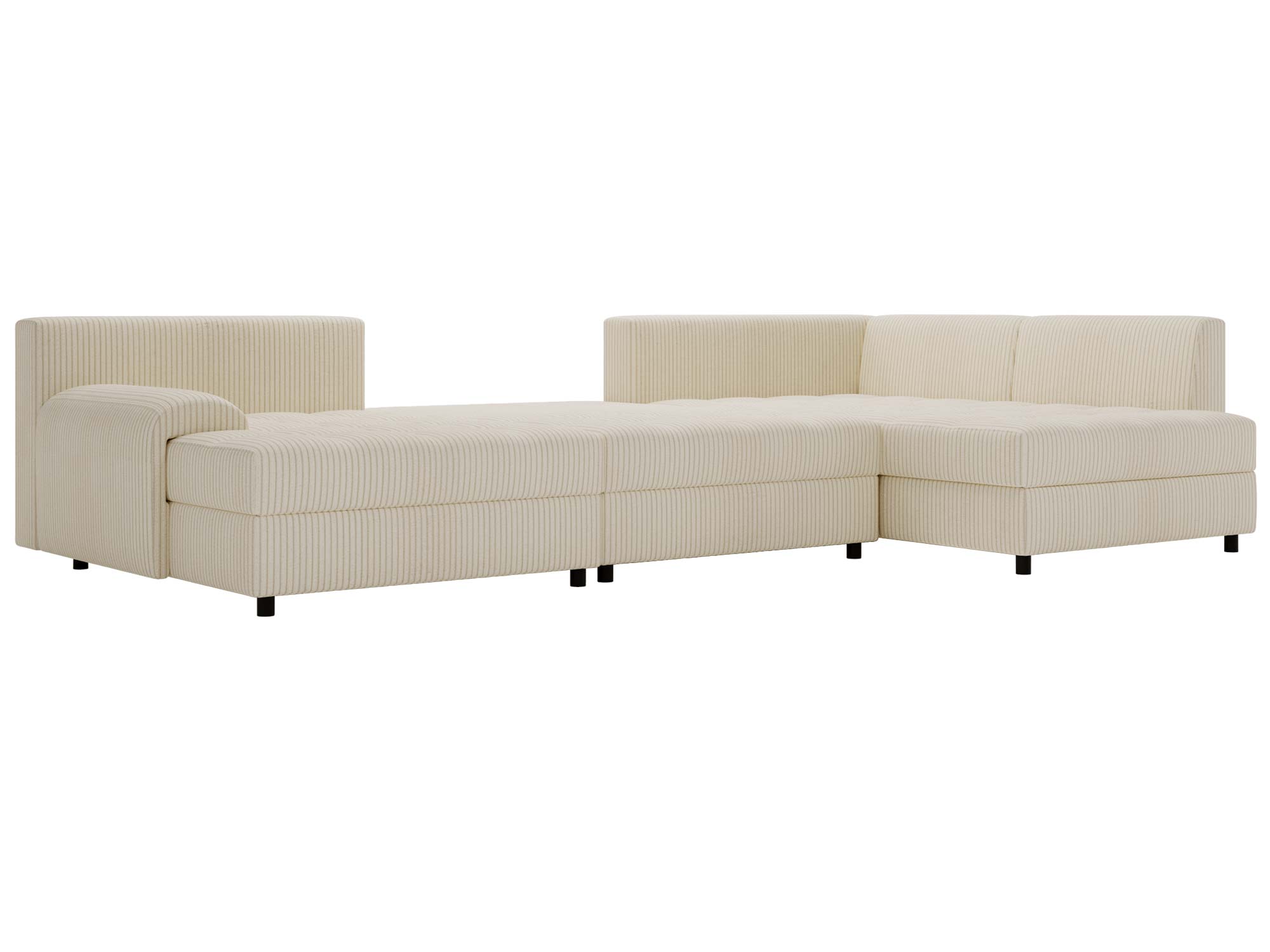 Kremowy narożnik narożny z fakturą sztruksową i grubym oparciem