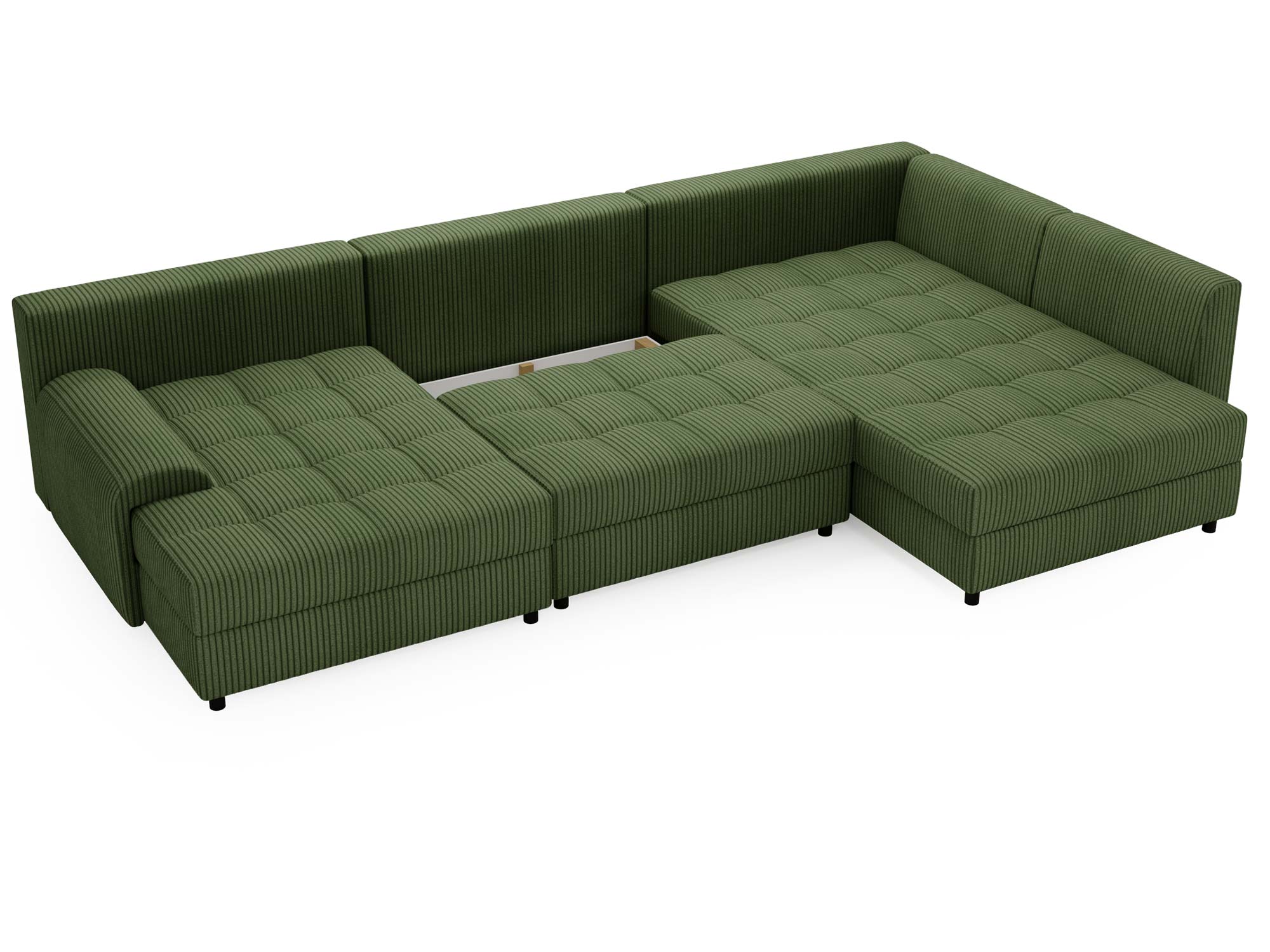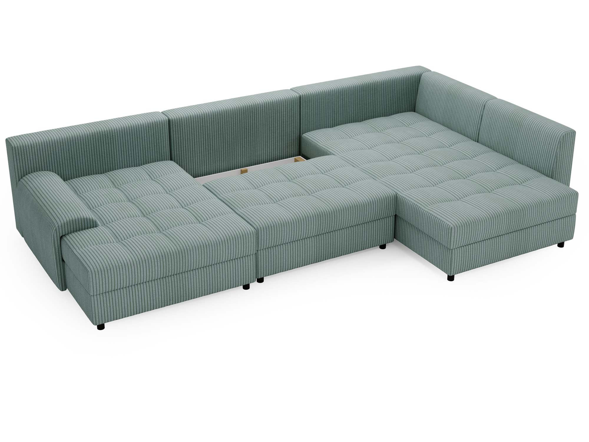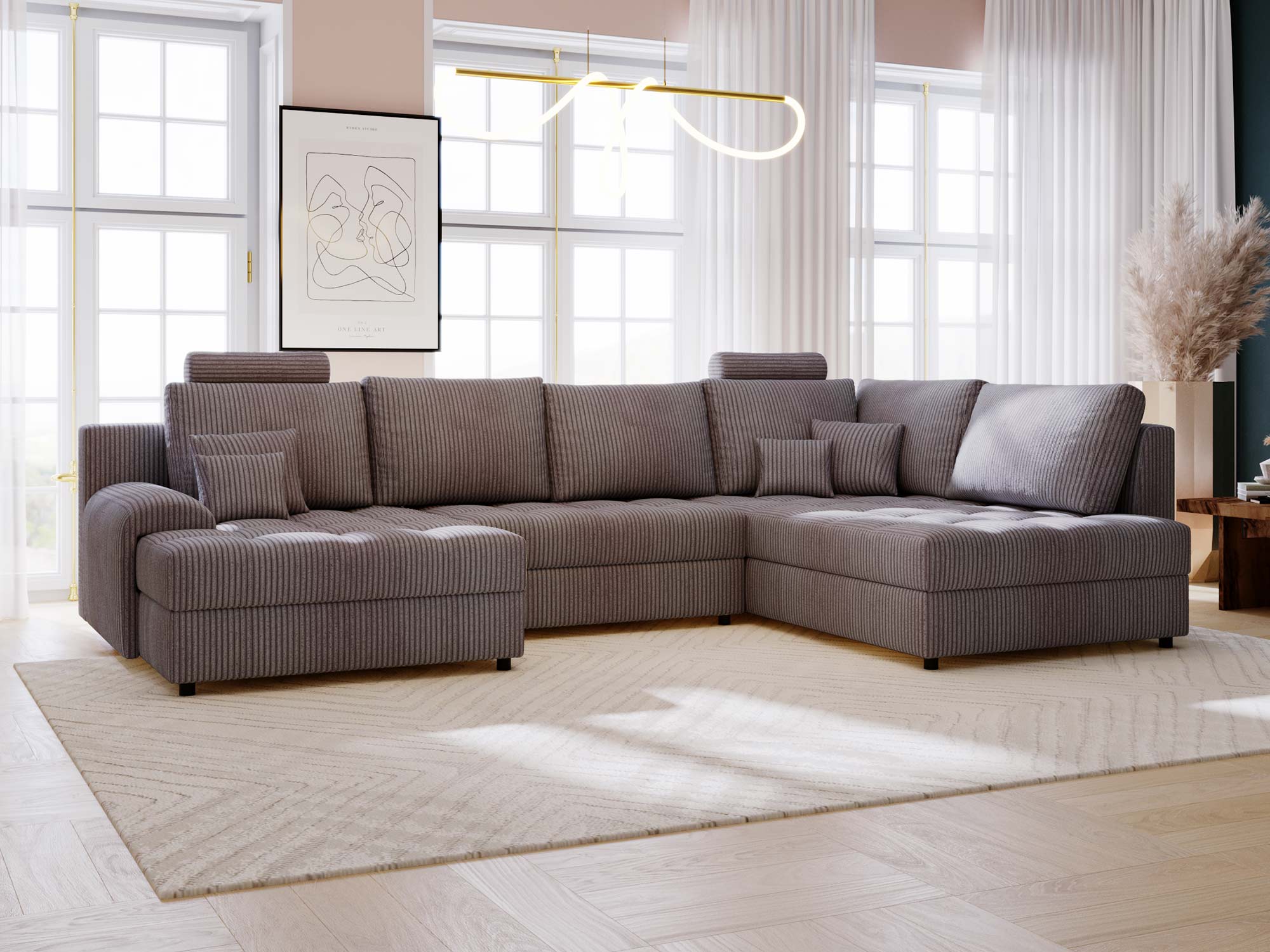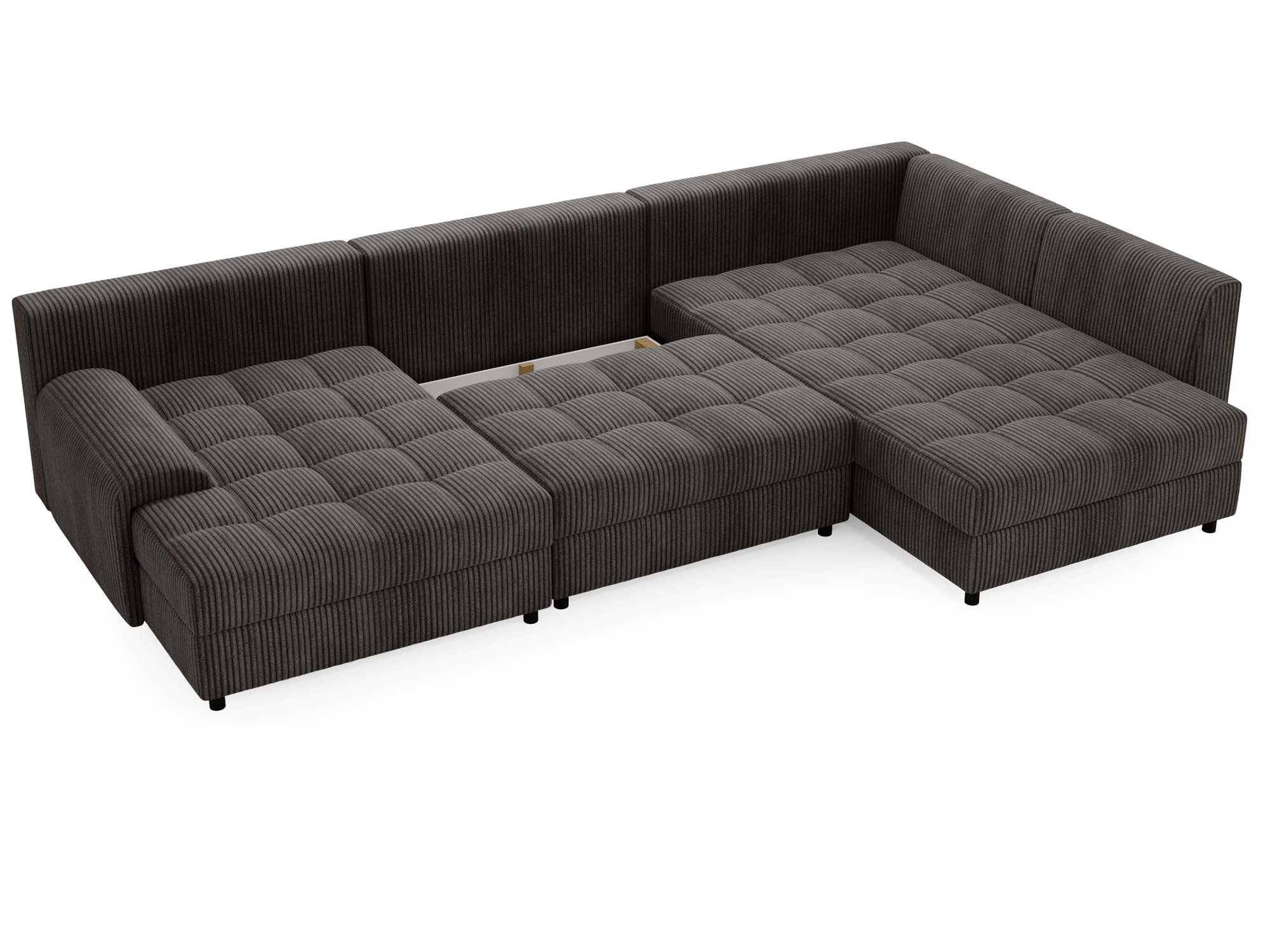 Dzięki wbudowanej funkcji spania, narożnik ATIKA z łatwością przekształca się w wygodne łóżko o powierzchni 140×329 cm, idealne do codziennego użytku lub na niespodziewane wizyty gości. Zintegrowany pojemnik na pościel to praktyczne rozwiązanie, które pomoże utrzymać porządek w salonie, zapewniając dodatkowe miejsce do przechowywania pościeli, koców czy poduszek.