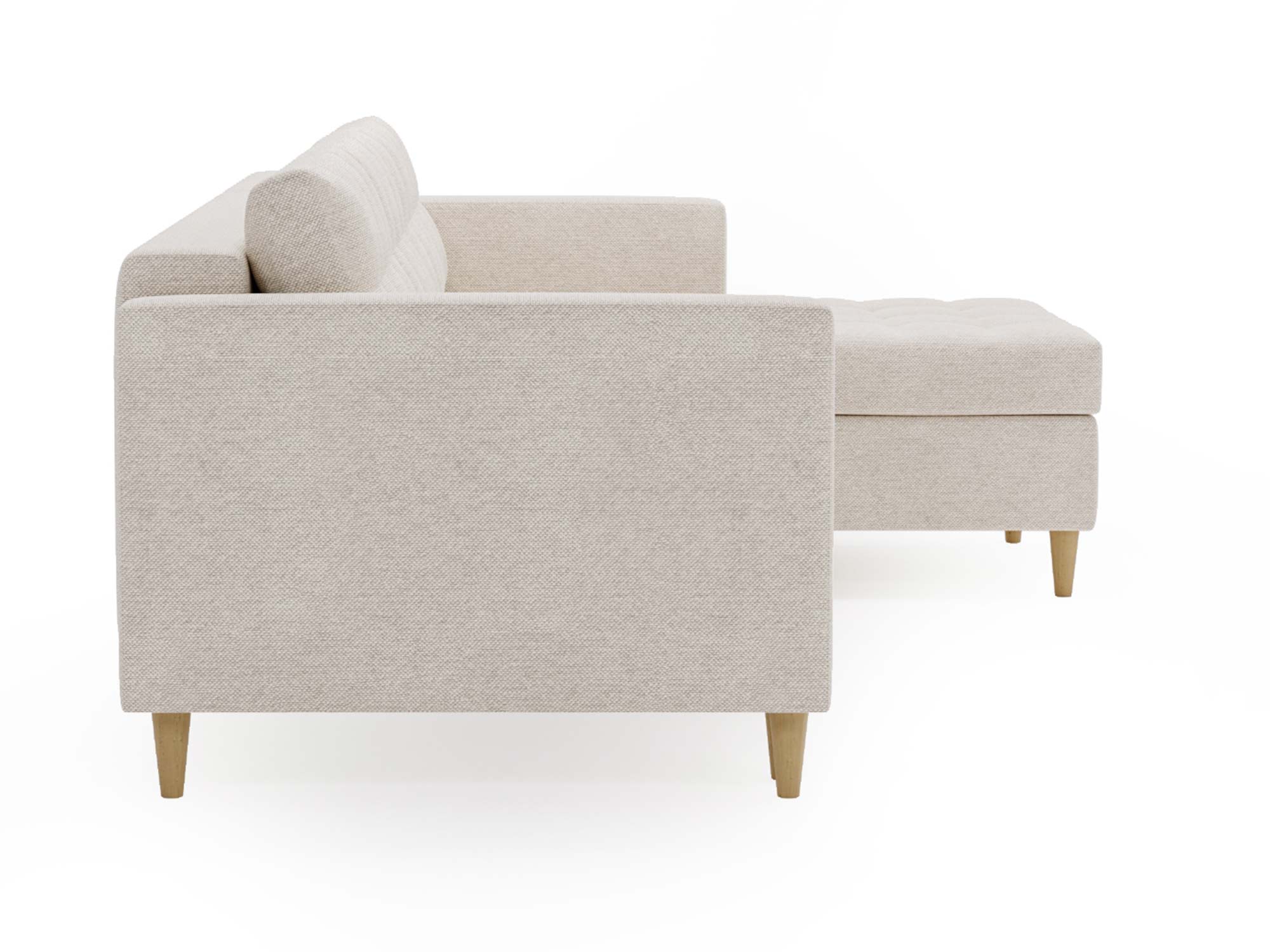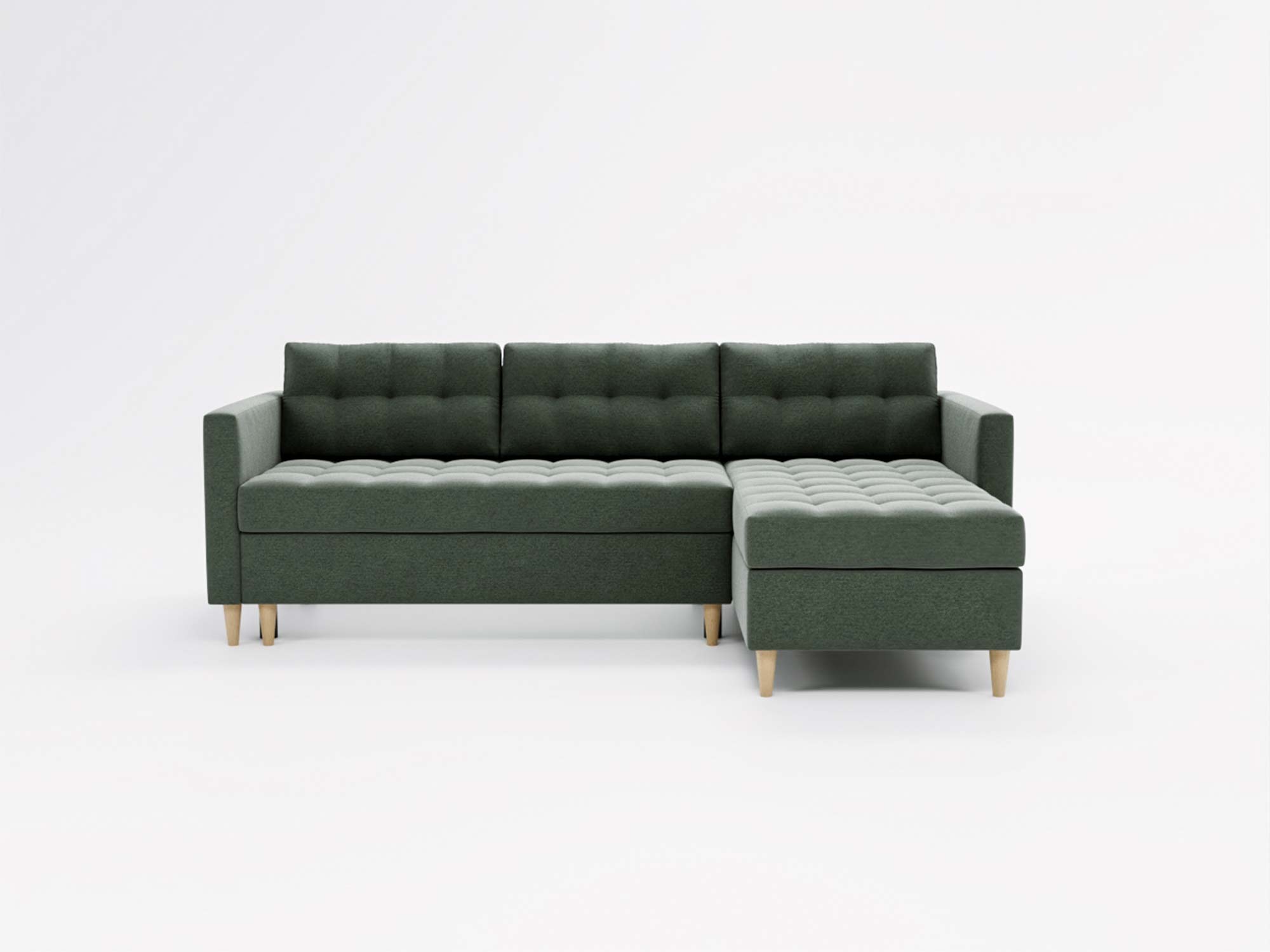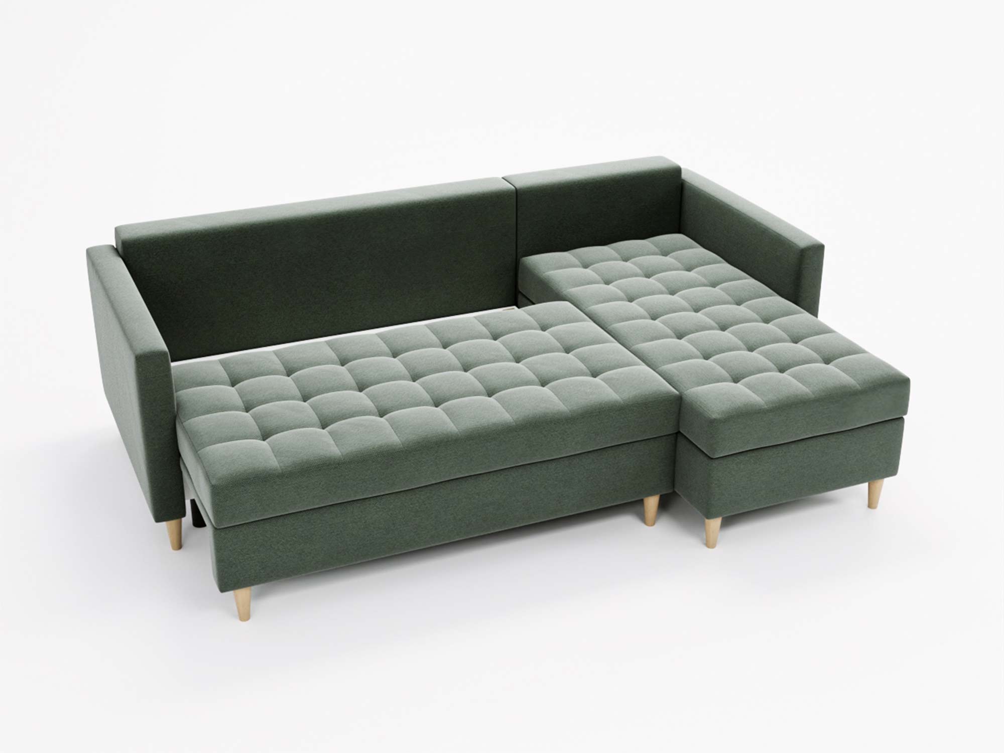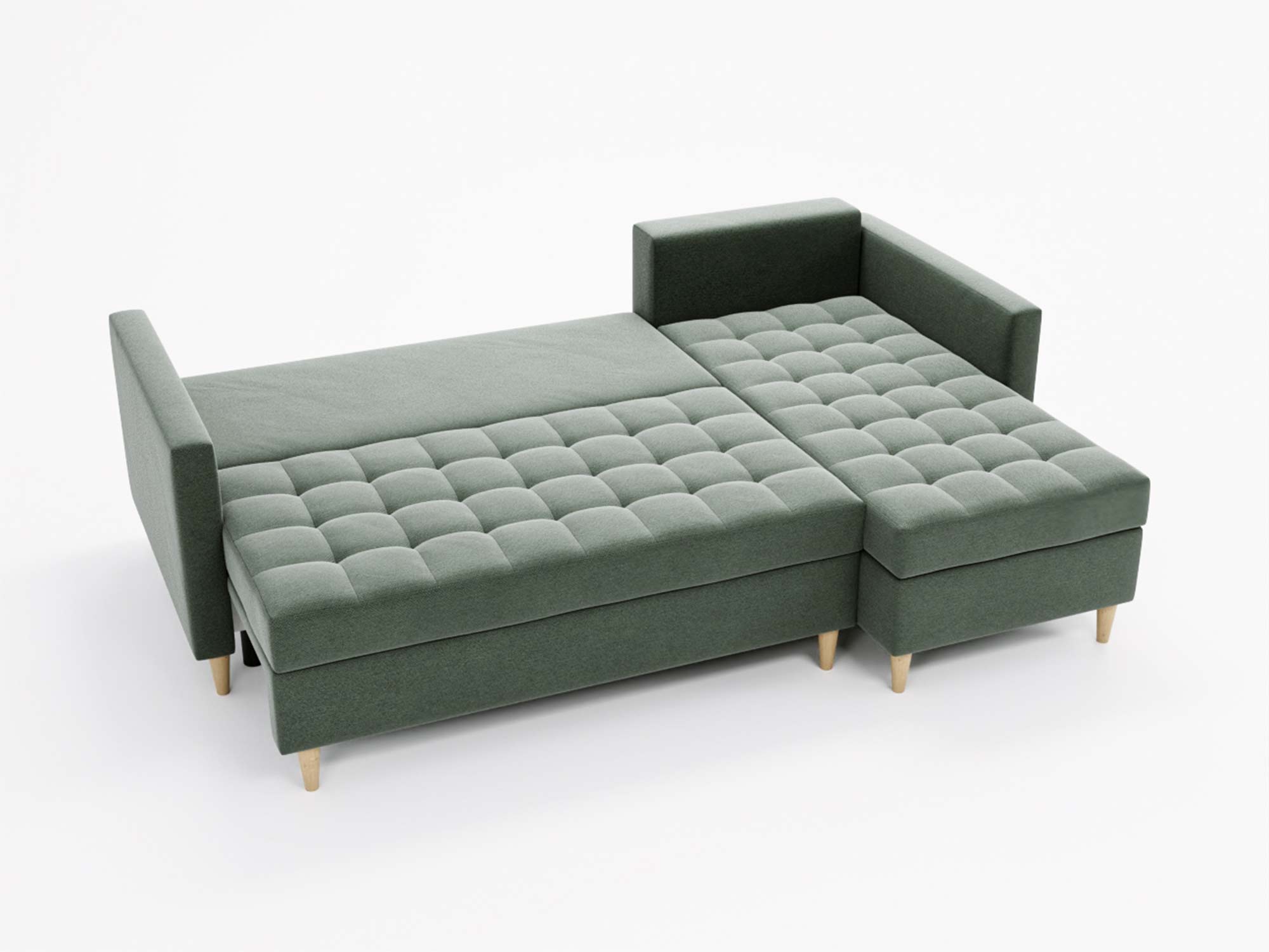 Narożnik MONO II zachwyca prostotą formy oraz starannie dobranymi materiałami. Szara tapicerka harmonizuje z naturalnym drewnem nóżek, tworząc niepowtarzalny efekt wizualny. Jego ponadczasowy design sprawia, że będzie pasować zarówno do nowoczesnych, jak i klasycznych wnętrz.