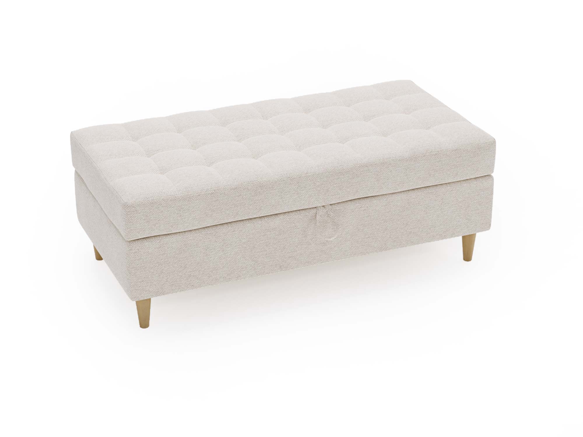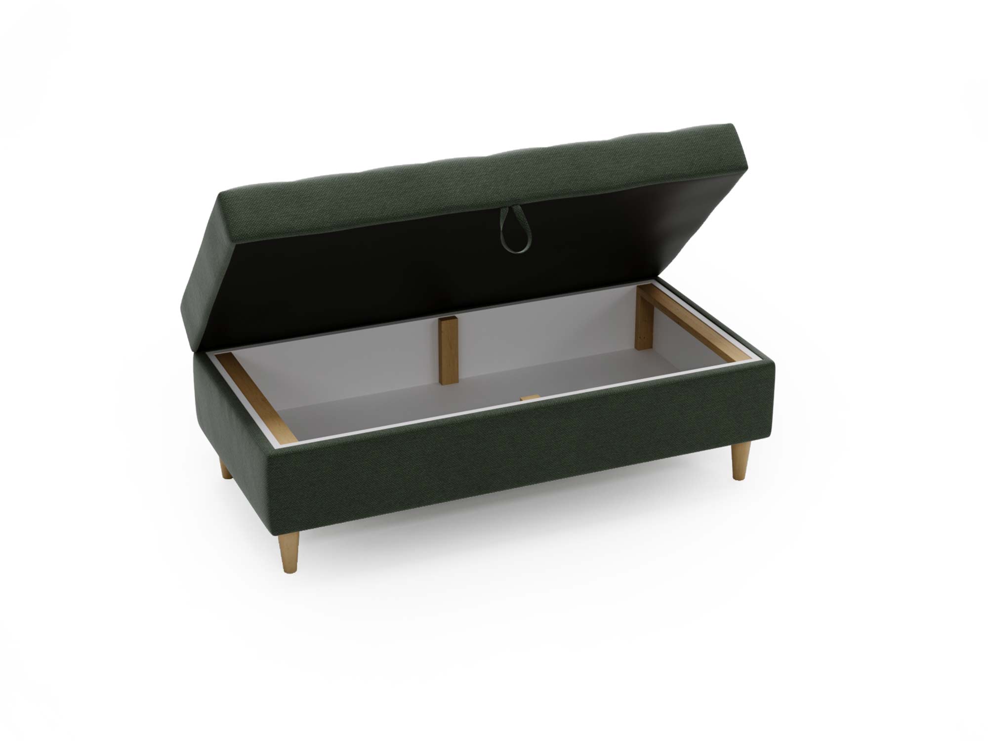 • Wbudowana skrzynka w pufie umożliwia przechowywanie pościeli i innych drobiazgów.
