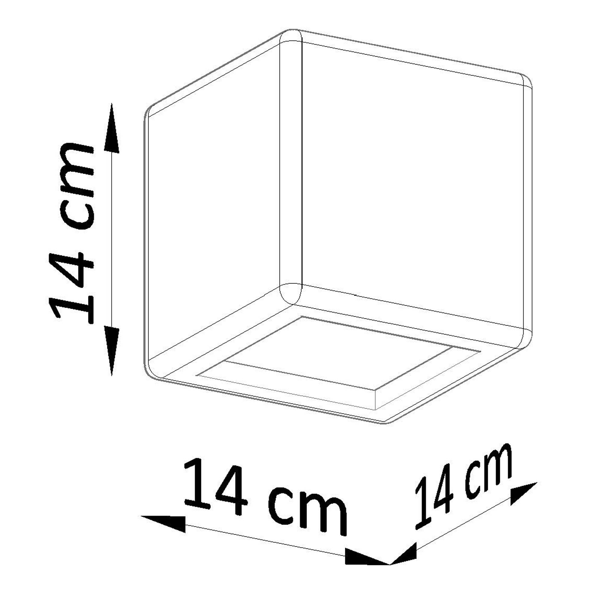 Rysunek techniczny kostki oświetleniowej 14 x 14 cm