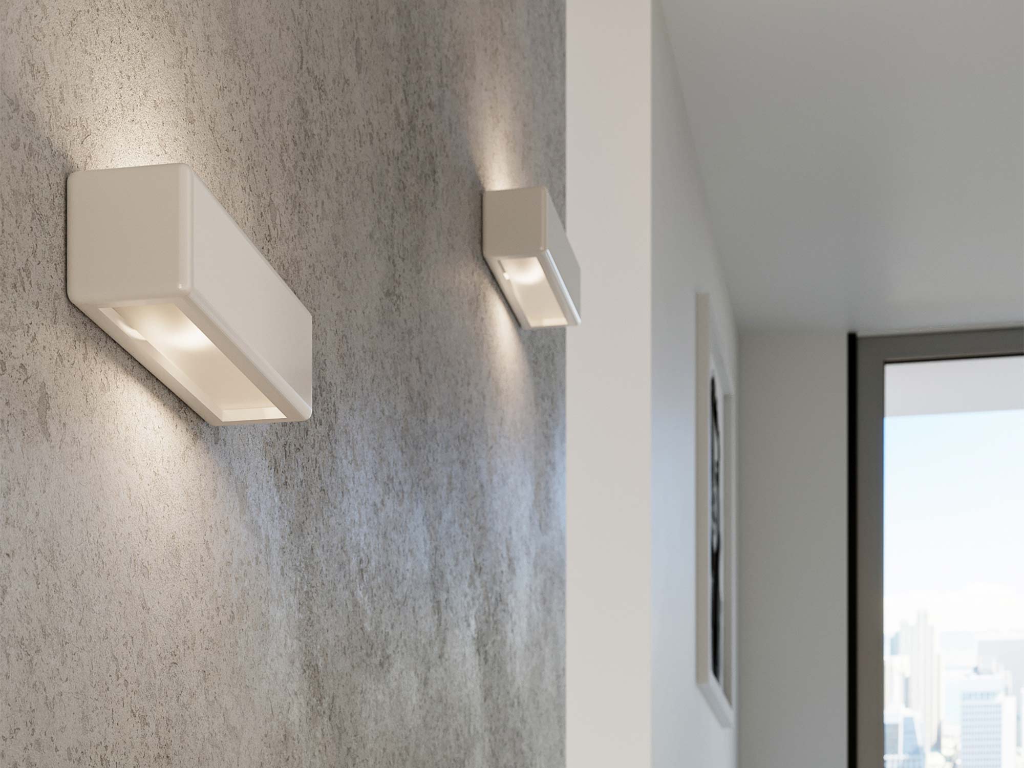 Kinkiet NAIA, wydzielający blask z obu stron, staje się świetnym źródłem oświetlenia do podświetlania ścian. W ciągu dnia NAIA zaskakuje swoją delikatną, elegancką formą, a wieczorem stwarza niezwykły spektakl światła.