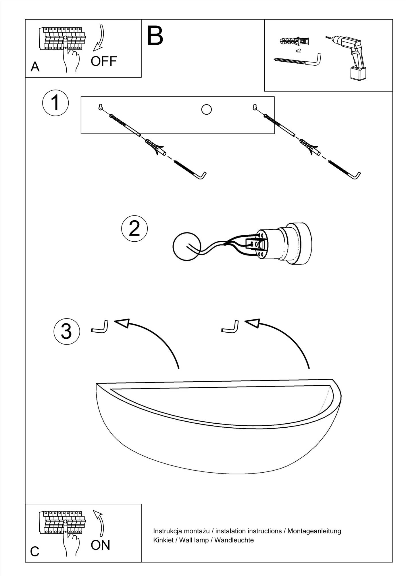 - Źródło światła: E27, 1x60W, 1x15W LED, 50-60Hz, ~220-230V