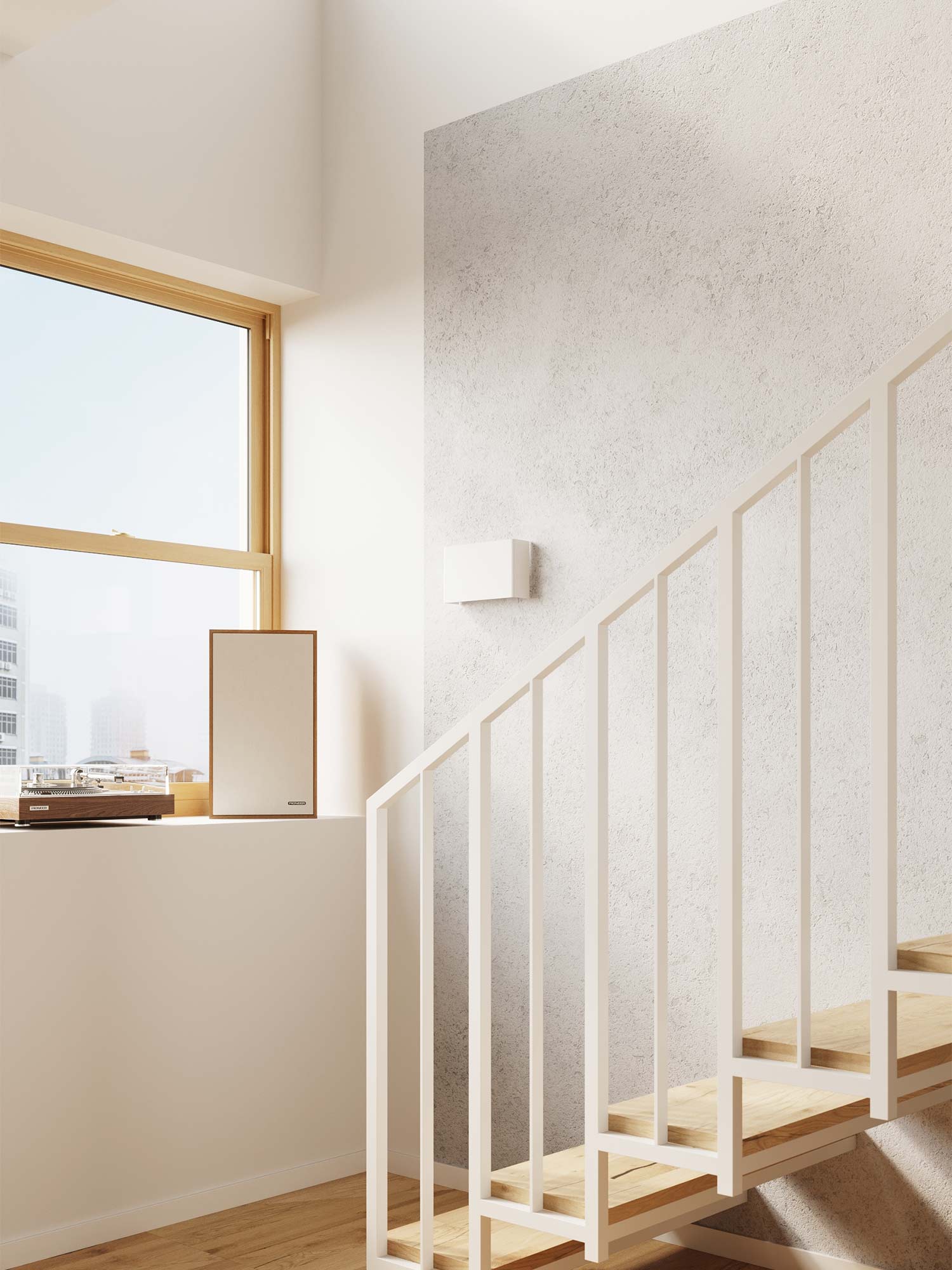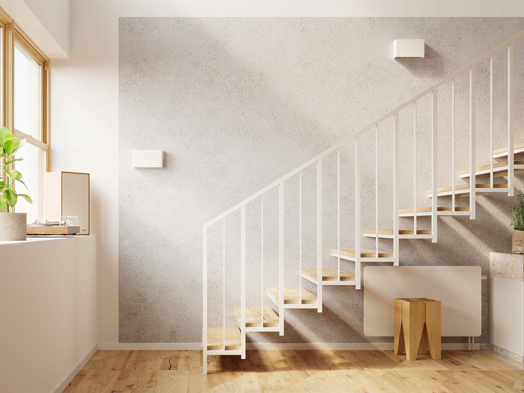 Oświetlenie przy klatce schodowej – prosty biały kinkiet