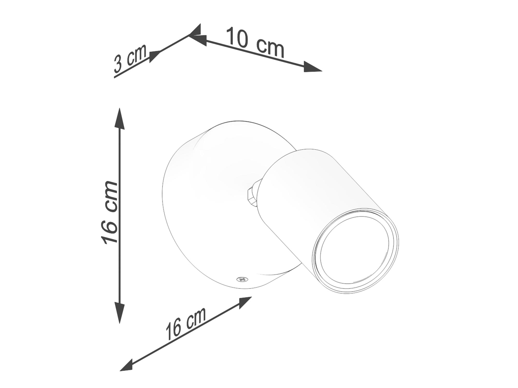 Rysunek techniczny kinkietu LED z regulacją kąta padania światła