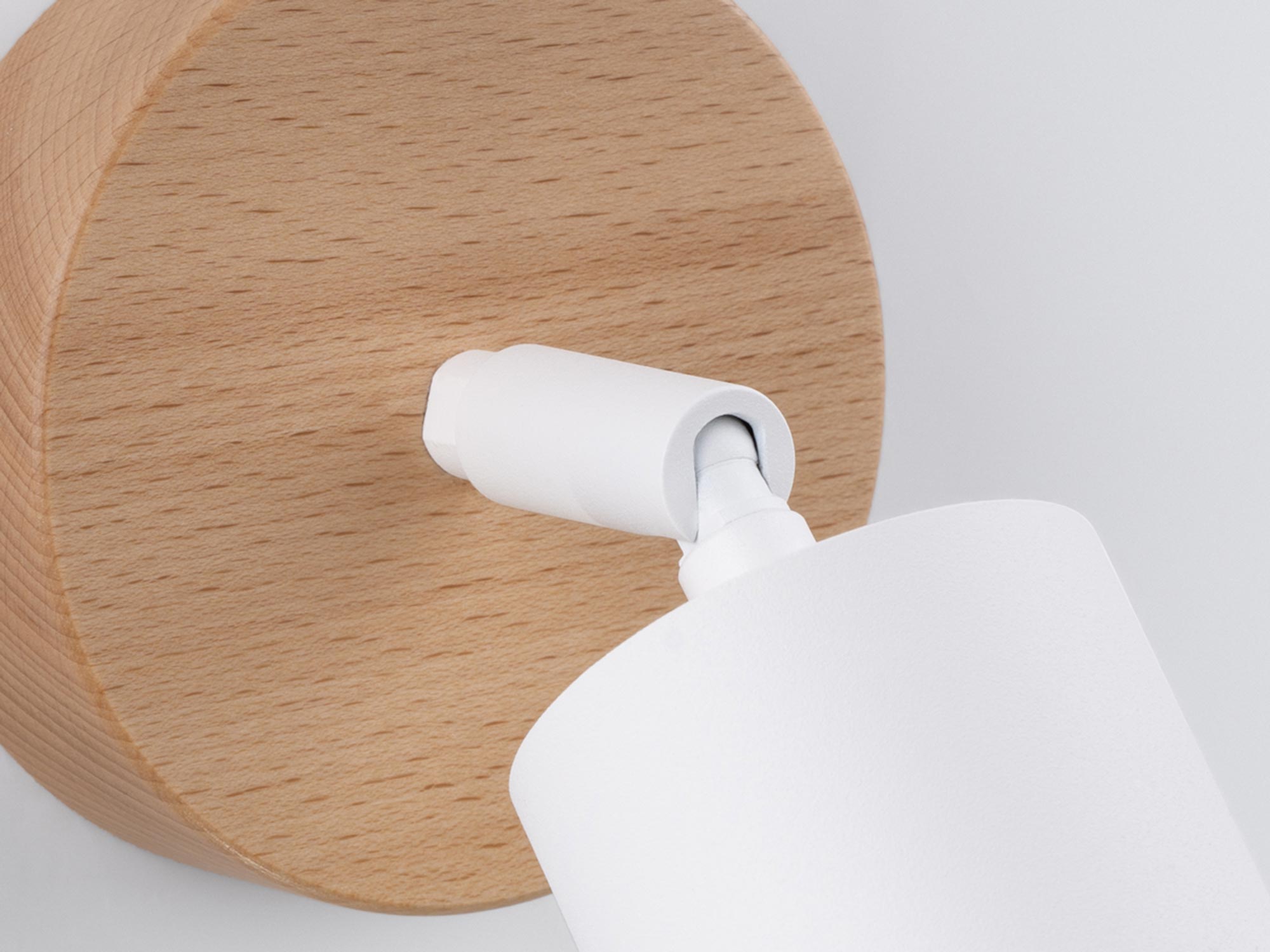Kinkiet LED z drewnianą bazą i białym reflektorem w stylu modern