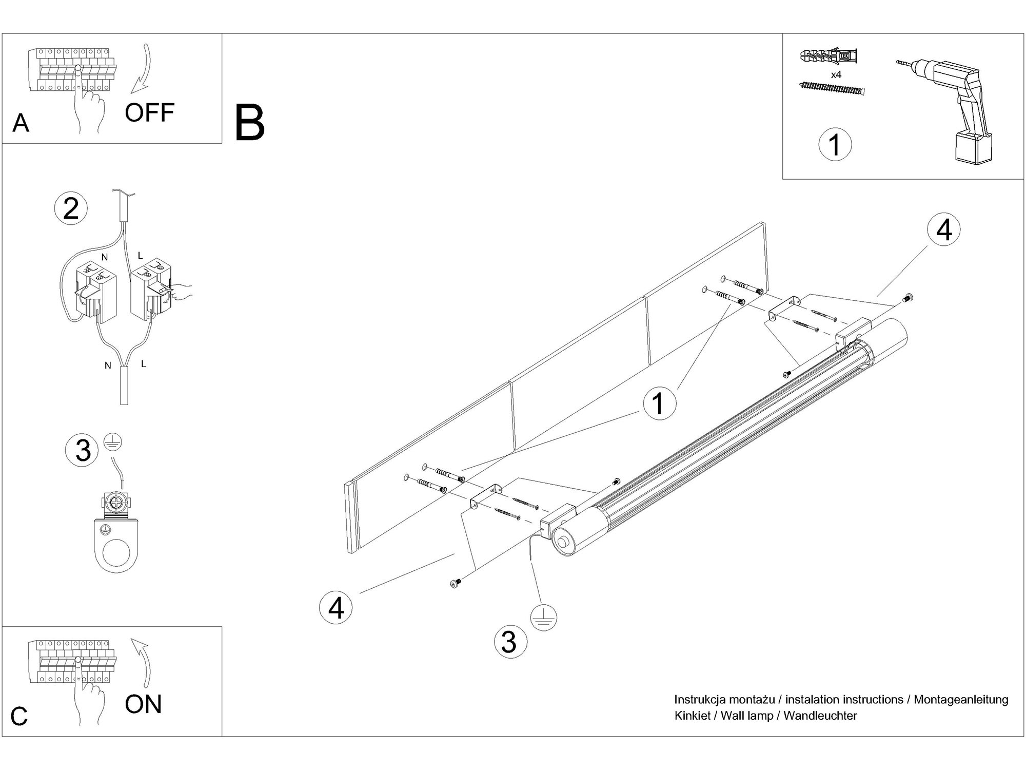 - Źródło światła: T8, 1x14W, 3000K