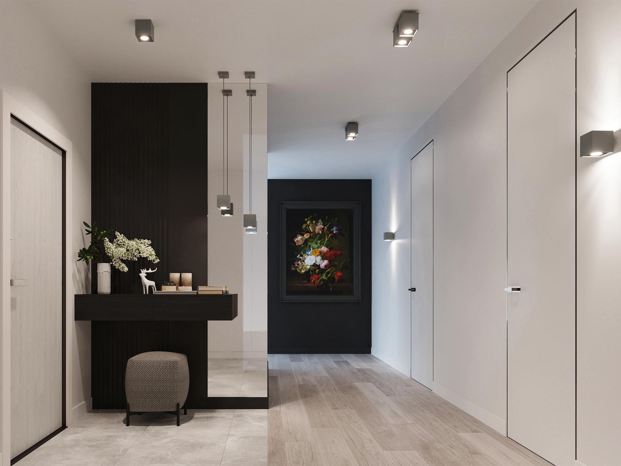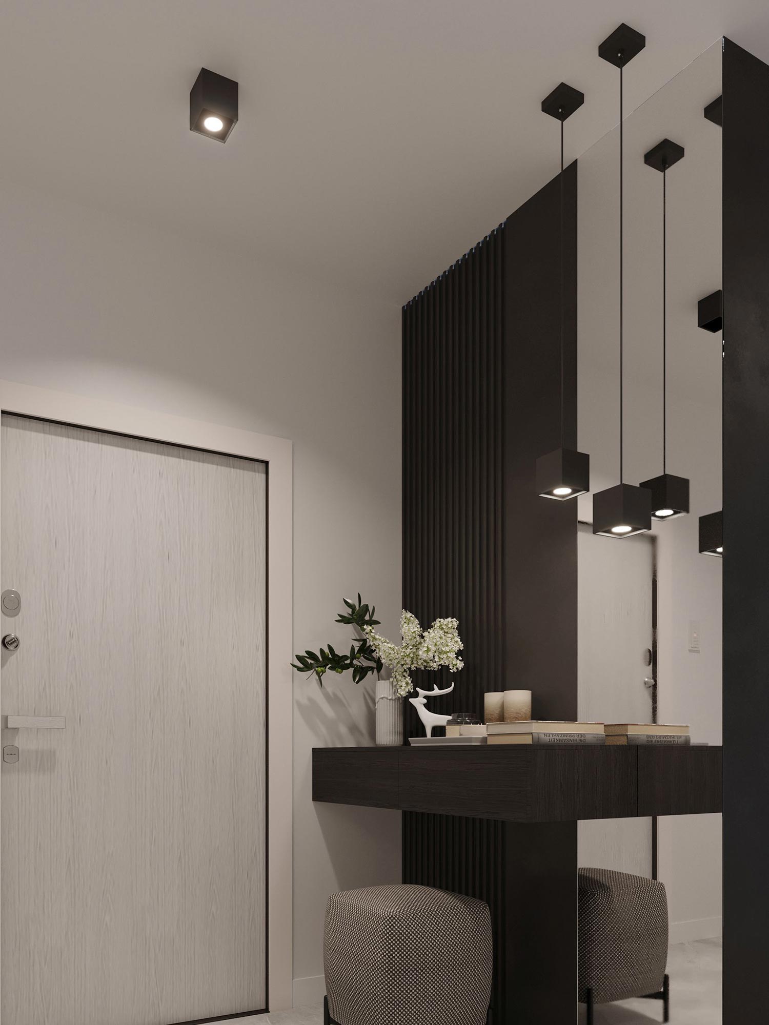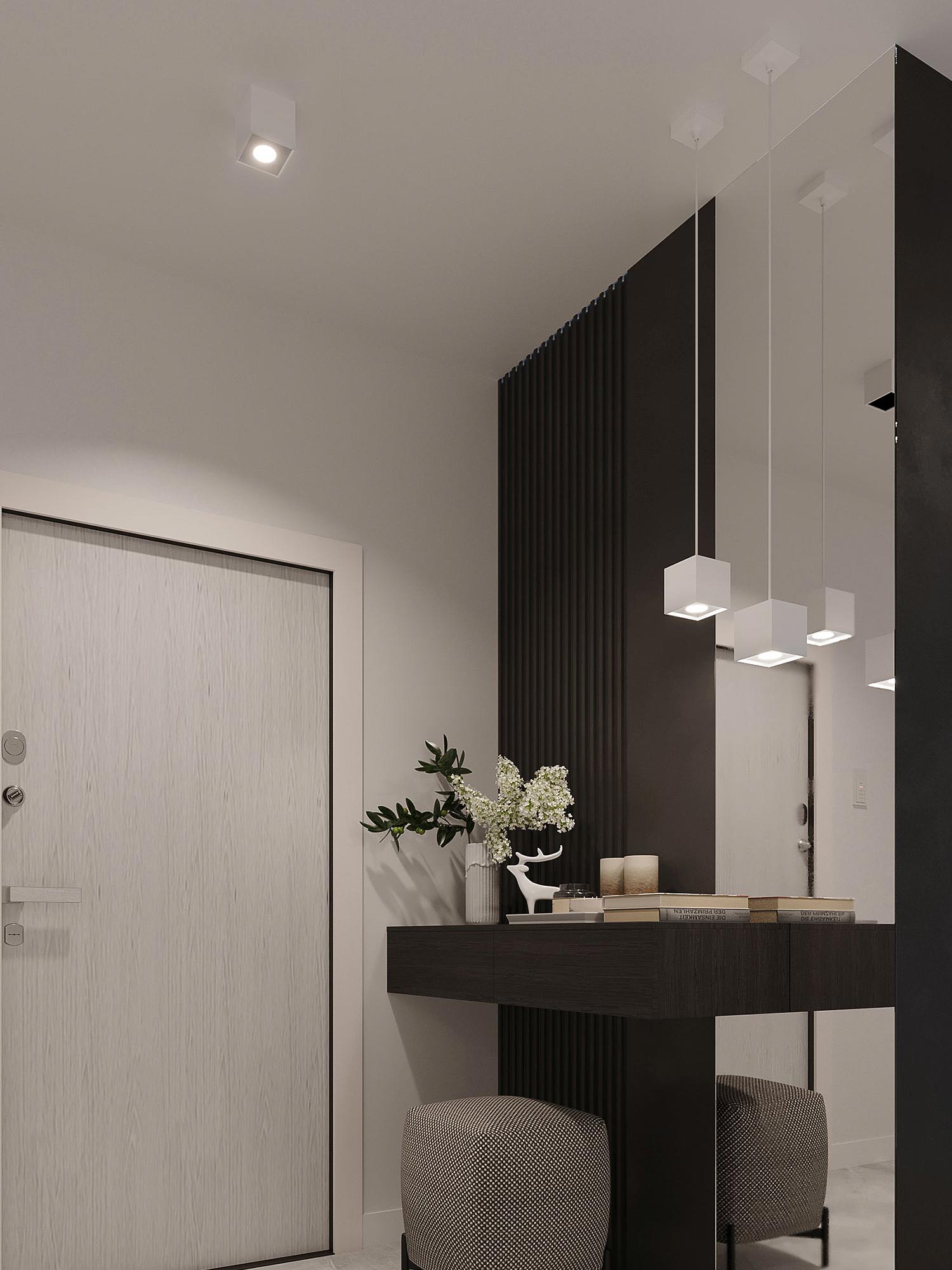 Biała lampa sufitowa LED w jasnym przedpokoju nowoczesnym