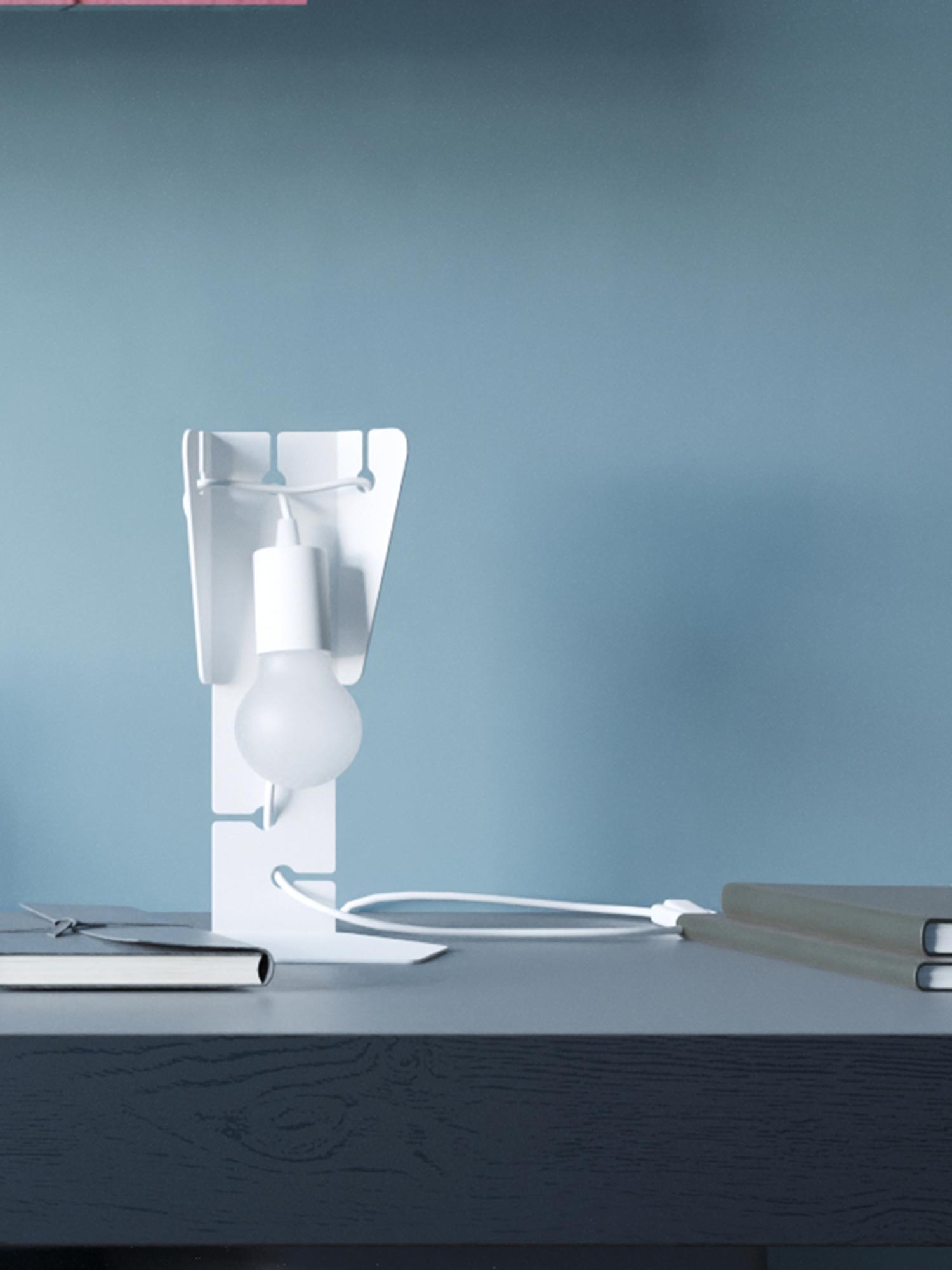 HECTOR to lampa, która daje świeże spojrzenie na klasyczny design lamp biurkowych. Składa się z metalowego stojaka, na którym jest owinięty kabel z żarówką. Dostępna w kolorach czarnym i białym, lampa HECTOR sprawdzi się zarówno w biurze, jak i w domowym zaciszu.