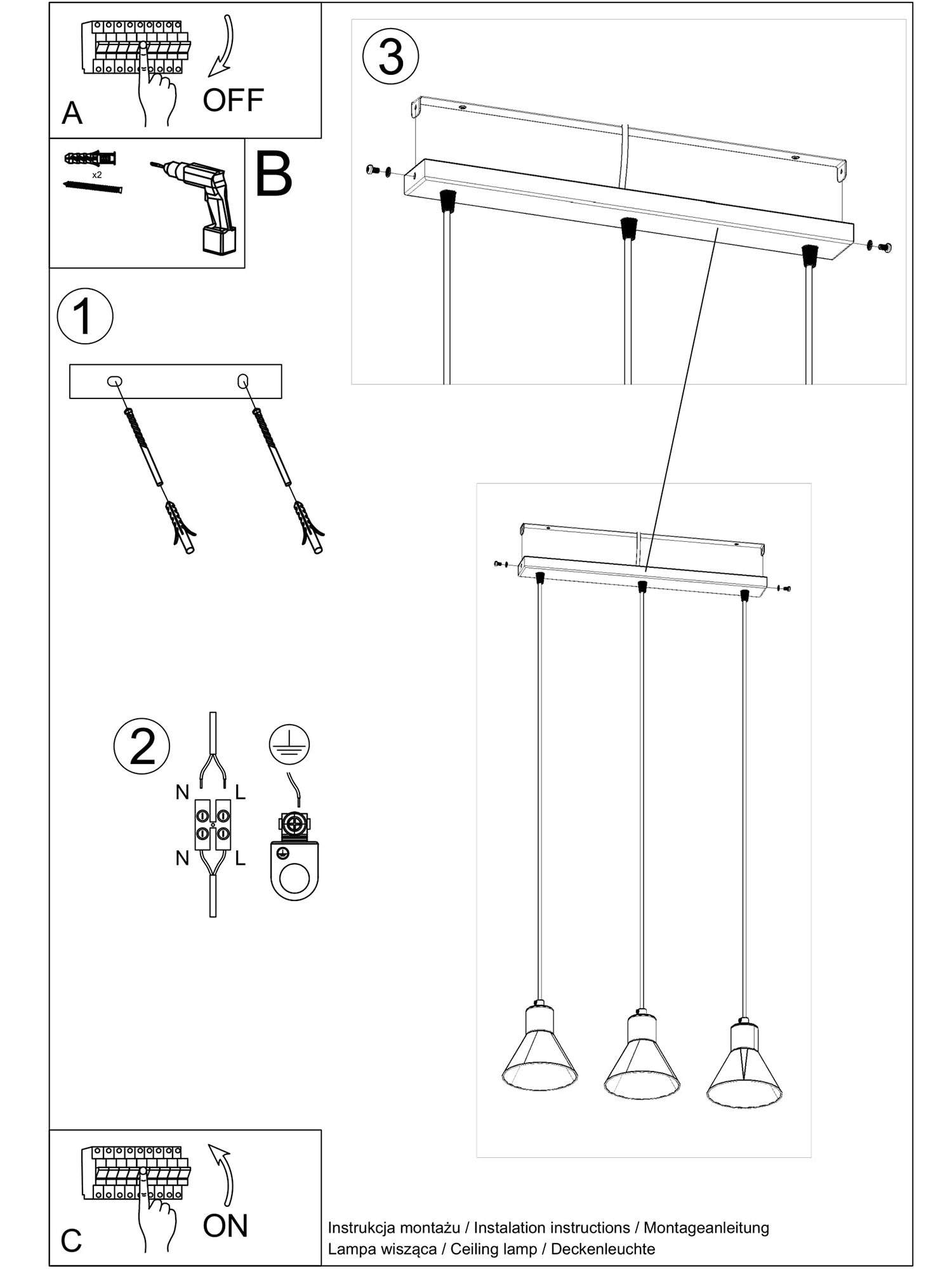 3-punktowa Lampa Wisząca o Uniwersalnym Designie – TRITON 3