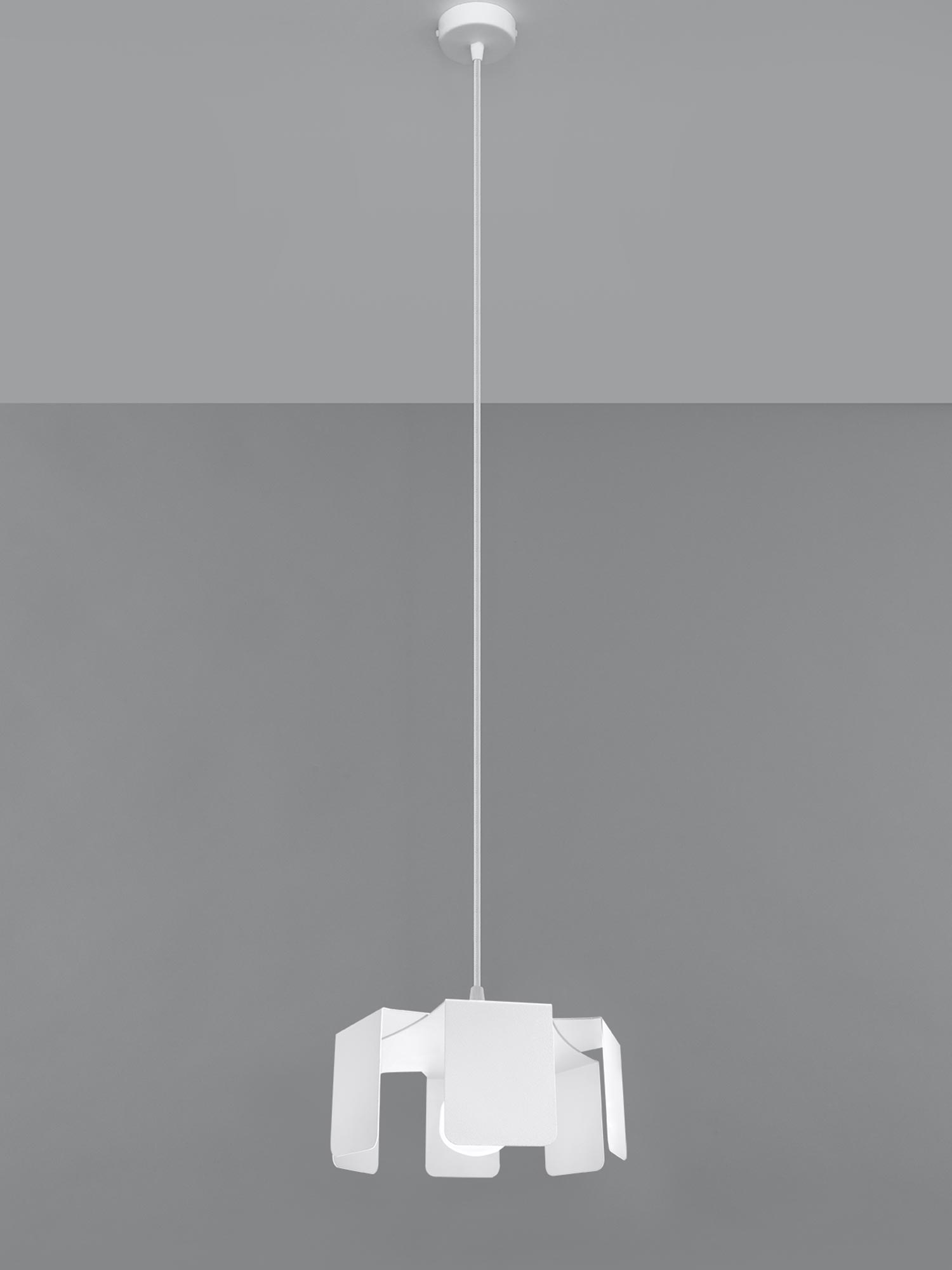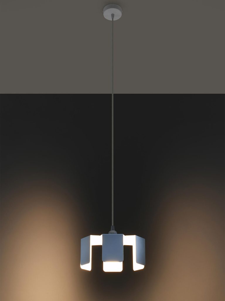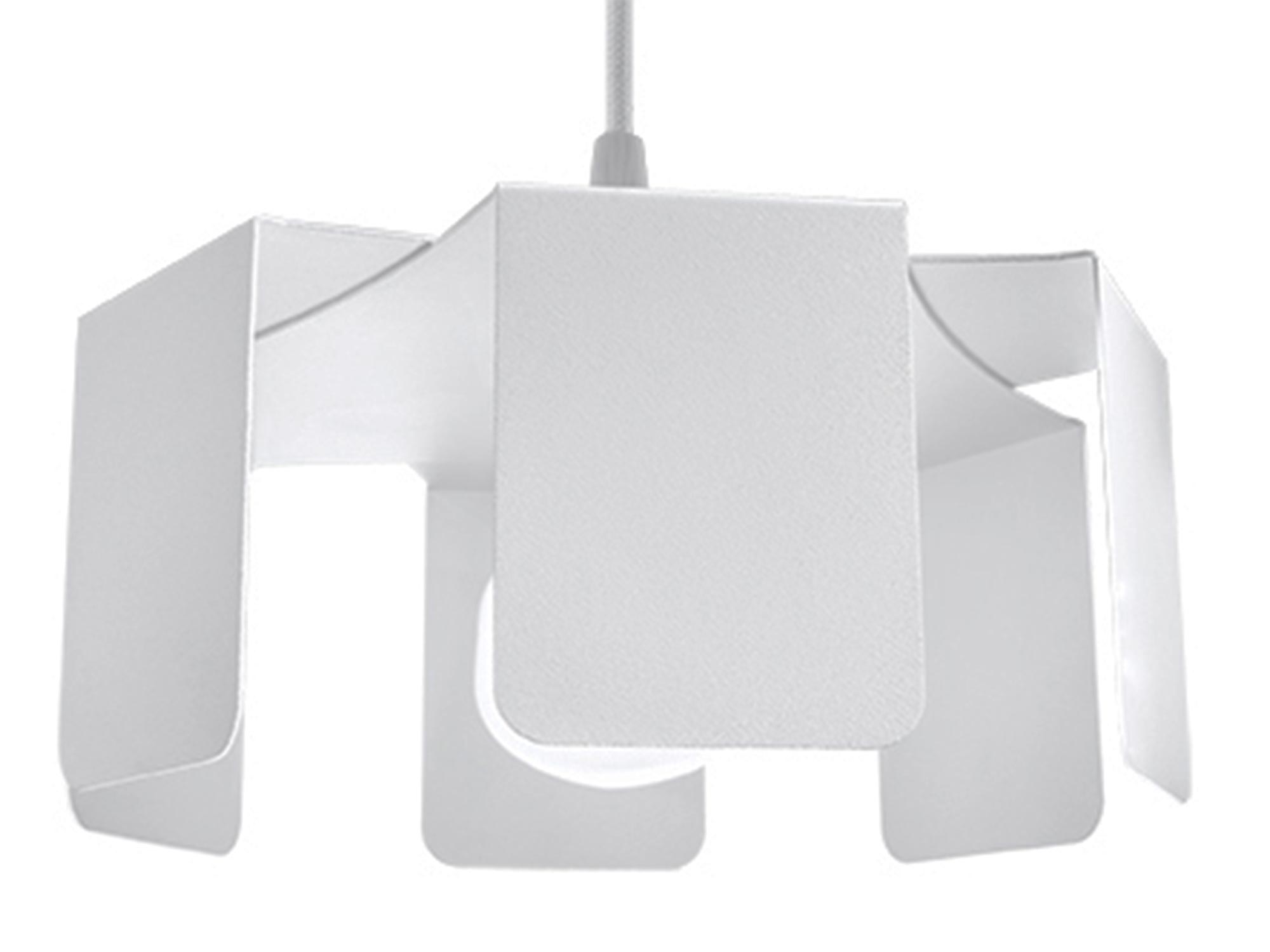 Geometryczna biała lampa z wygiętym kloszem