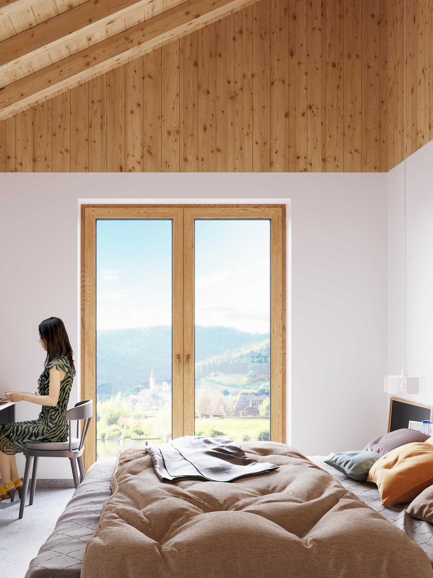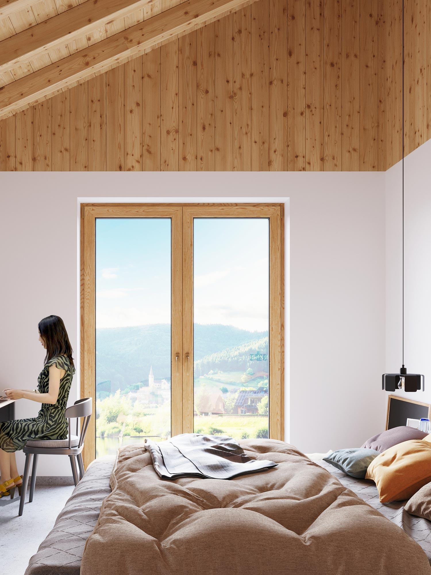 Wnętrze z widokiem i lampką LED do pracy w naturalnym świetle