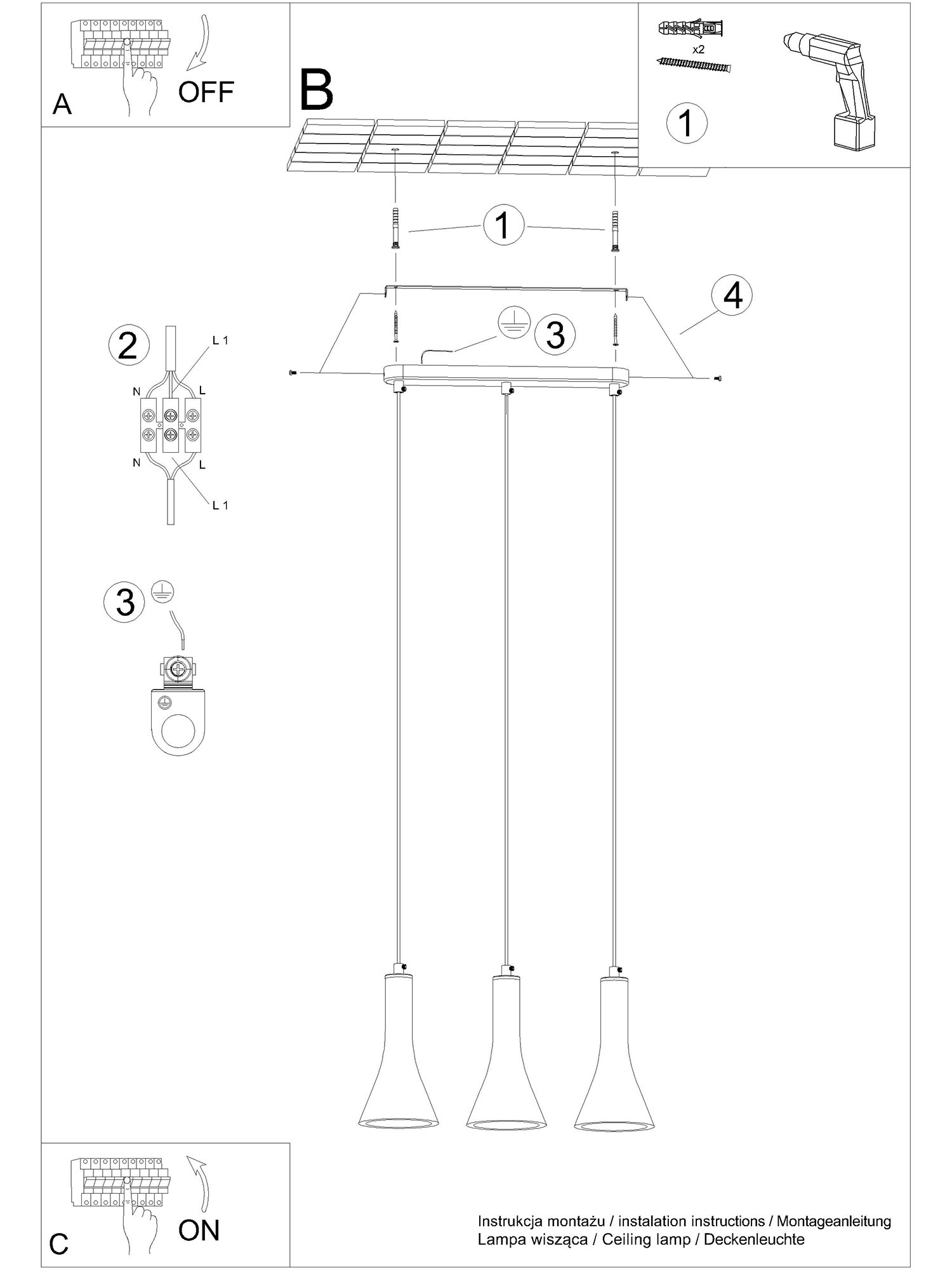 - Ilość żarówek: Trzy punkty światła, zapewniające równomierne rozłożenie światła.