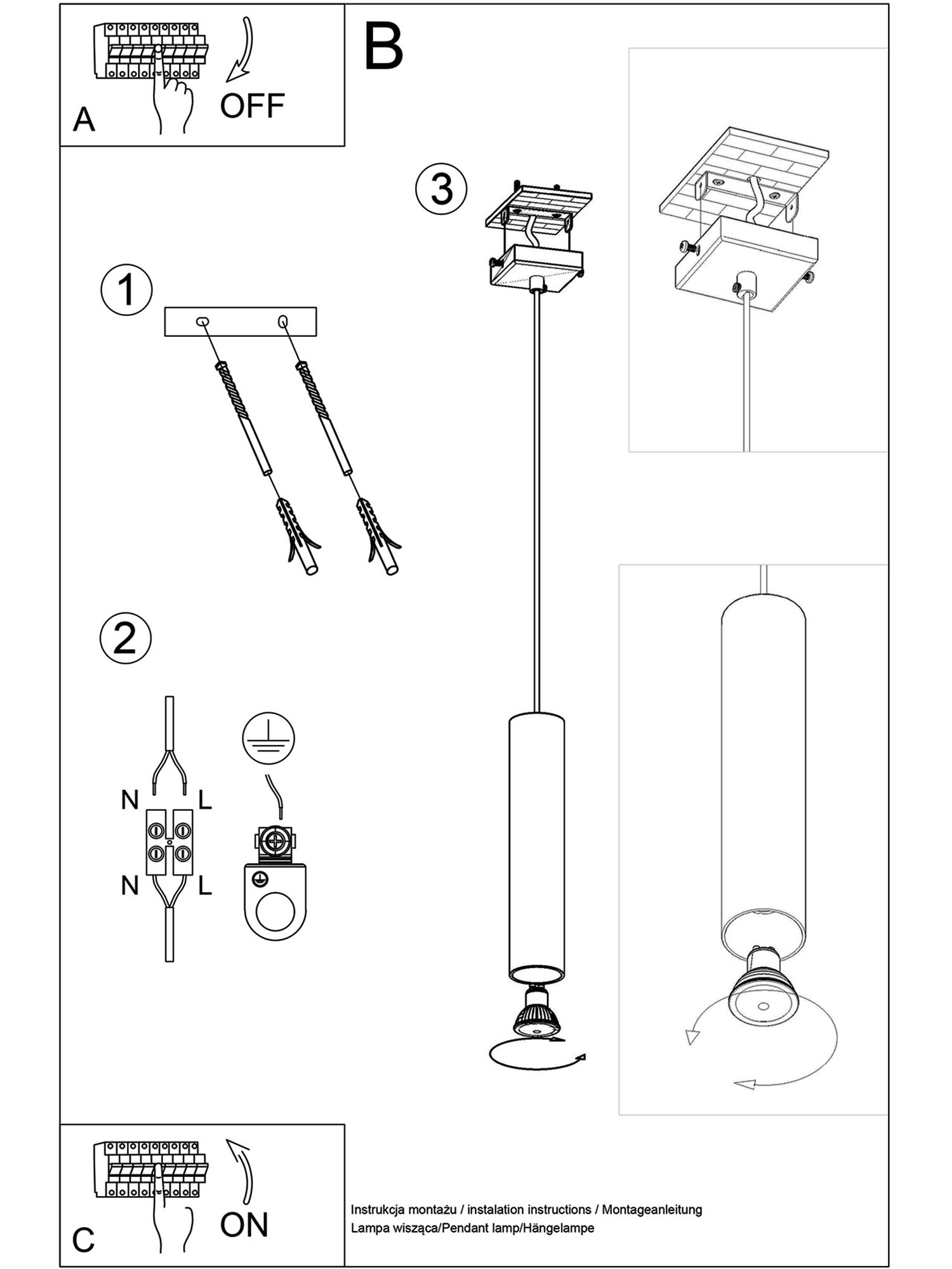 - Typ źródła światła: GU10 (żarówka nie jest dołączona w zestawie)