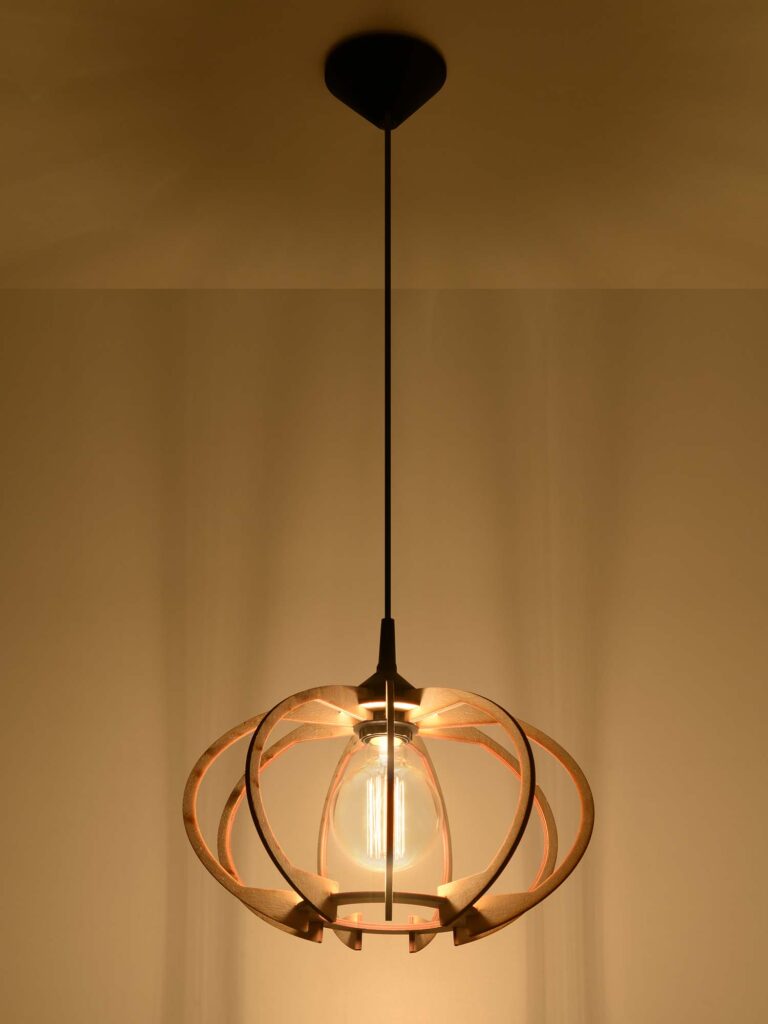 Lampa Wisząca MARIS łączy w sobie naturalność drewna z praktycznością nowoczesnego oświetlenia. Pasuje do każdego wnętrza – od salonu, przez sypialnię, aż po kuchnię. Bez względu na to, gdzie zdecydujesz się ją umieścić, z pewnością przyciągnie wzrok swoim unikalnym wyglądem.