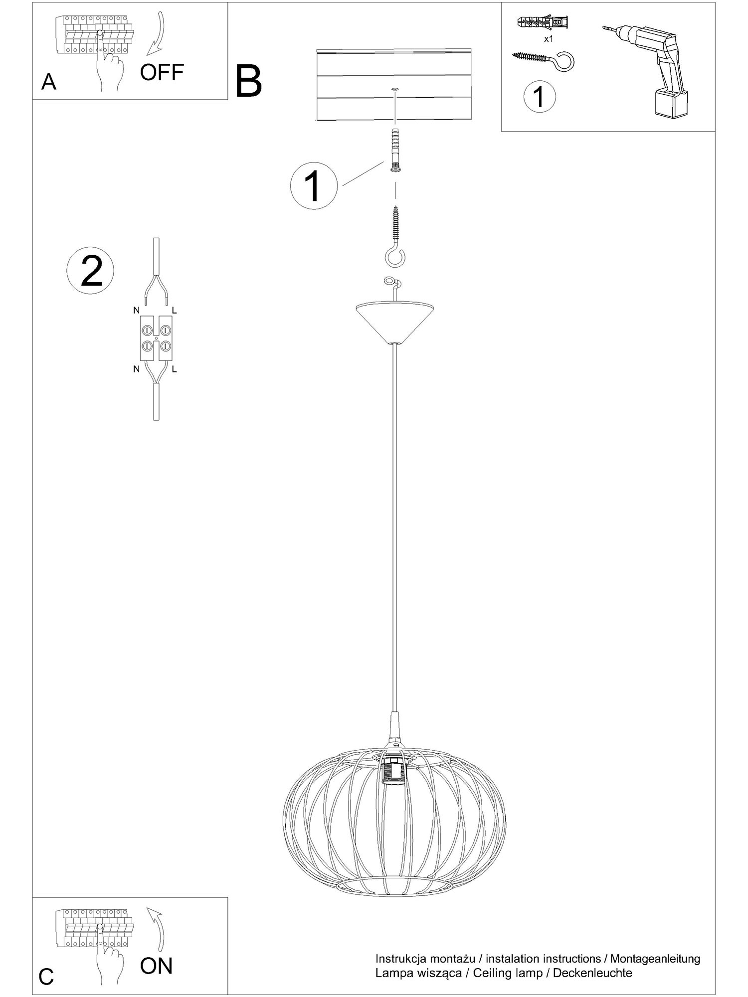 - Typ żarówki: E27 (1x max 15W LED)
