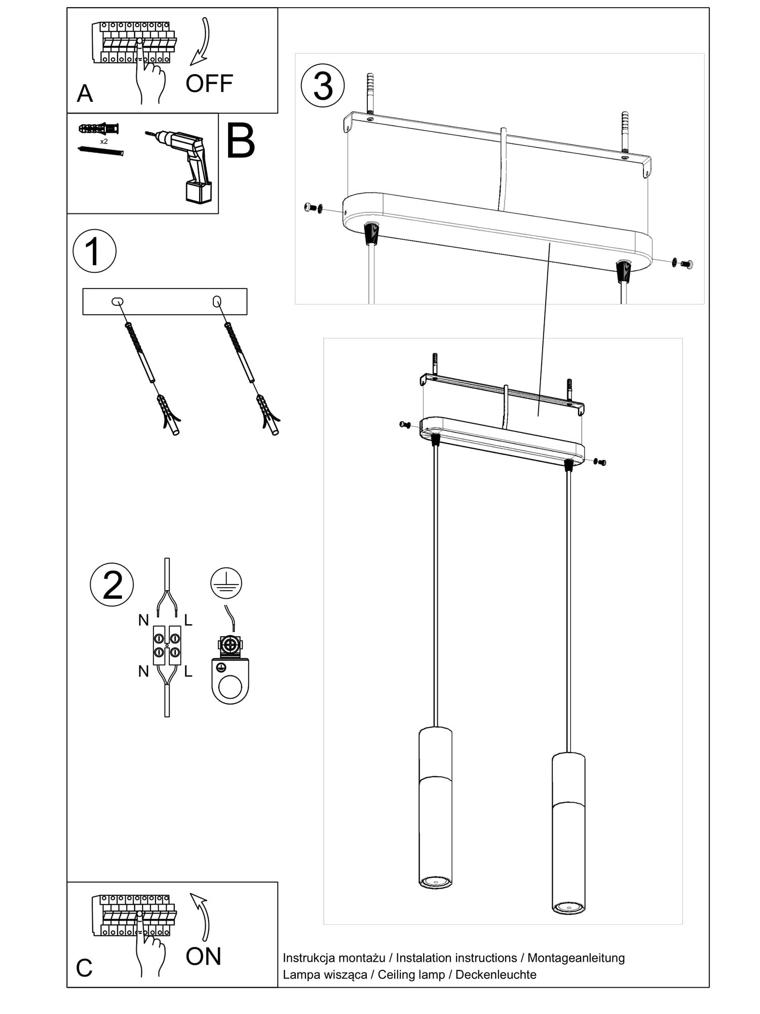 Komplet zwisających lamp sufitowych w kolorze białym