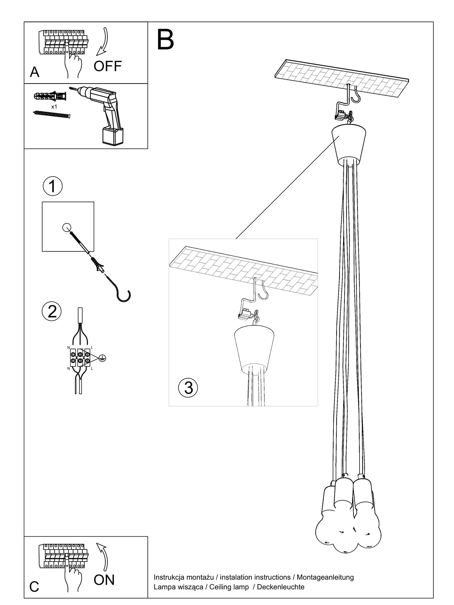 - Źródło światła: E27, 5x60W, 5x15W LED