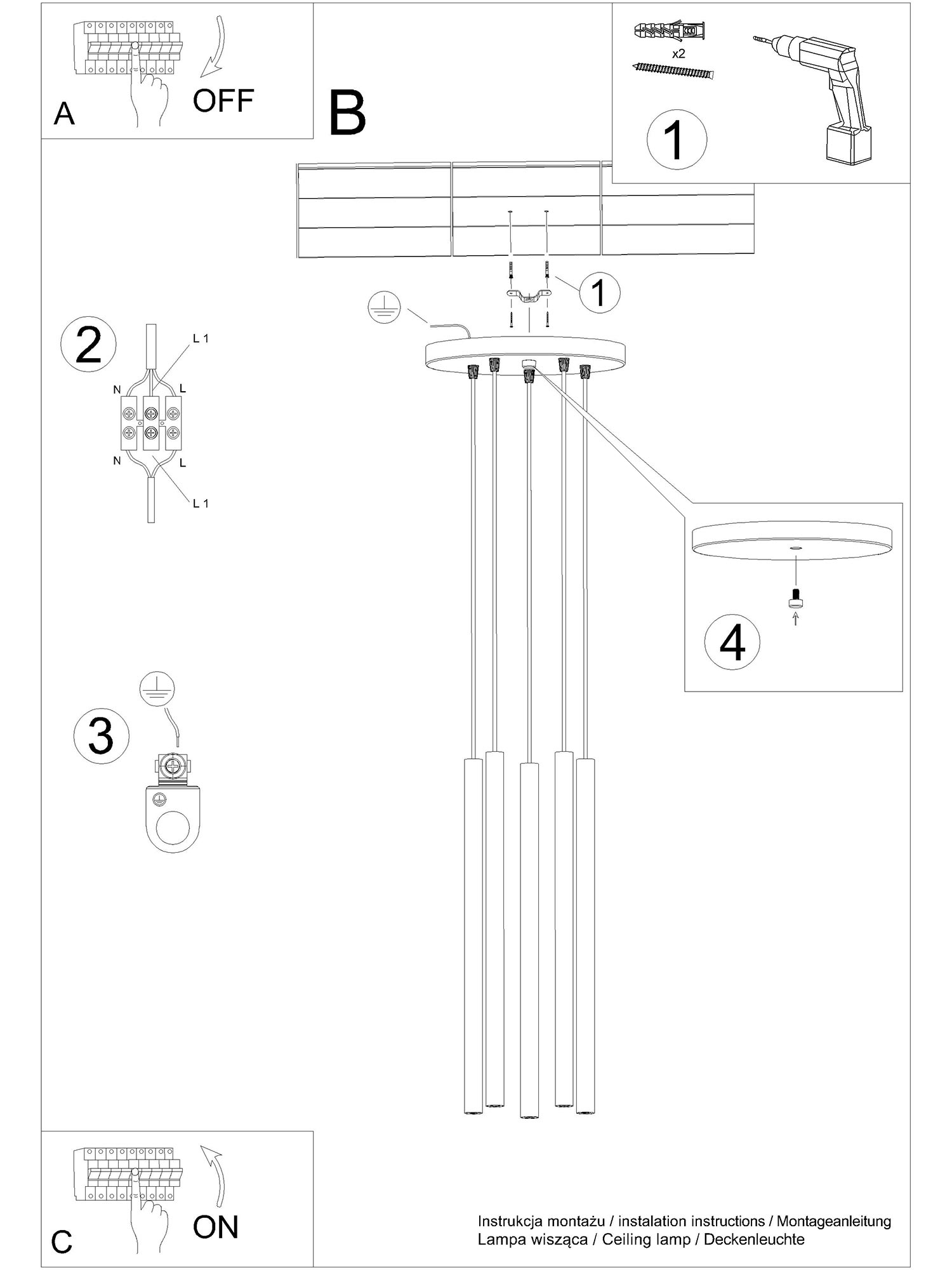 - Wielopunktowe oświetlenie: Pięć kloszy zapewnia równomierne rozłożenie światła, tworząc przyjemną atmosferę w pomieszczeniu.
