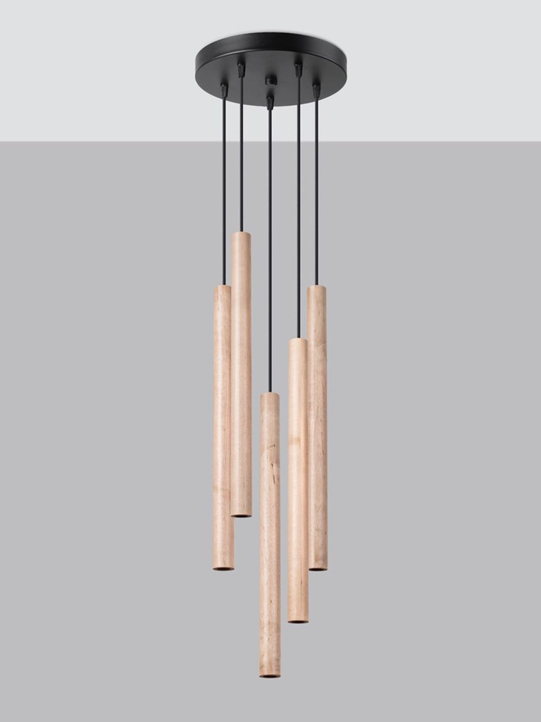 Lampa Wisząca ARBOR 5P Drewno – 5x8W LED Nowoczesna